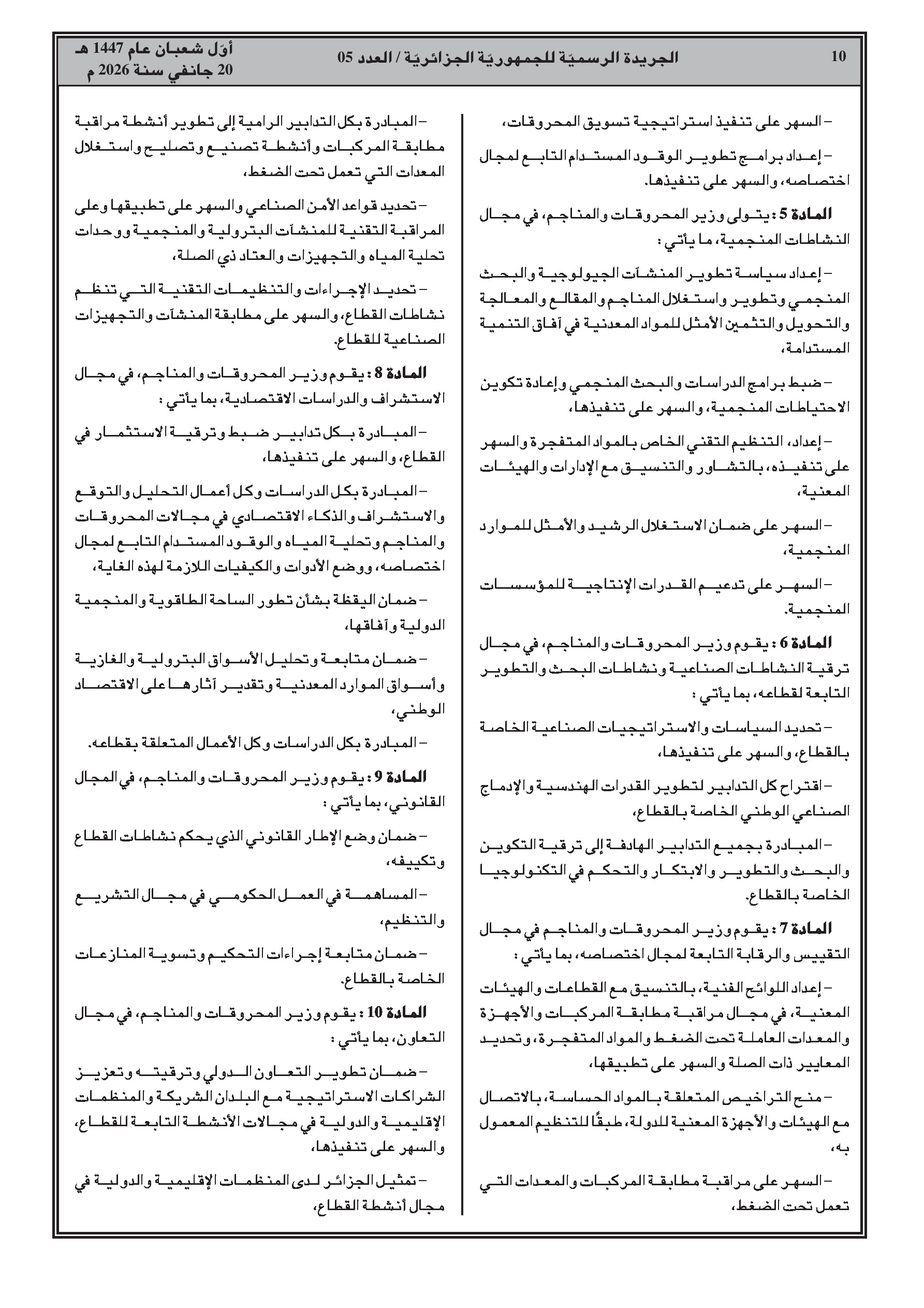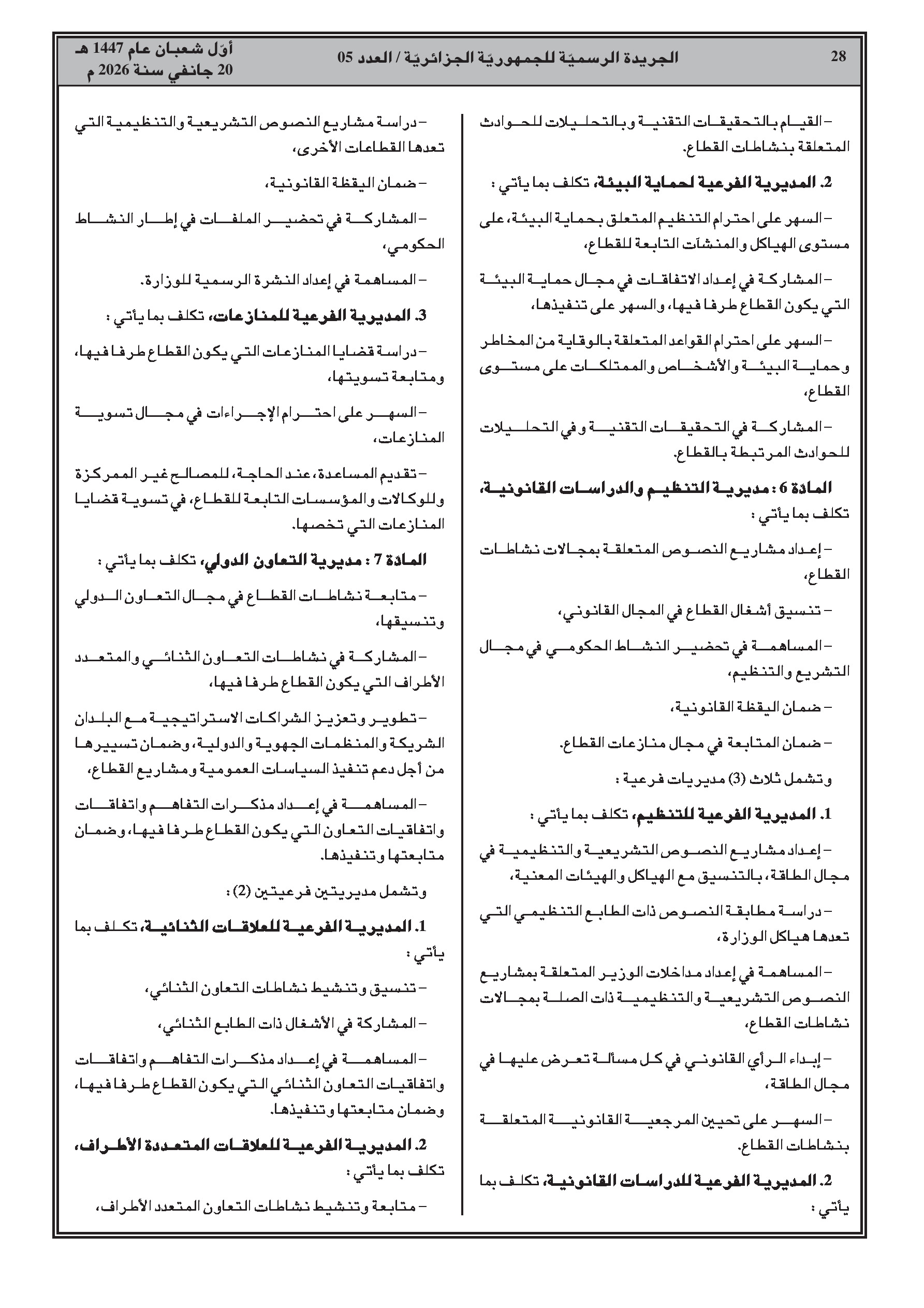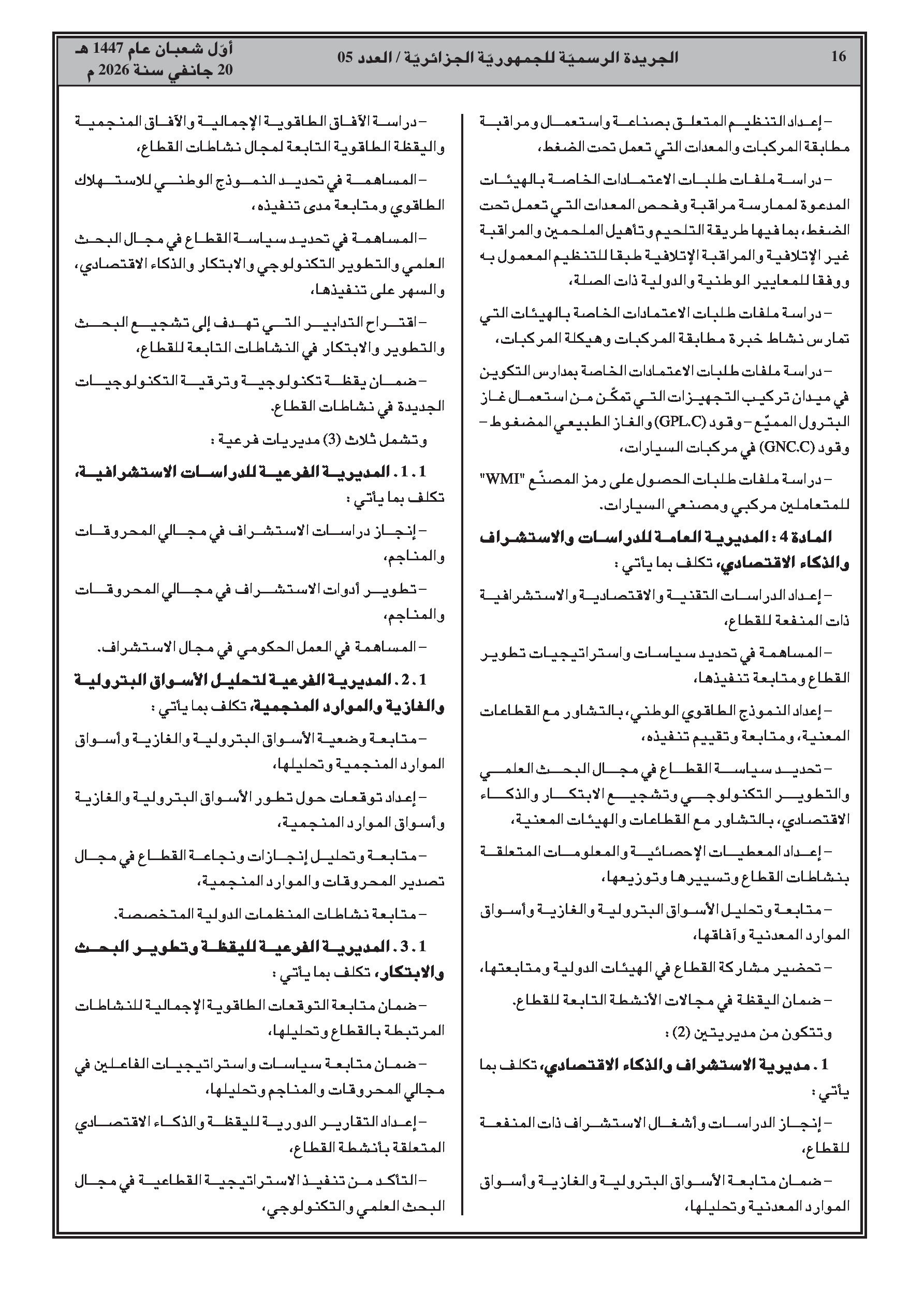 مراسيم تنفيذية تحدد مهام الوزير والهيكل التنظيمي للوزارة مع التركيز على الانتقال الطاقوي.