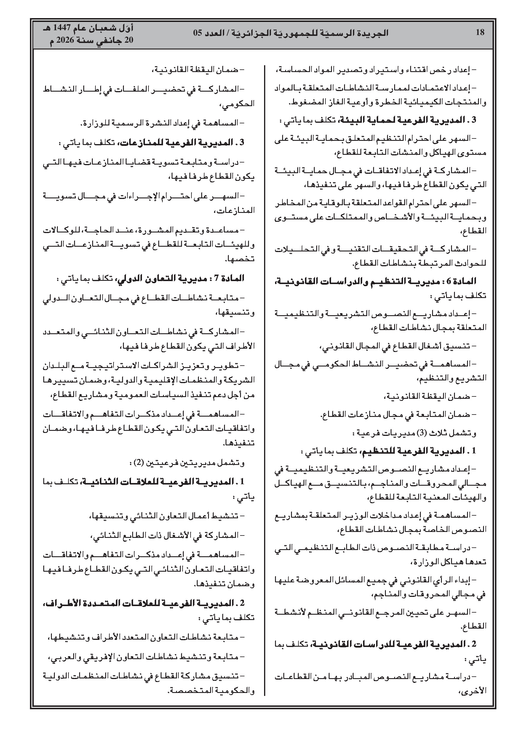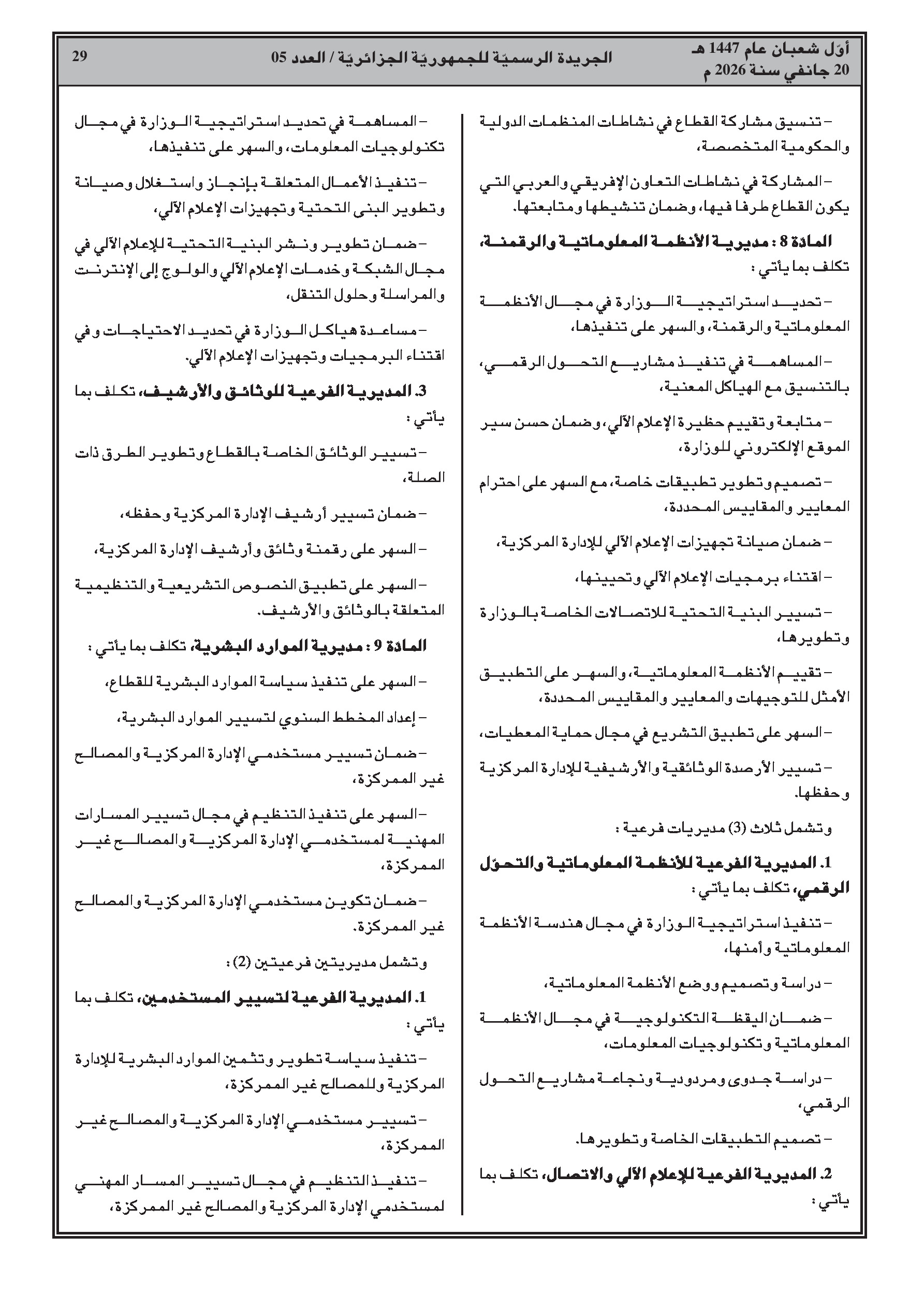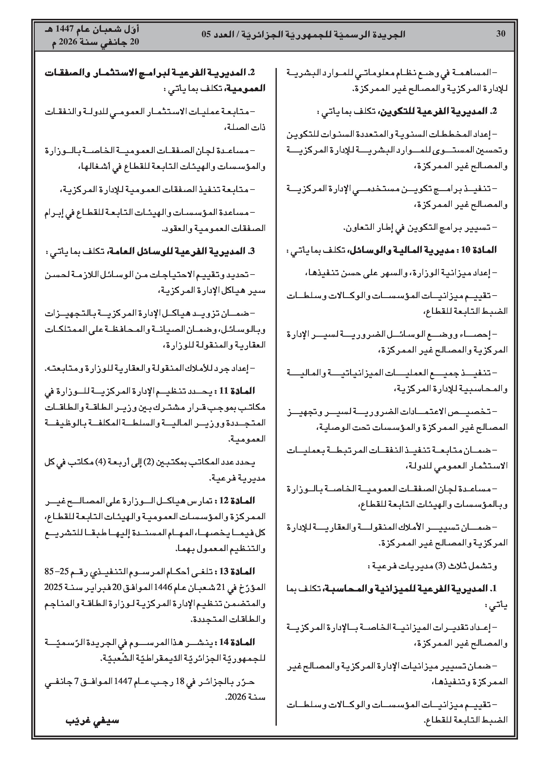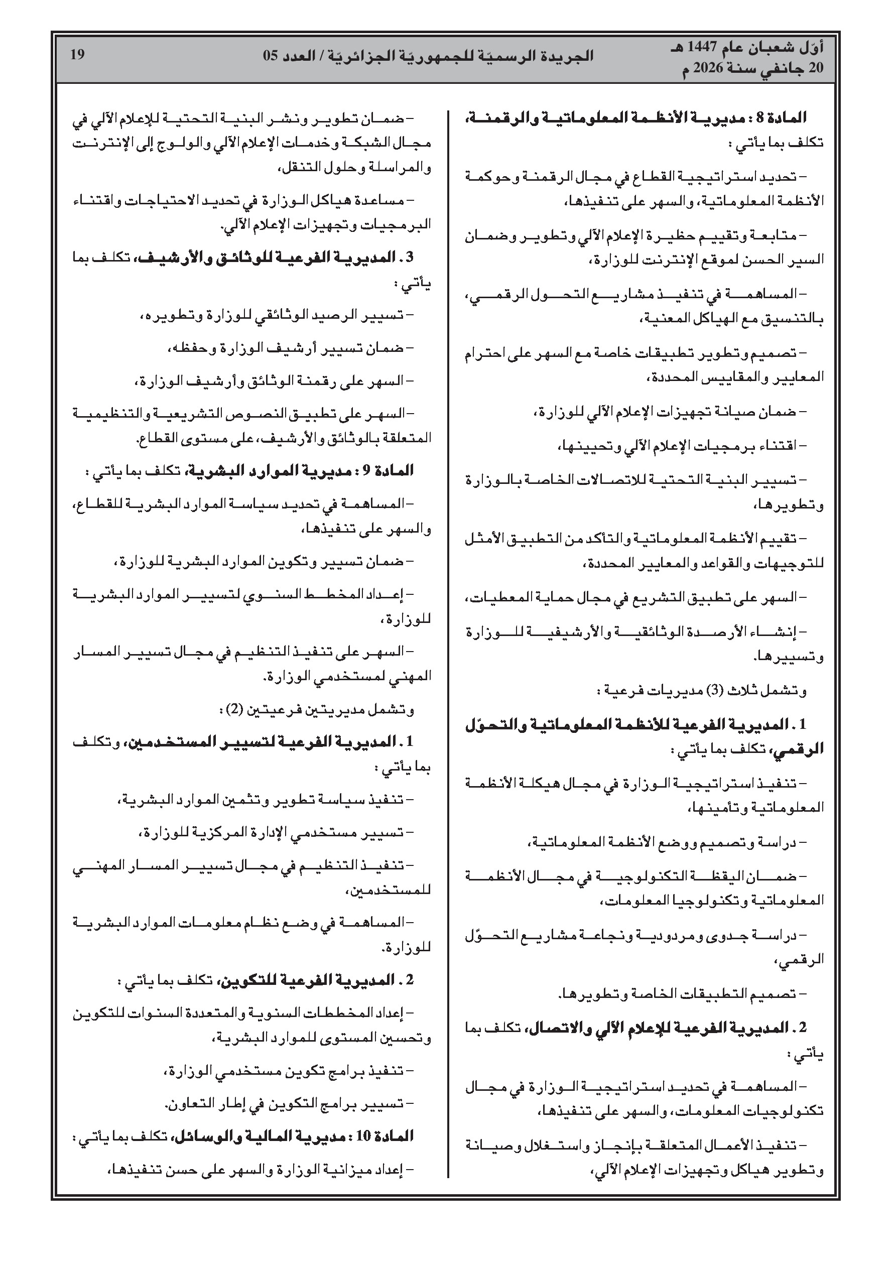 مراسيم تنفيذية تحدد مهام الوزير والهيكل التنظيمي للوزارة.