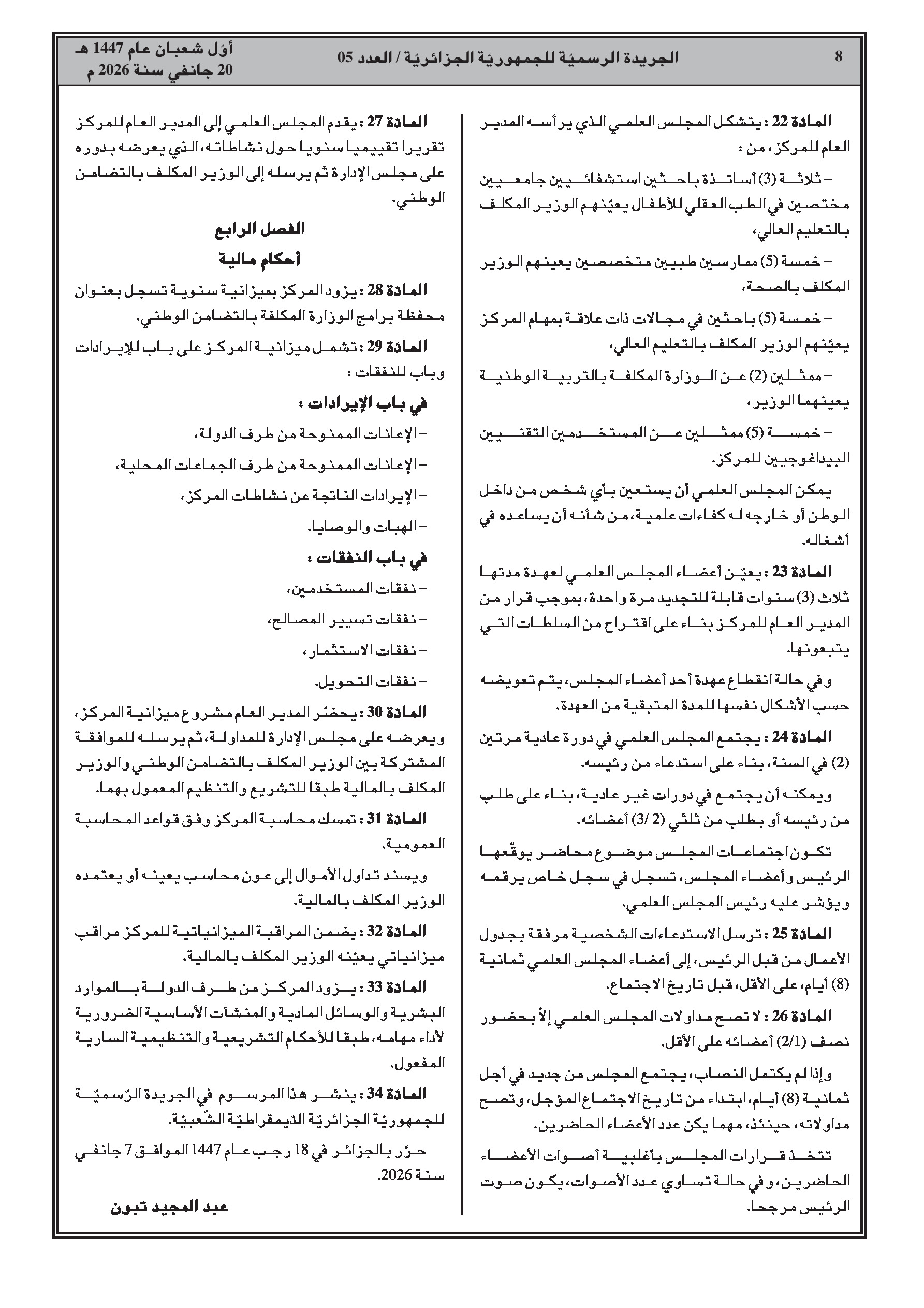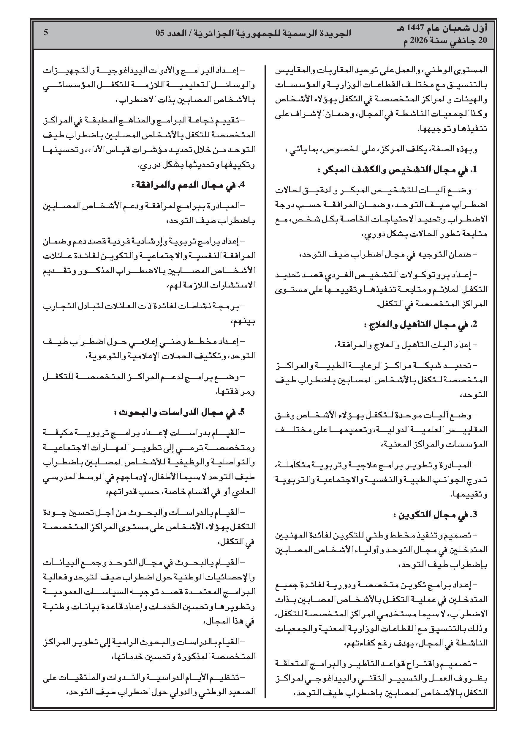 مرسوم رئاسي يتضمن تأسيس مؤسسة عمومية تعنى بالتكفل الشامل بمرضى التوحد.