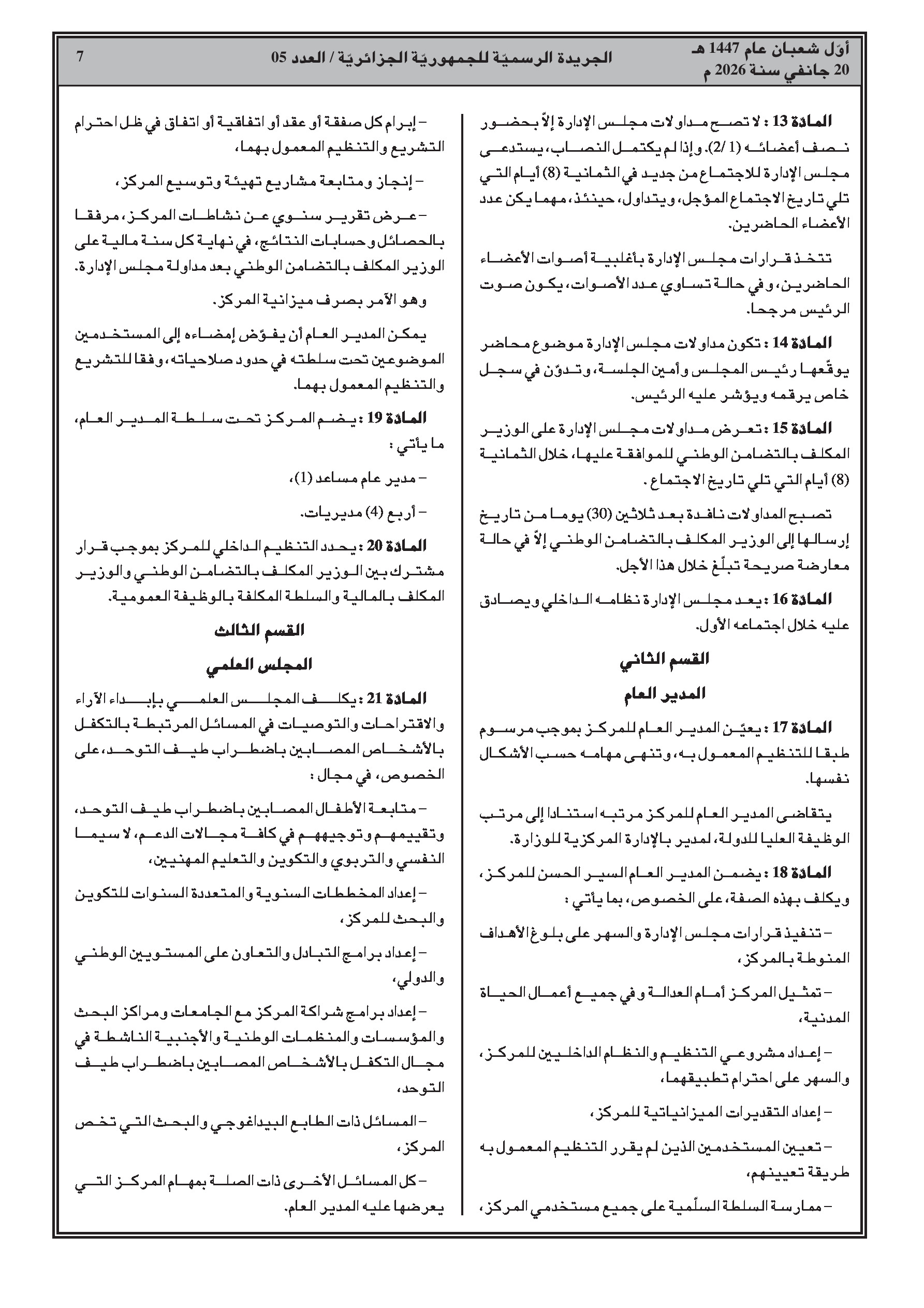قرار يحدد التنظيم الداخلي للمتحف التابع لجامع الجزائر.