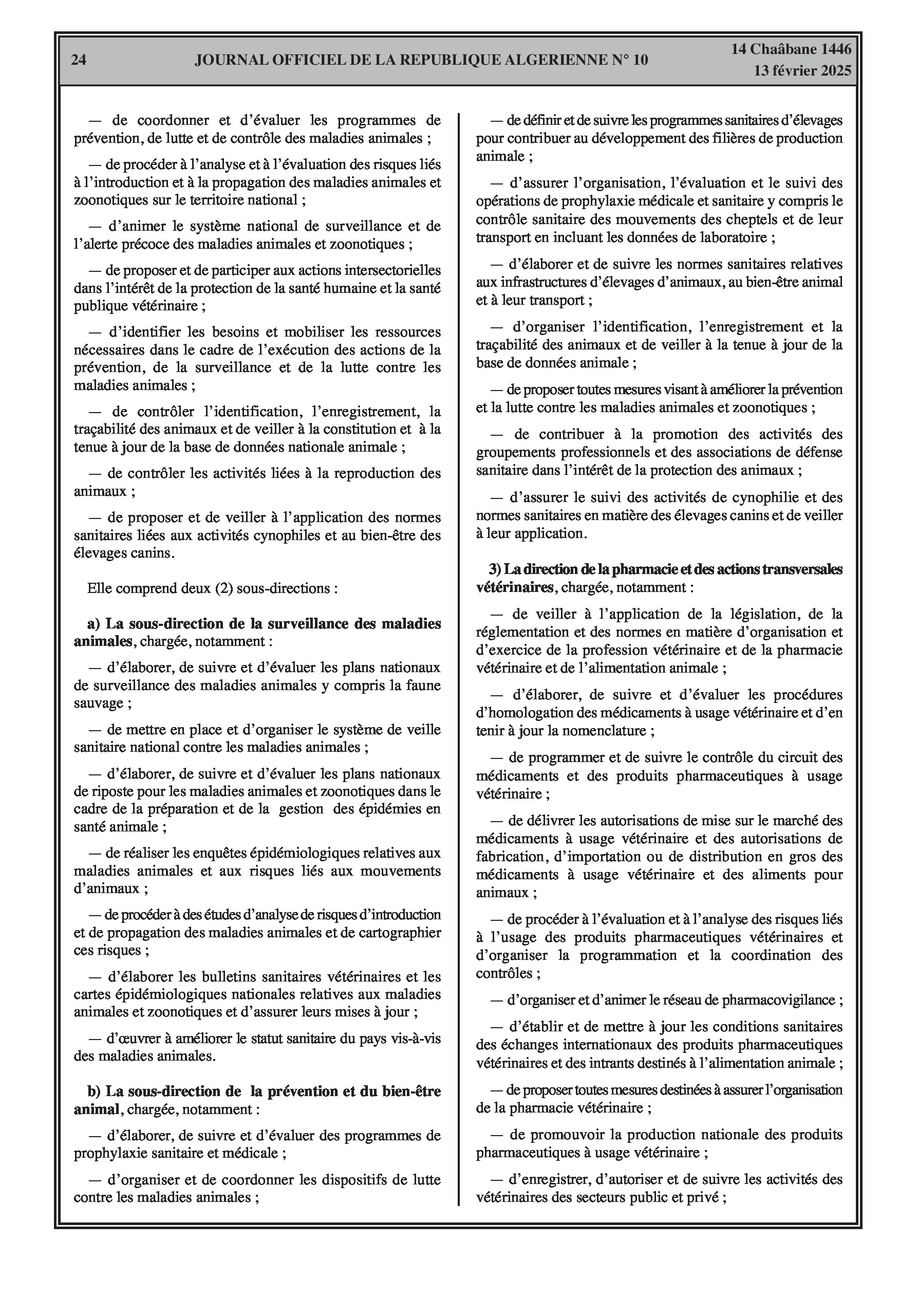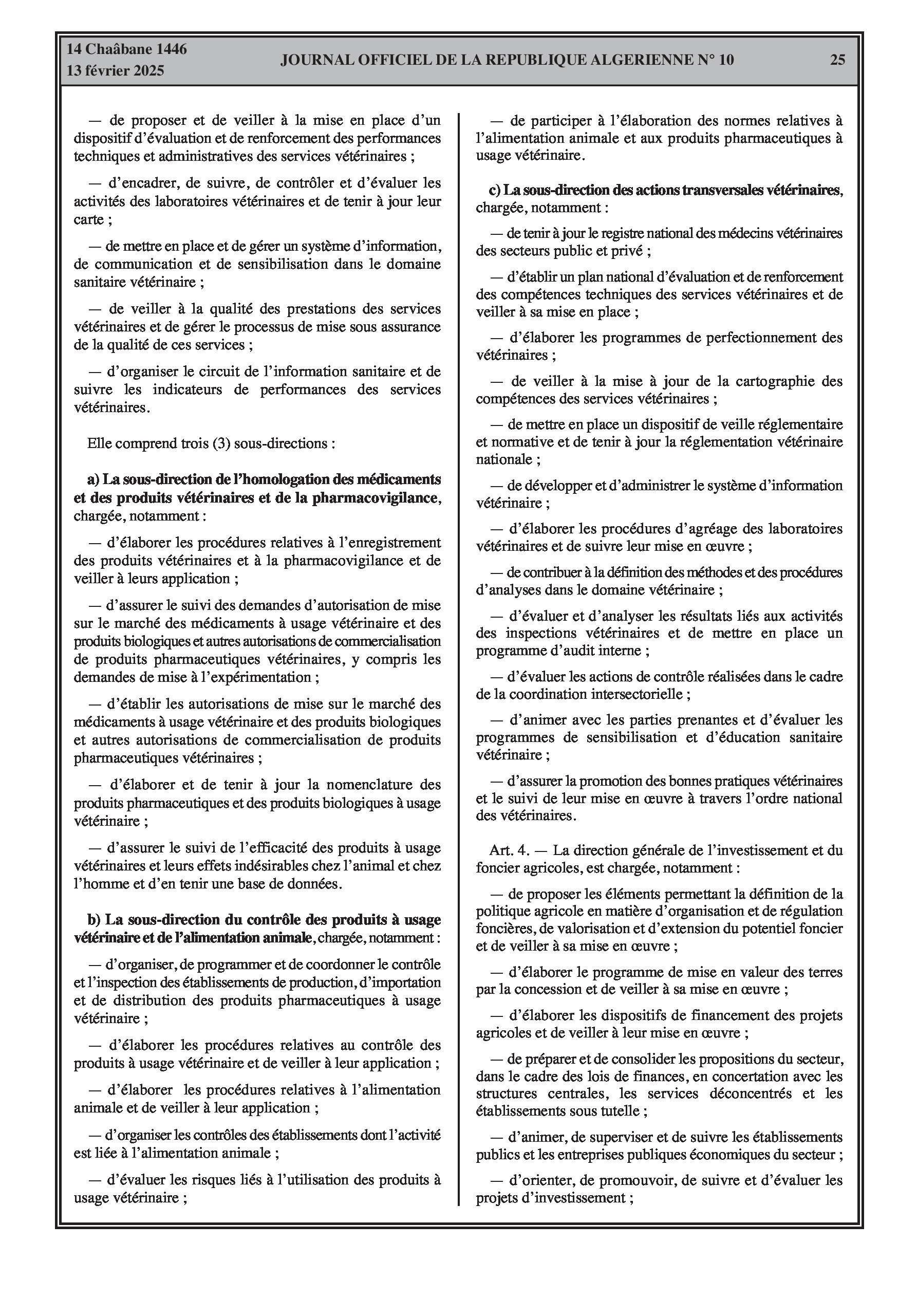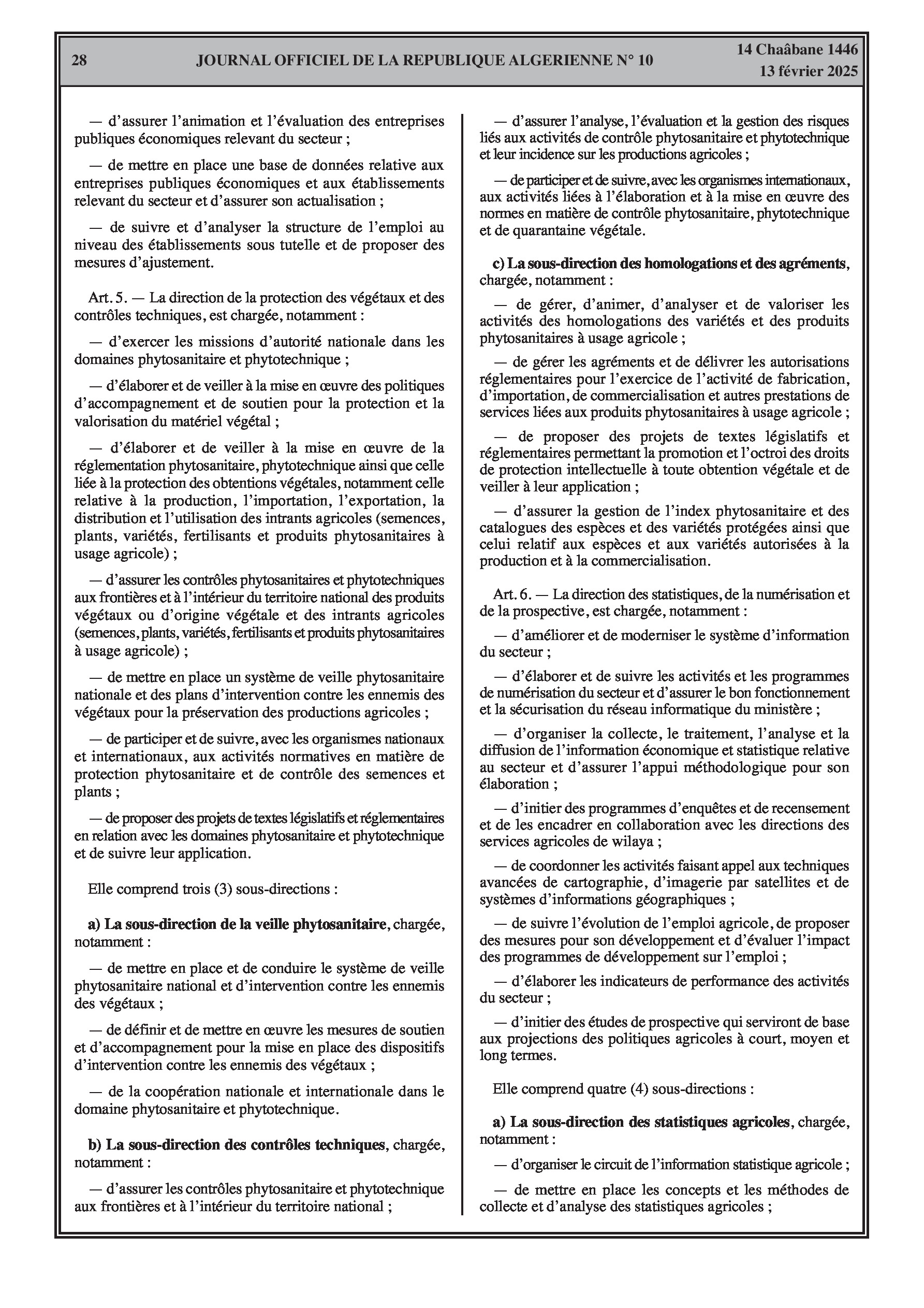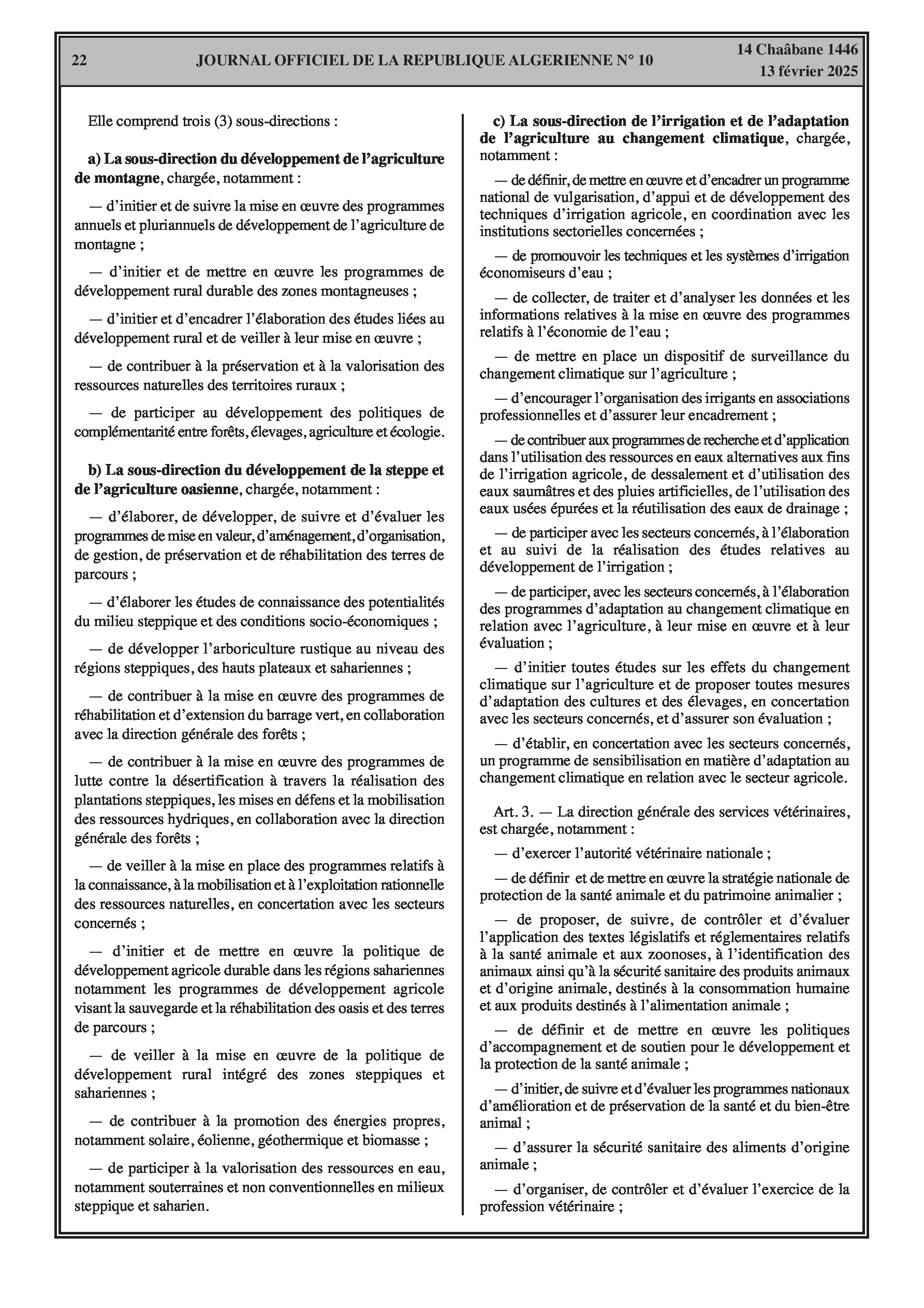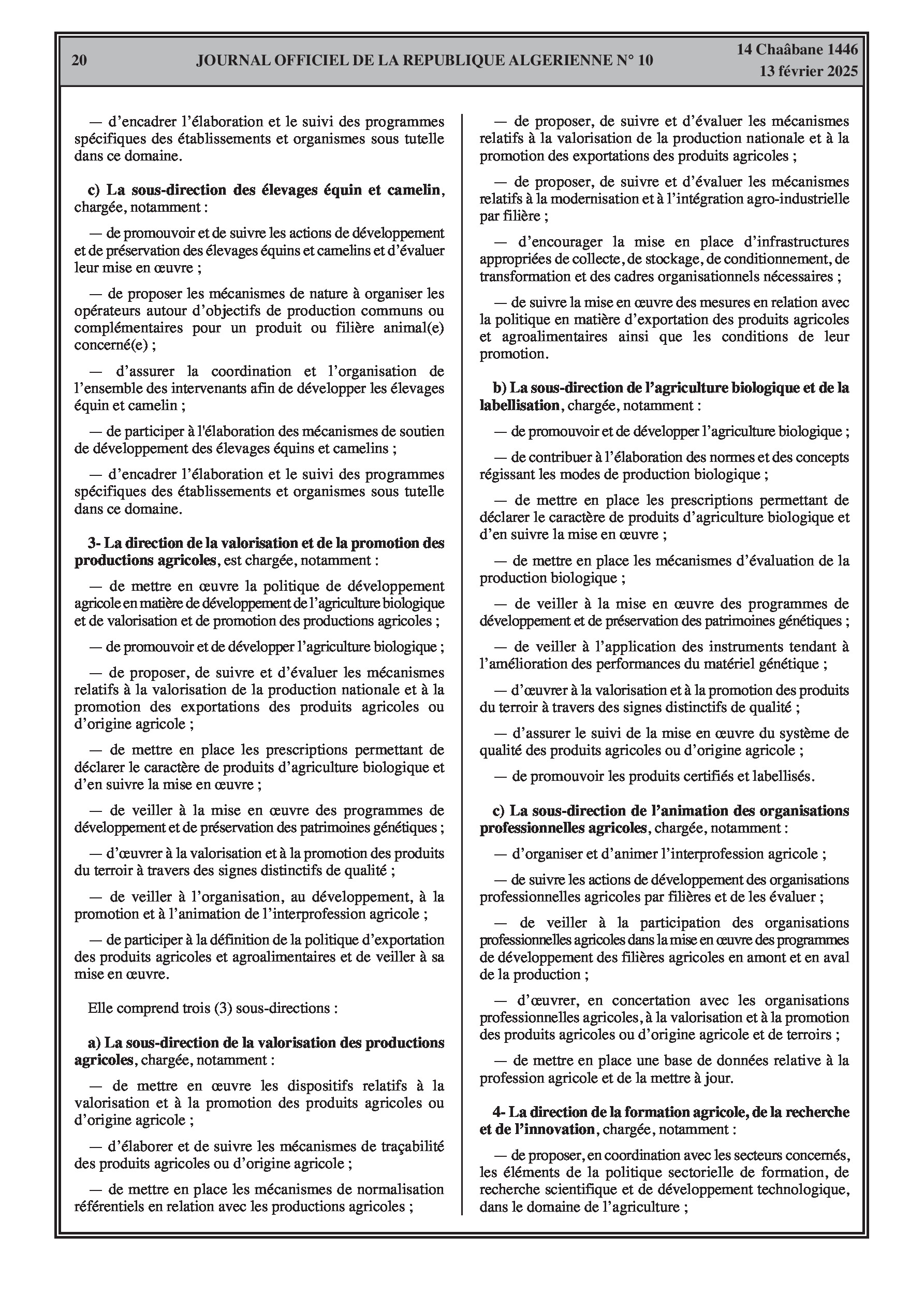Le décret exécutif n° 25-77 détaille l'organisation de l'administration centrale du ministère de l'Agriculture, du Développement Rural et de la Pêche.