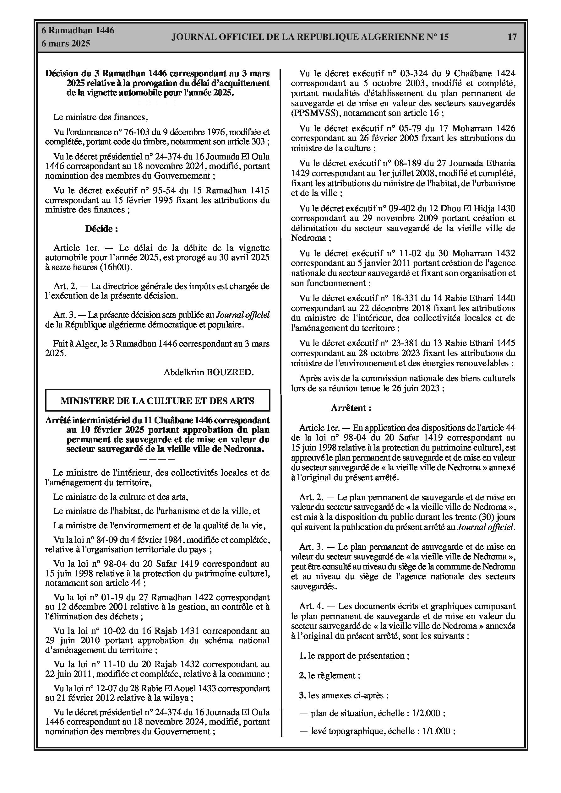 Vignette auto prolongée, réformes administratives, et sauvegarde du patrimoine de Nedroma