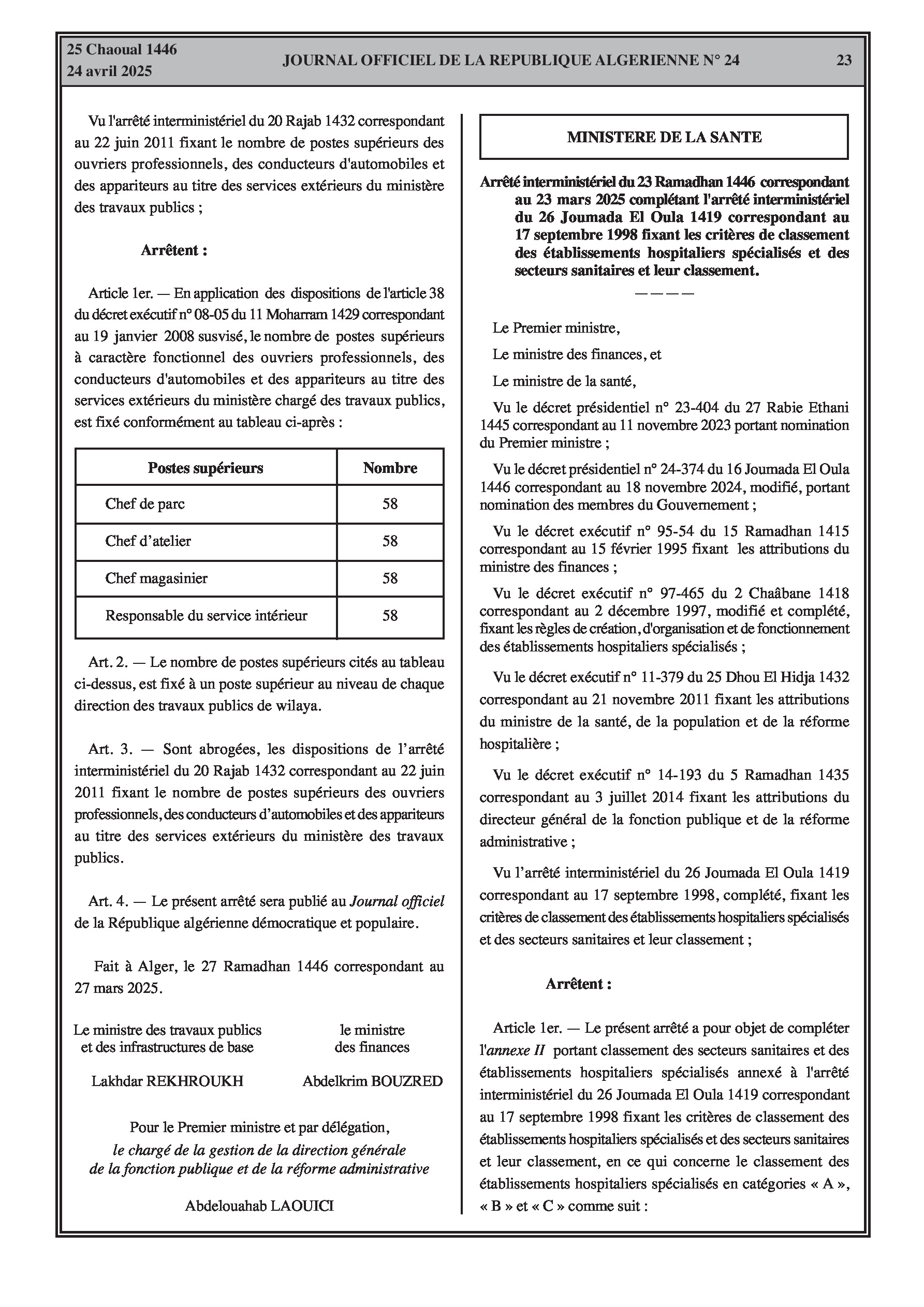 15. Fixation des Postes Supérieurs au Ministère des Travaux Publics