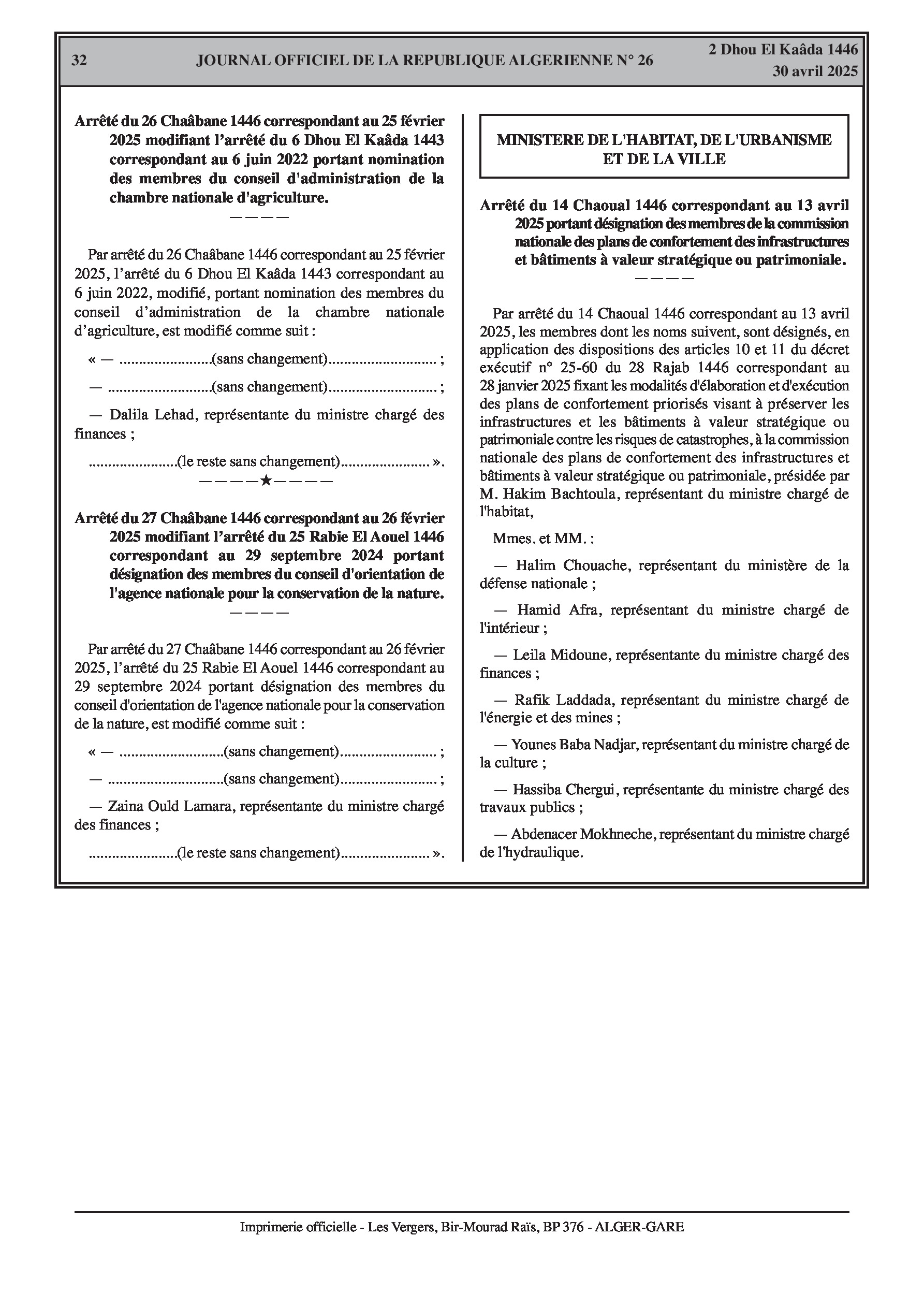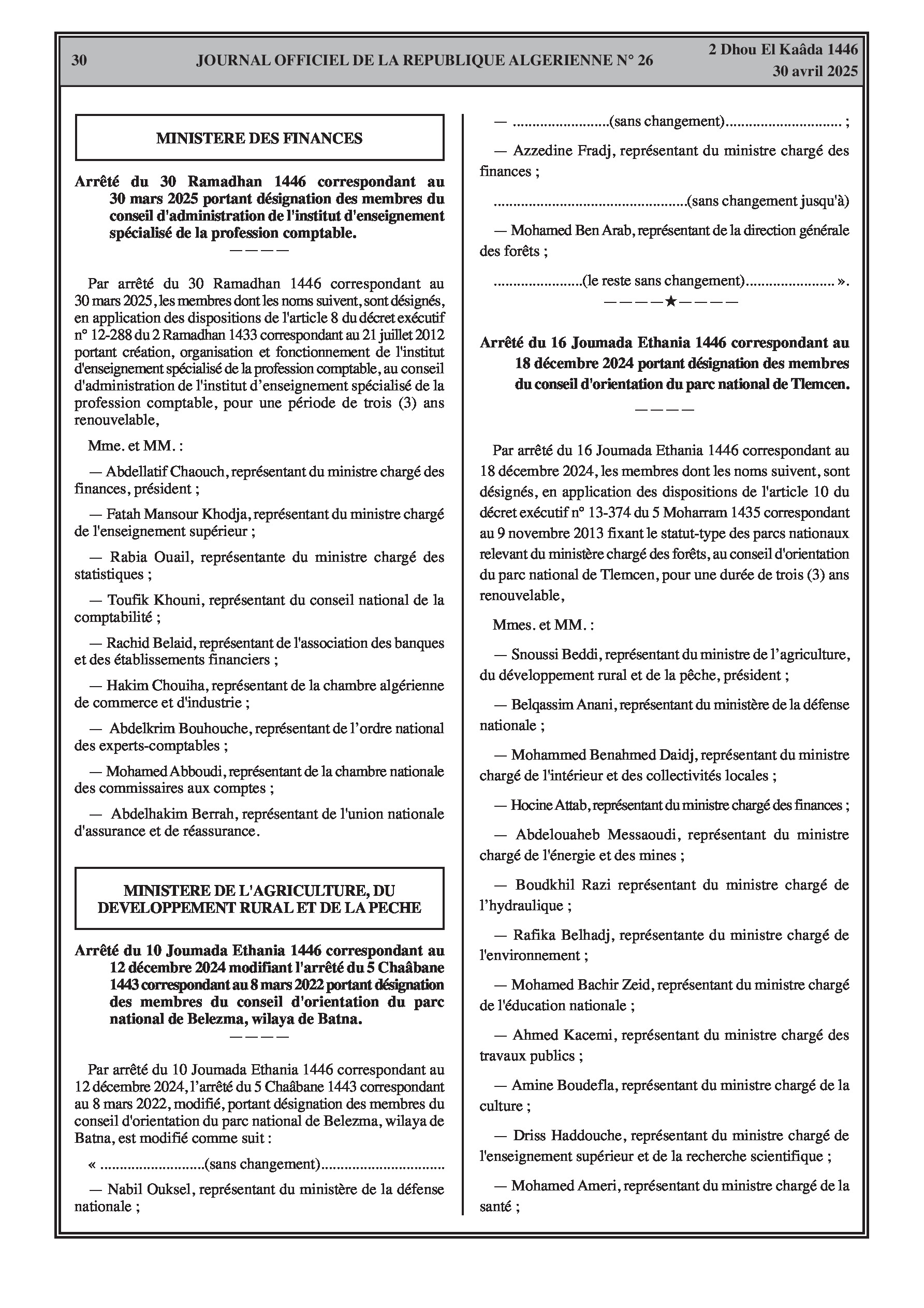 Arrêtés et décisions ministériels comprenant des nominations au comité d'éthique de l'Agence nationale de sécurité sanitaire, la liste nationale des personnes habilitées à effectuer l'enquête préalable d'expropriation pour cause d'utilité publique, des nominations au conseil d'administration de l'institut de la profession comptable, et des nominations au sein de conseils d'orientation et d'organismes des secteurs de l'agriculture et de l'habitat.
