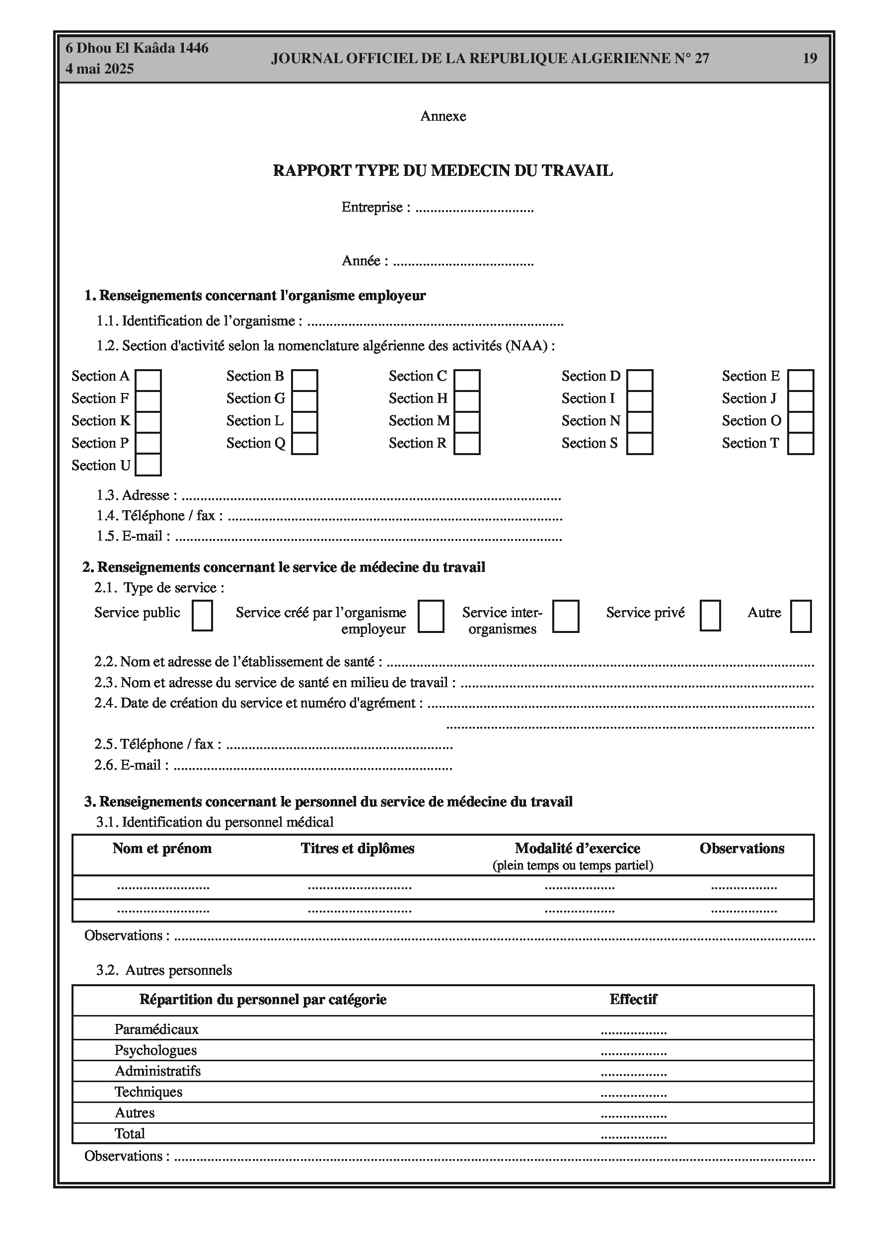 15. Rapport Type du Médecin du Travail