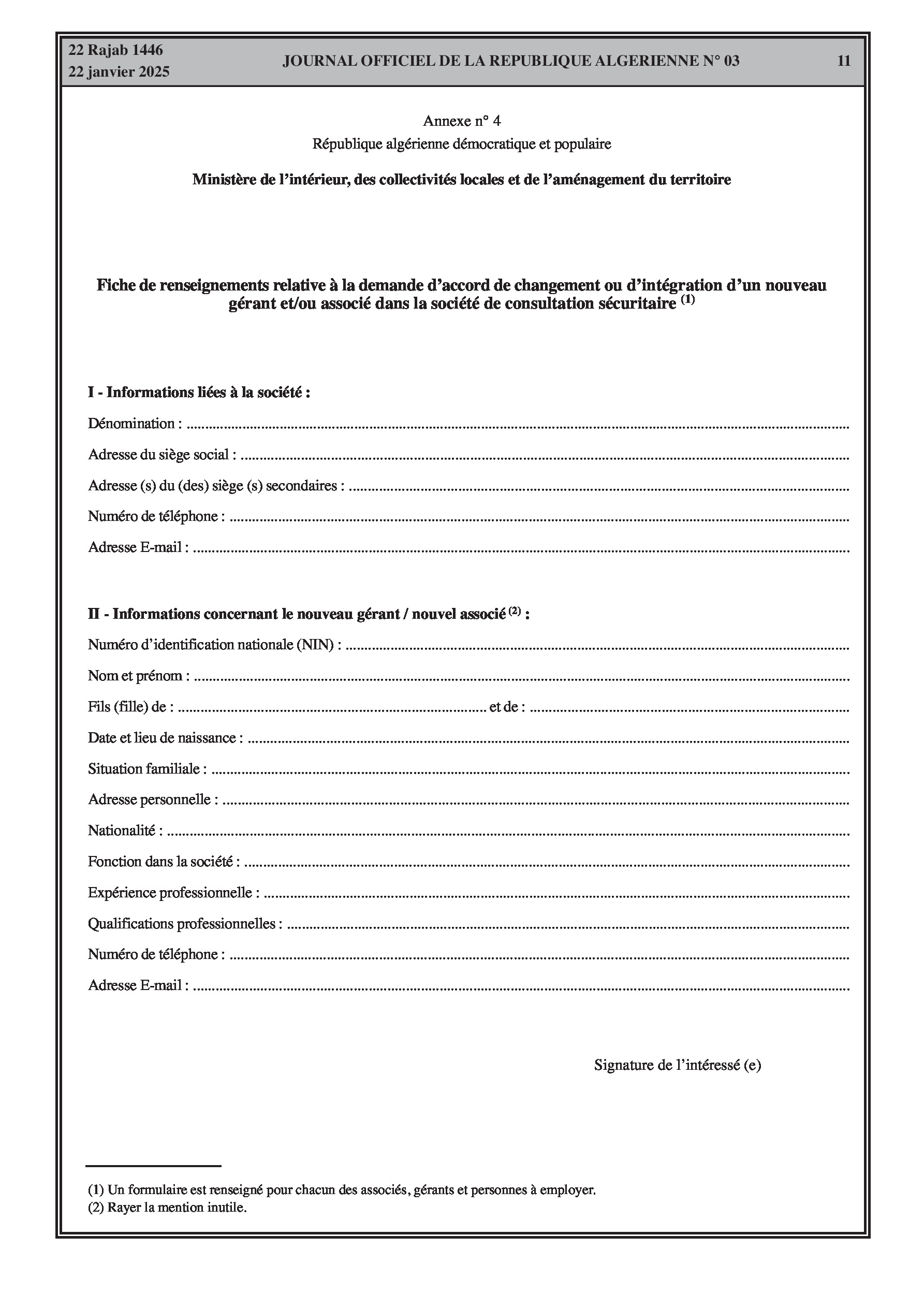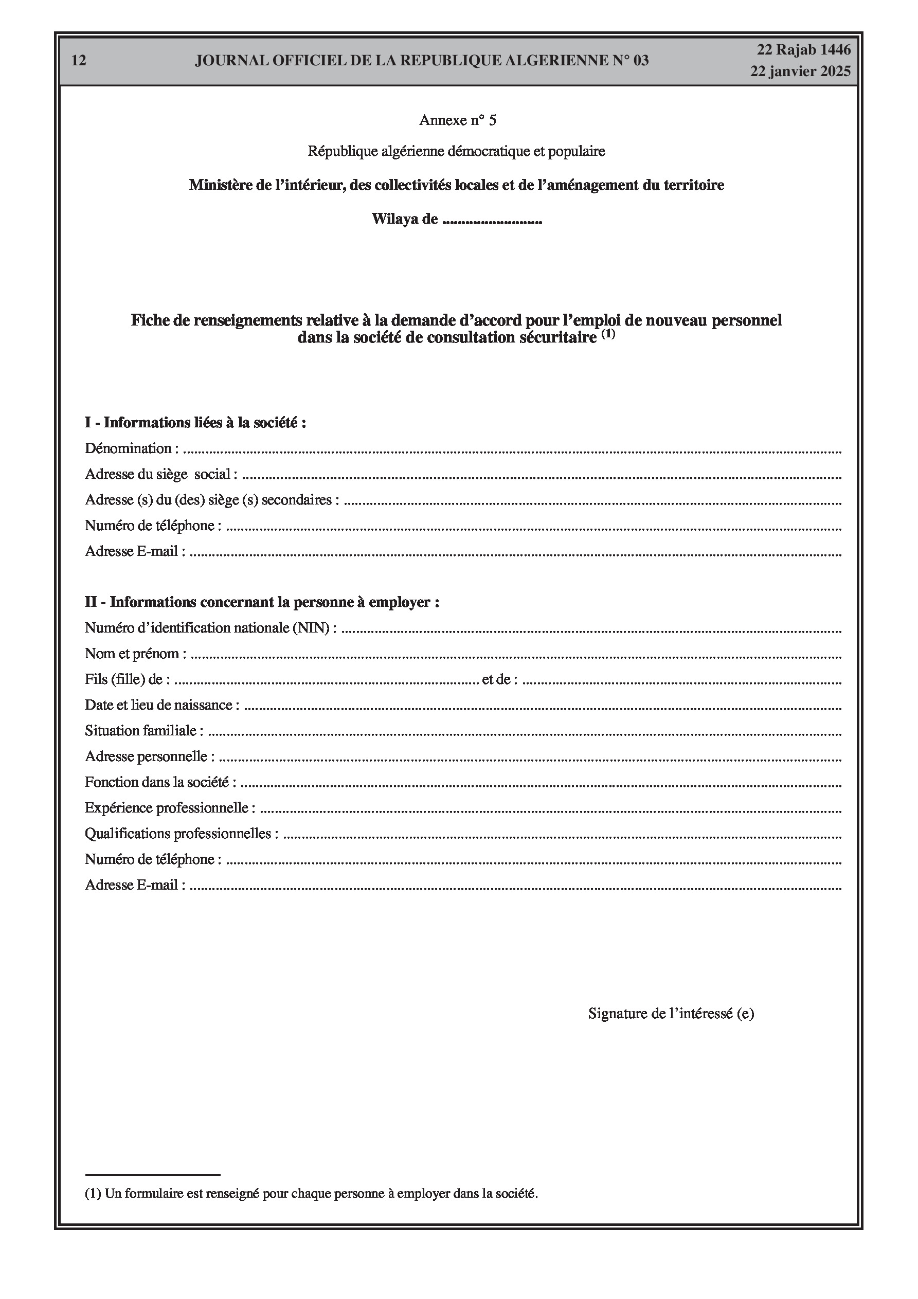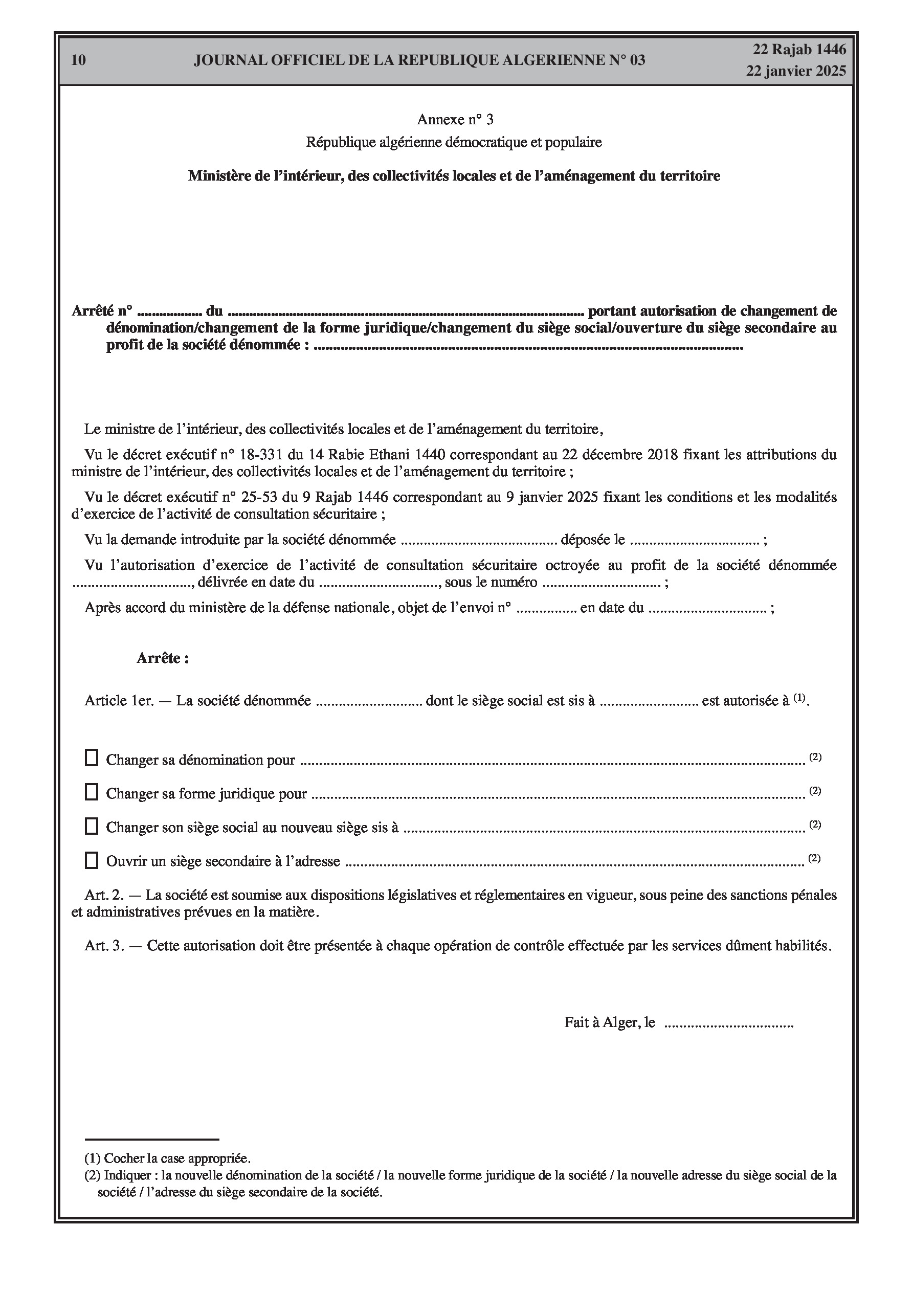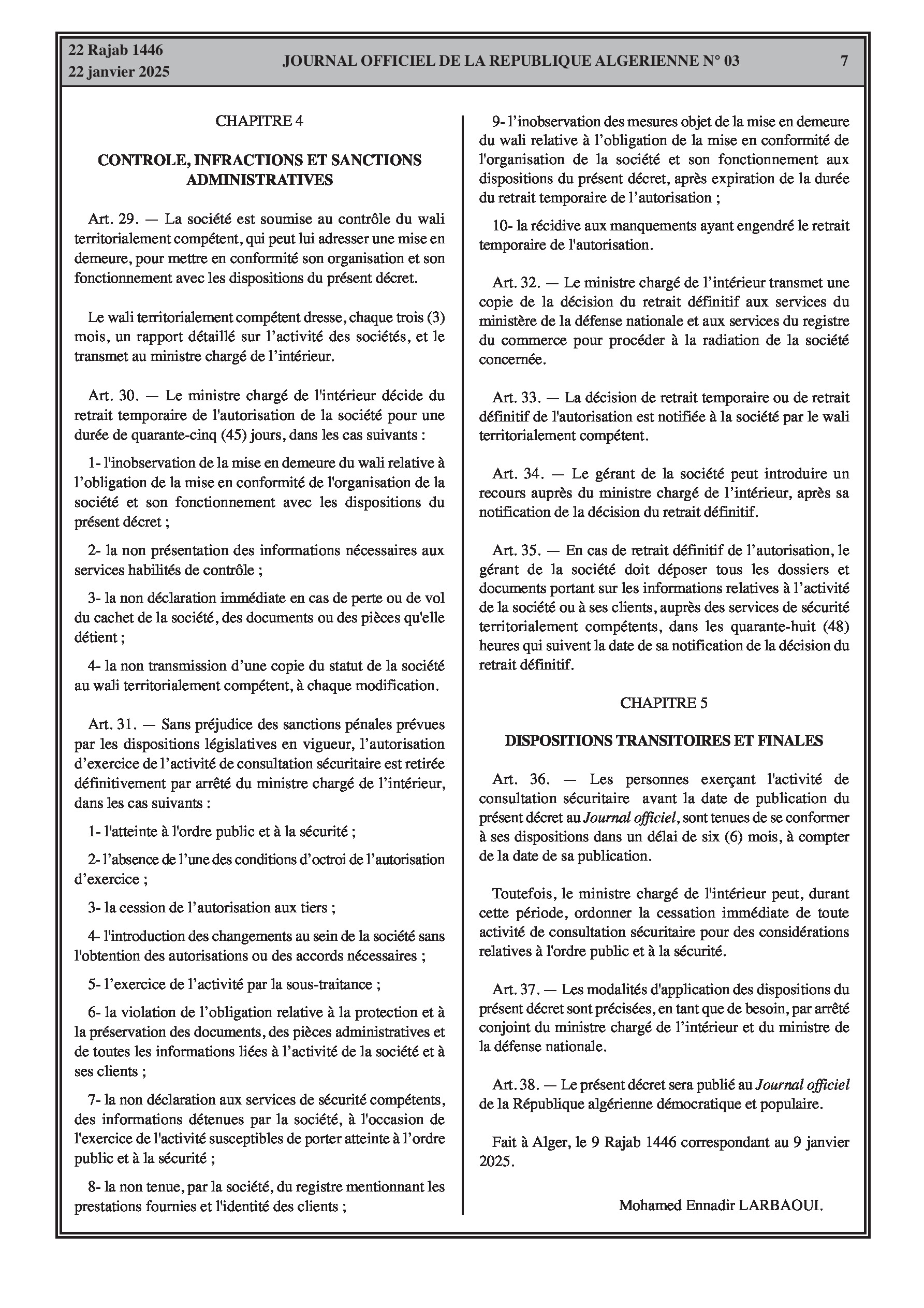 Décret exécutif n° 25-53 fixant les conditions et les modalités d'exercice de l'activité de consultation sécuritaire, y compris les autorisations, obligations et contrôles.