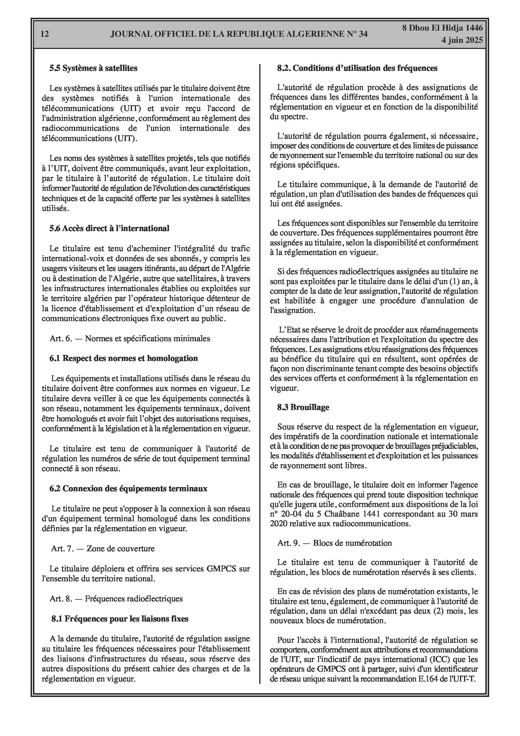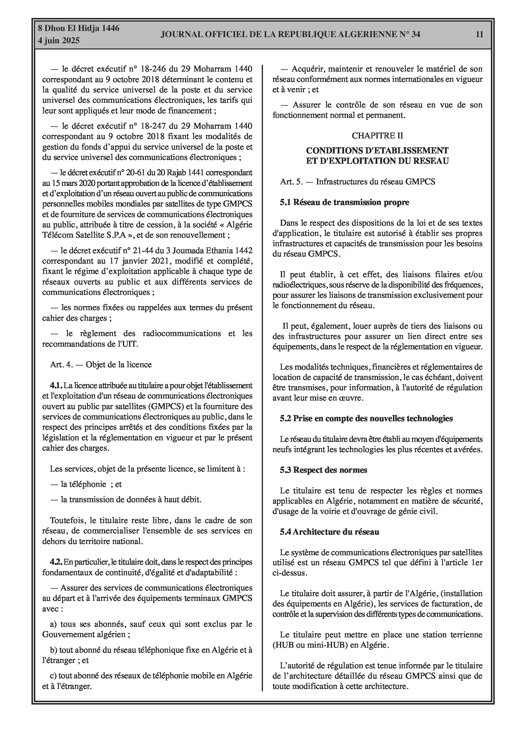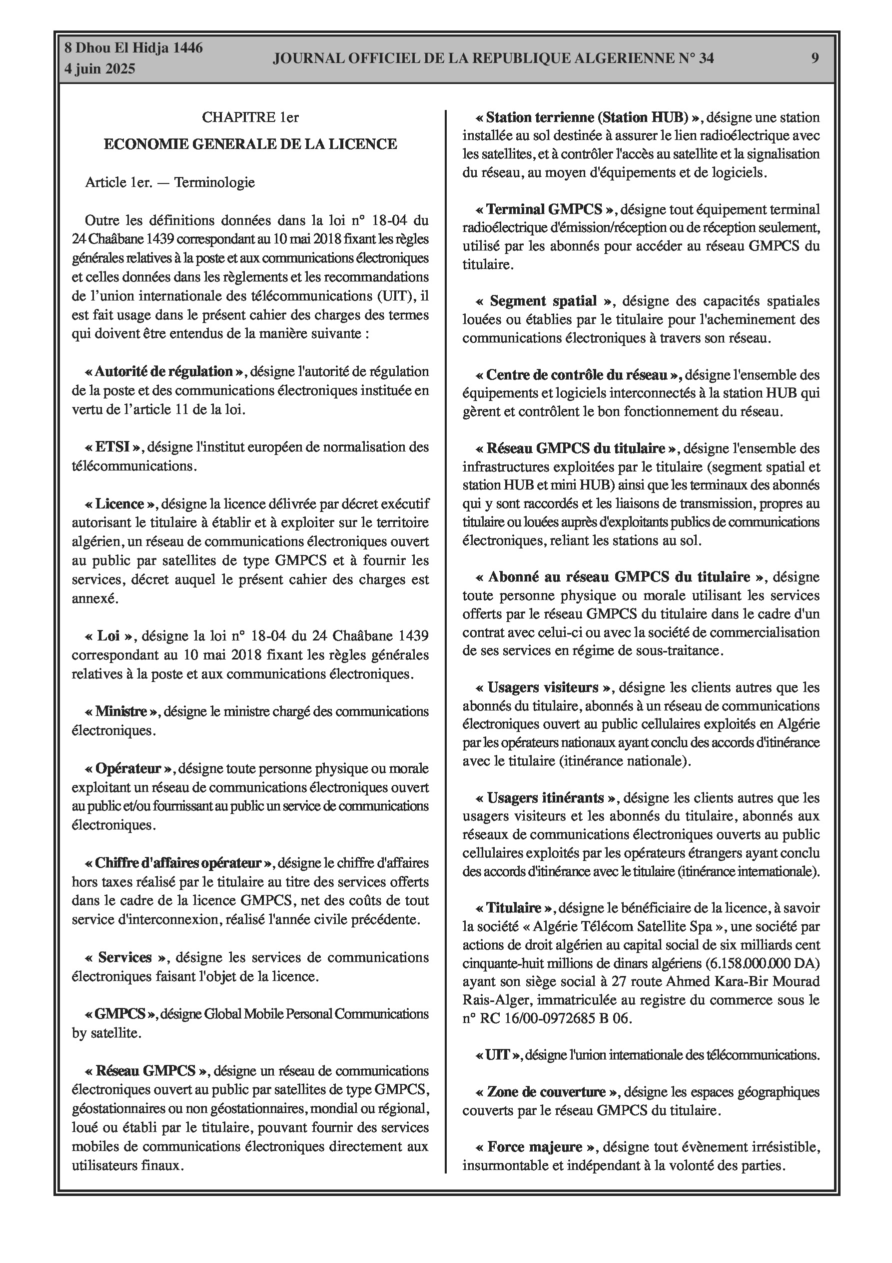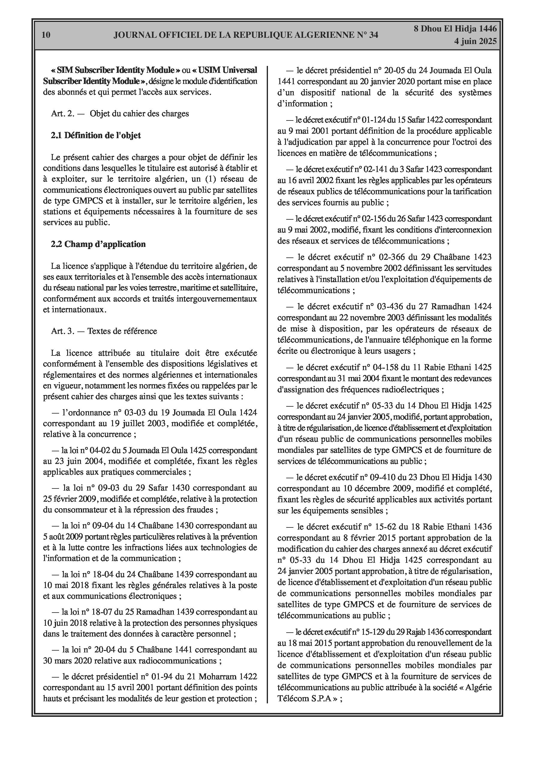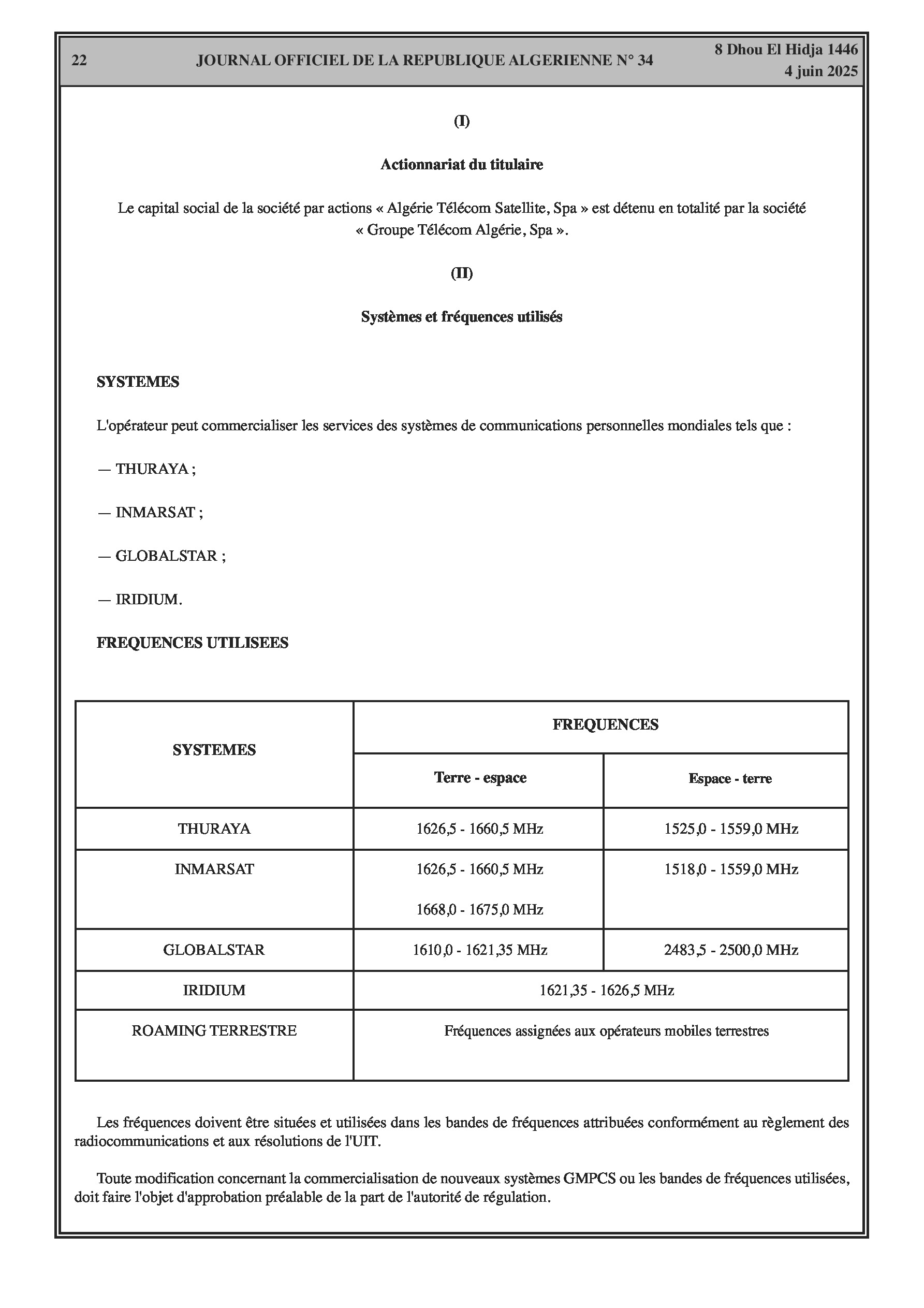 2. Renouvellement de la licence d'Algérie Télécom Satellite pour les réseaux GMPCS