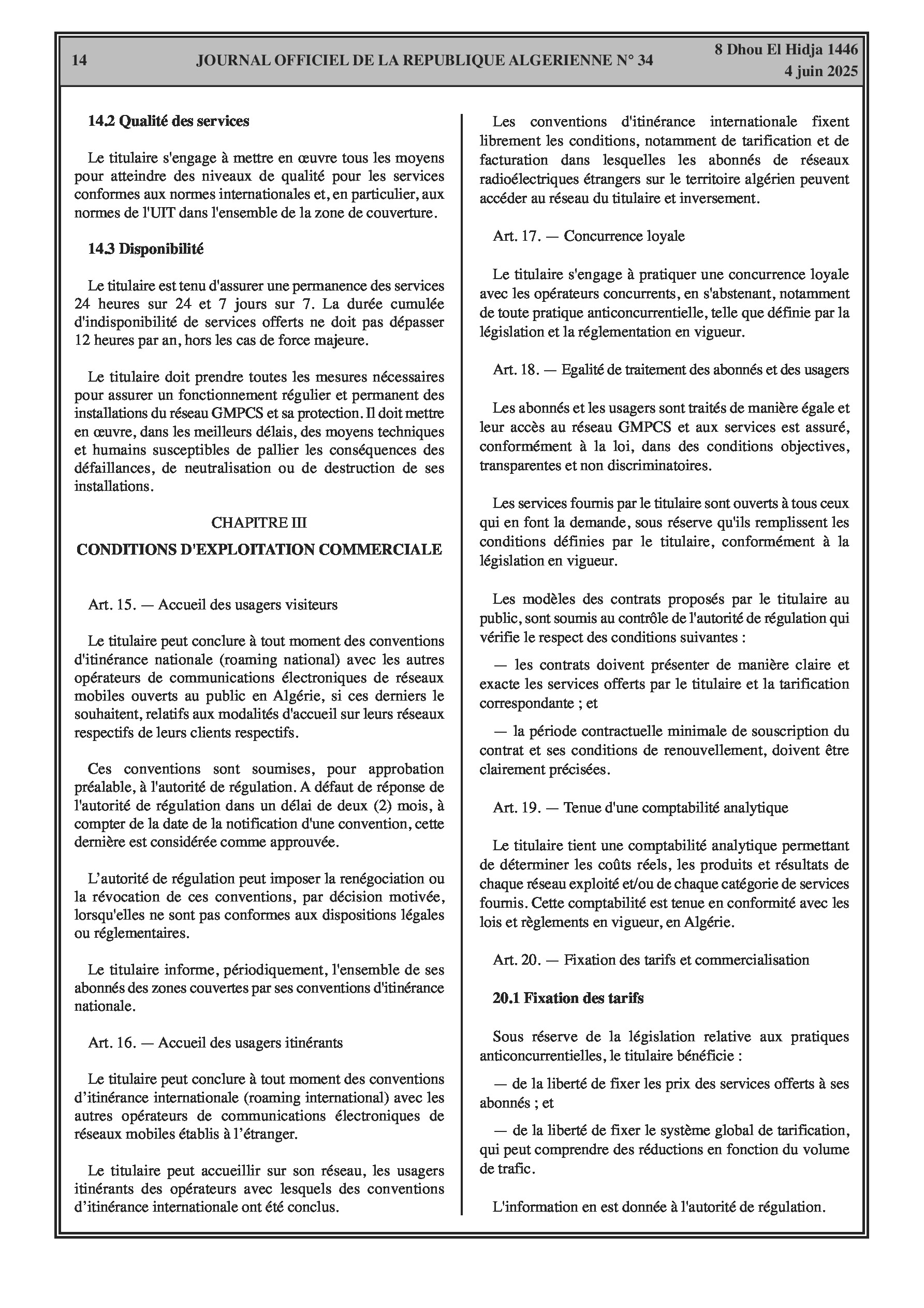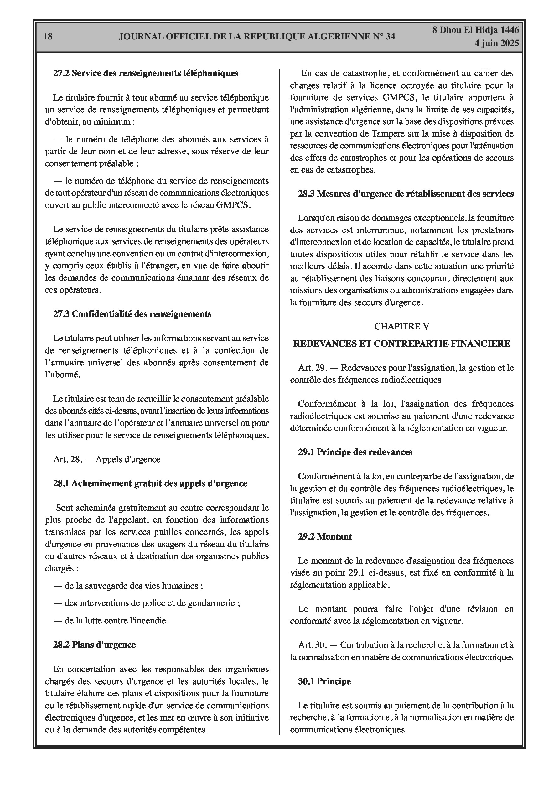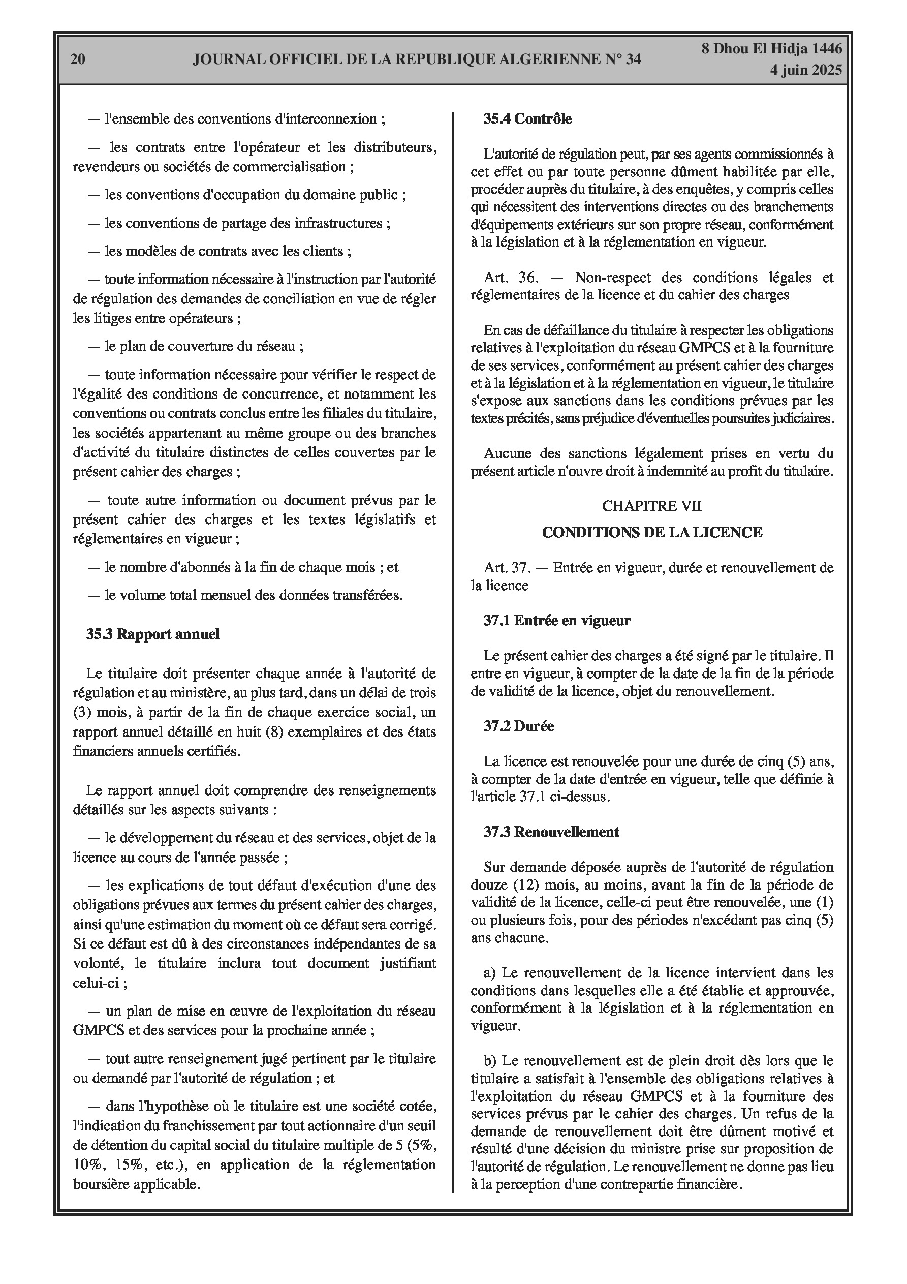 Dissolution de Riadh El Feth, Renouvellement de la licence d'Algérie Télécom Satellite, et Nouveau règlement sur la liquidité d'urgence