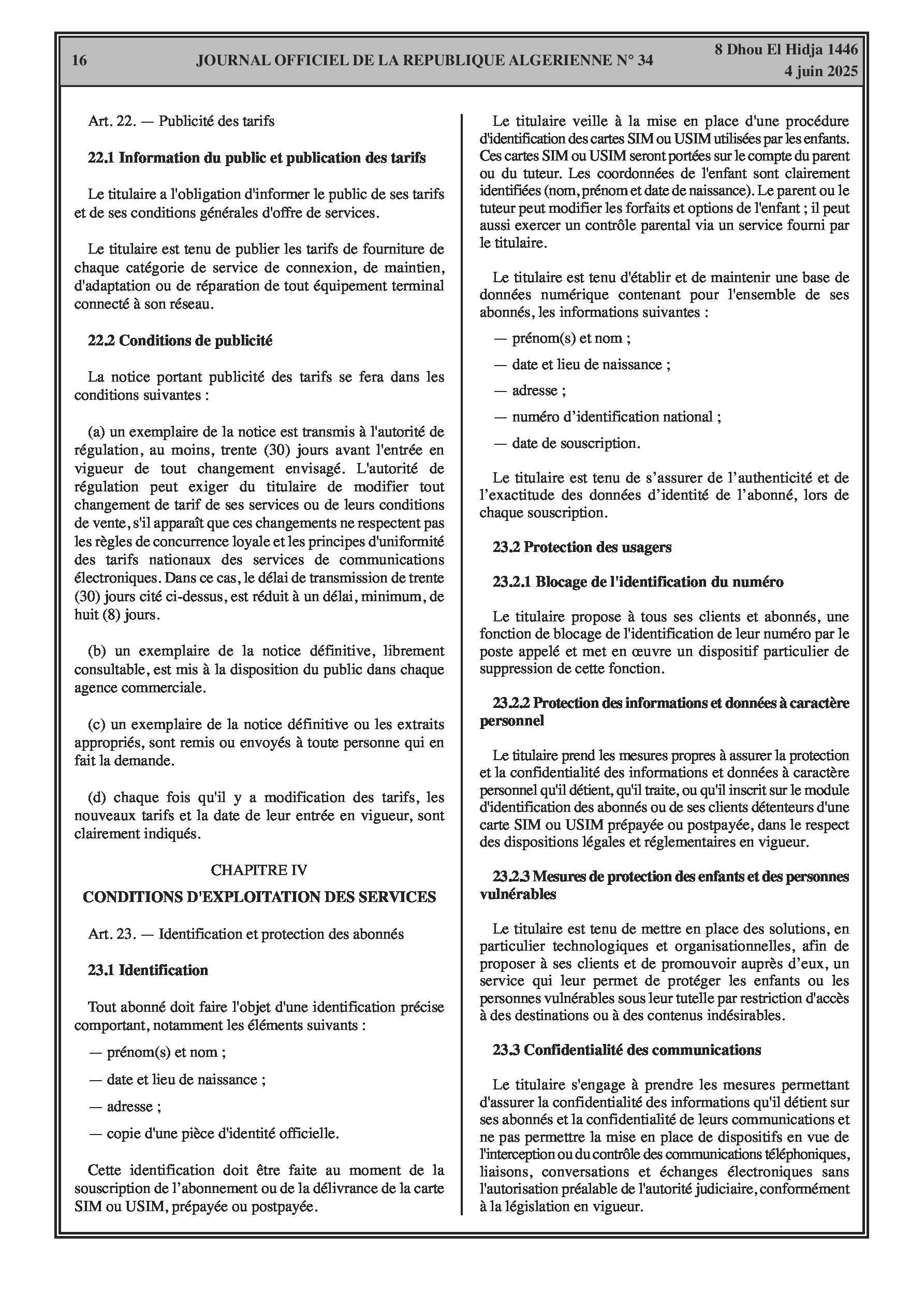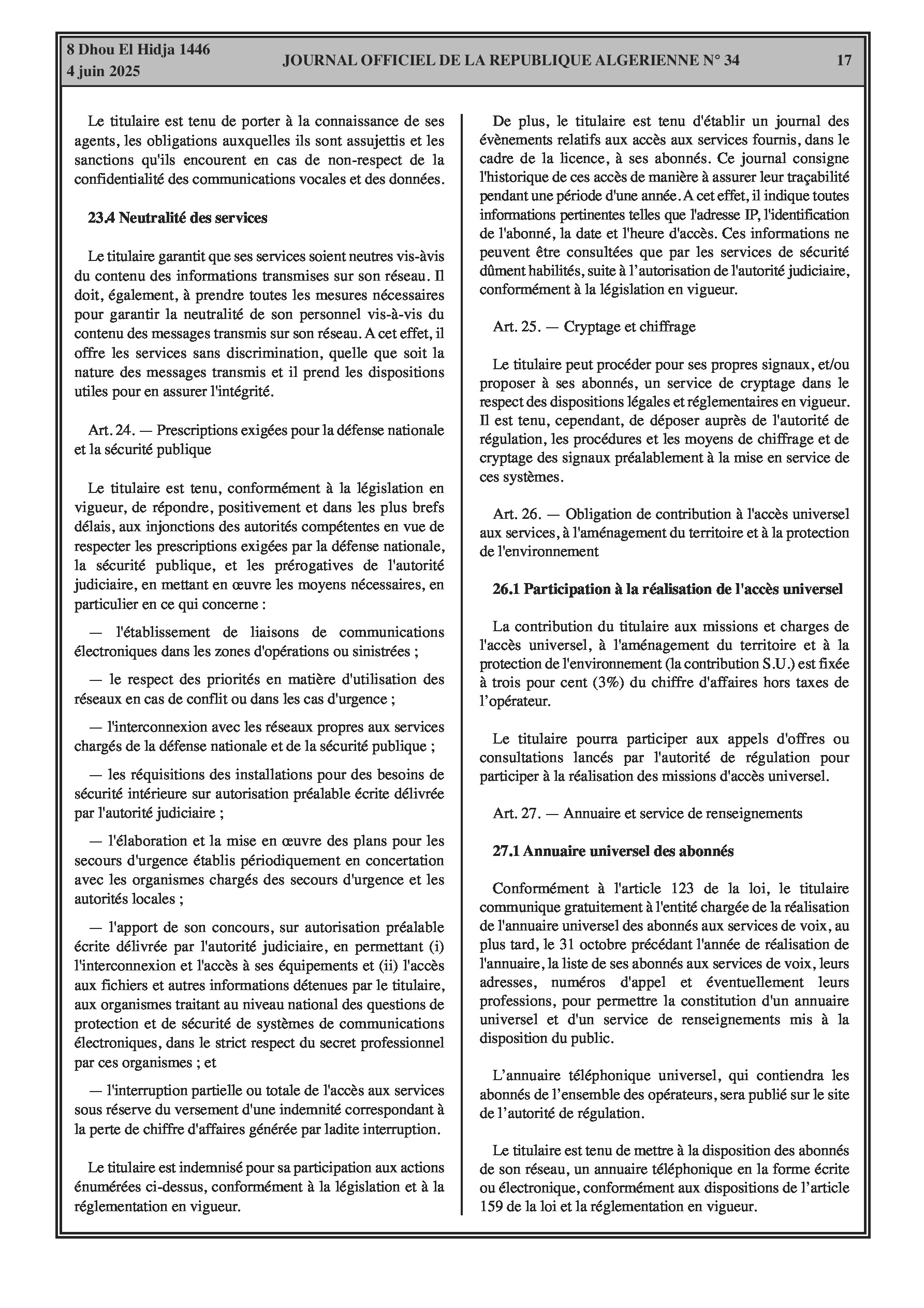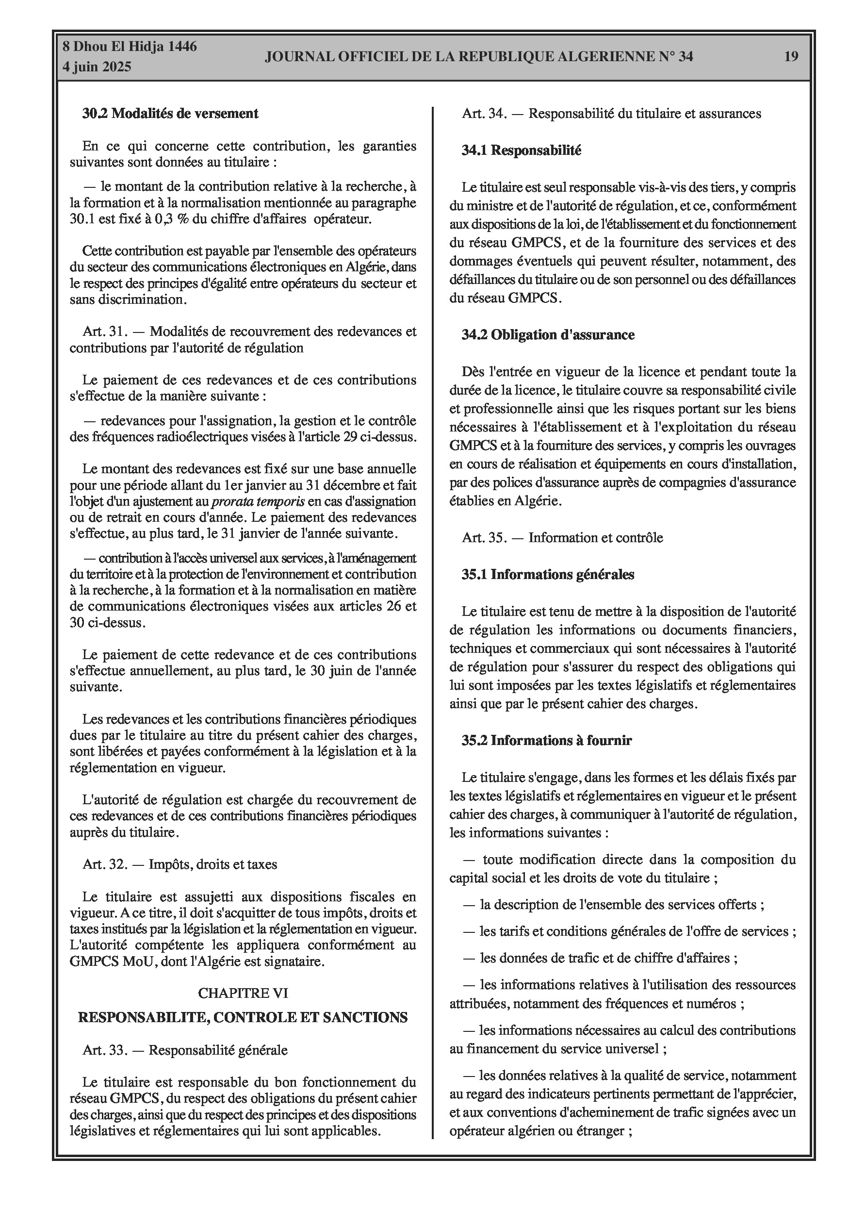 Dissolution de Riadh El Feth, Renouvellement de la licence d'Algérie Télécom Satellite, et Nouveau règlement sur la liquidité d'urgence