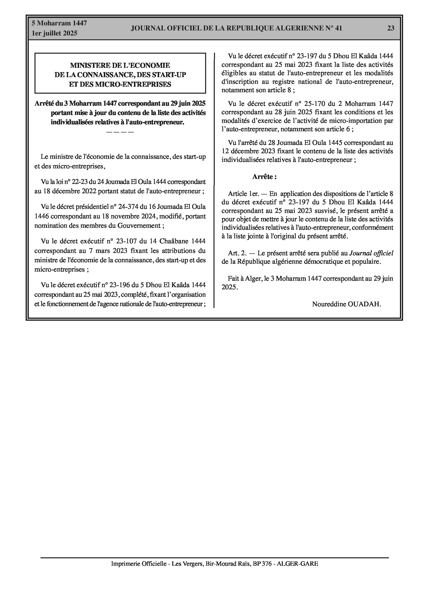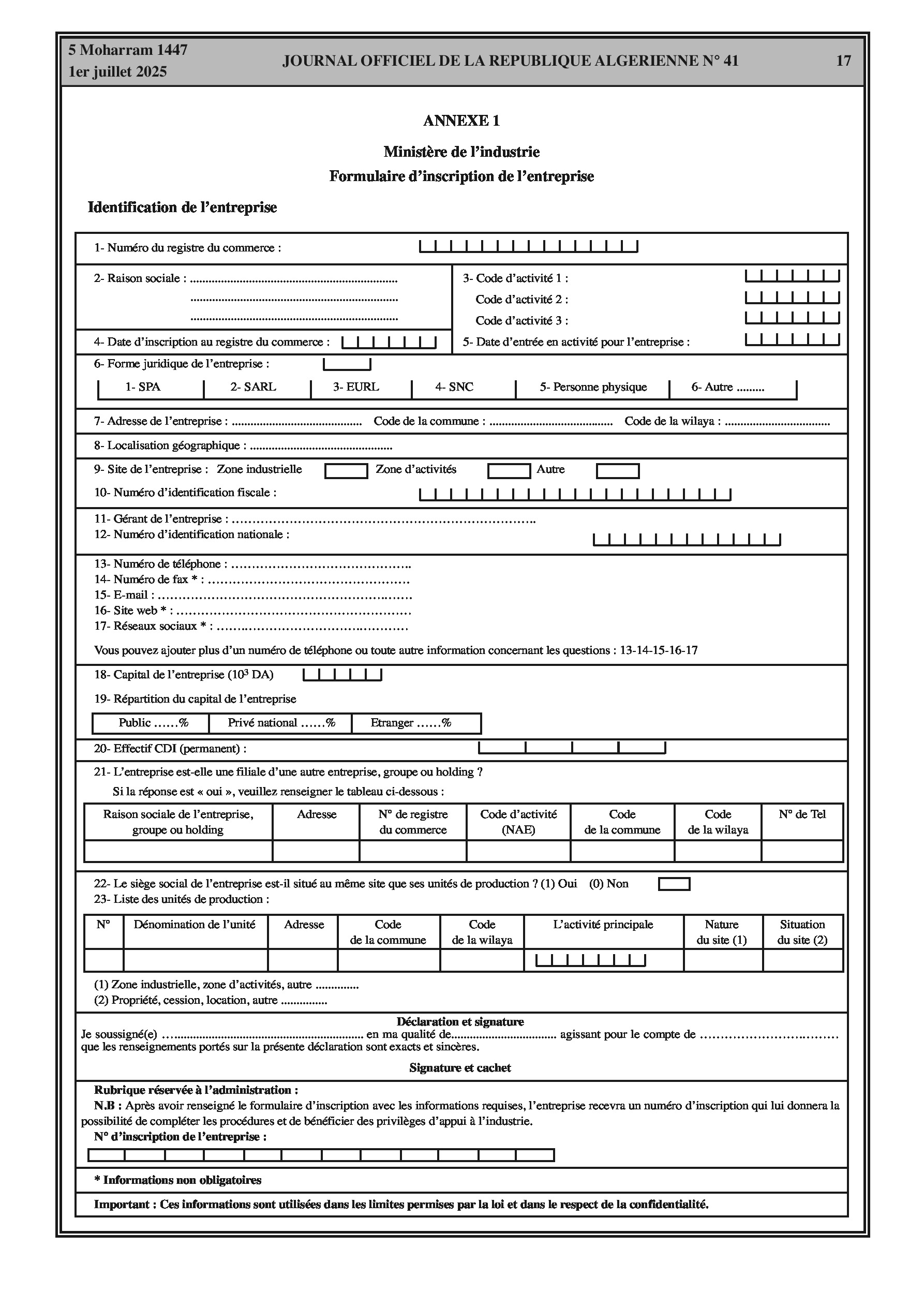 Mises à jour clés incluant le vote électronique pour les sociétés cotées, la déclaration obligatoire des données industrielles, et une liste révisée des activités pour les auto-entrepreneurs.