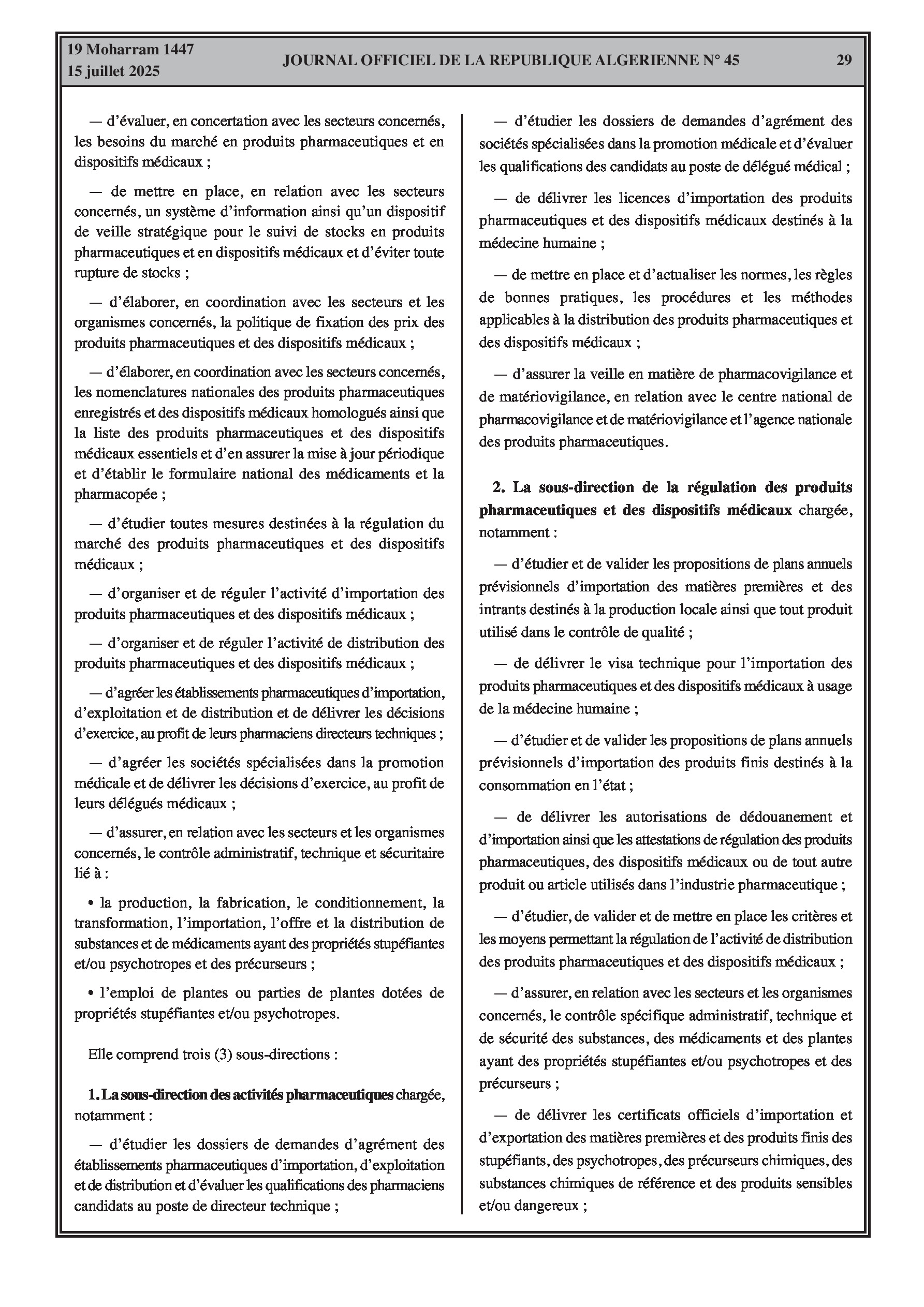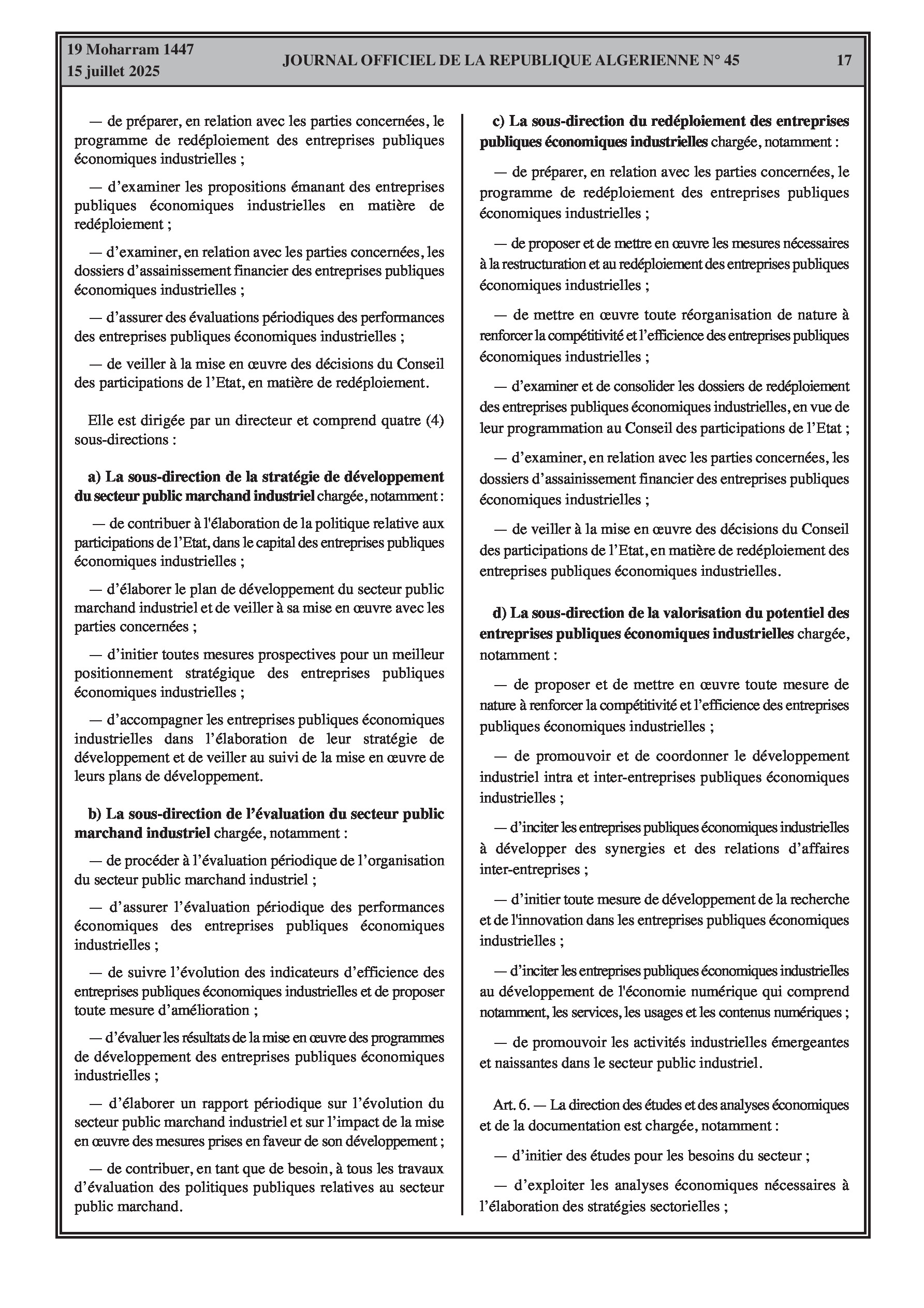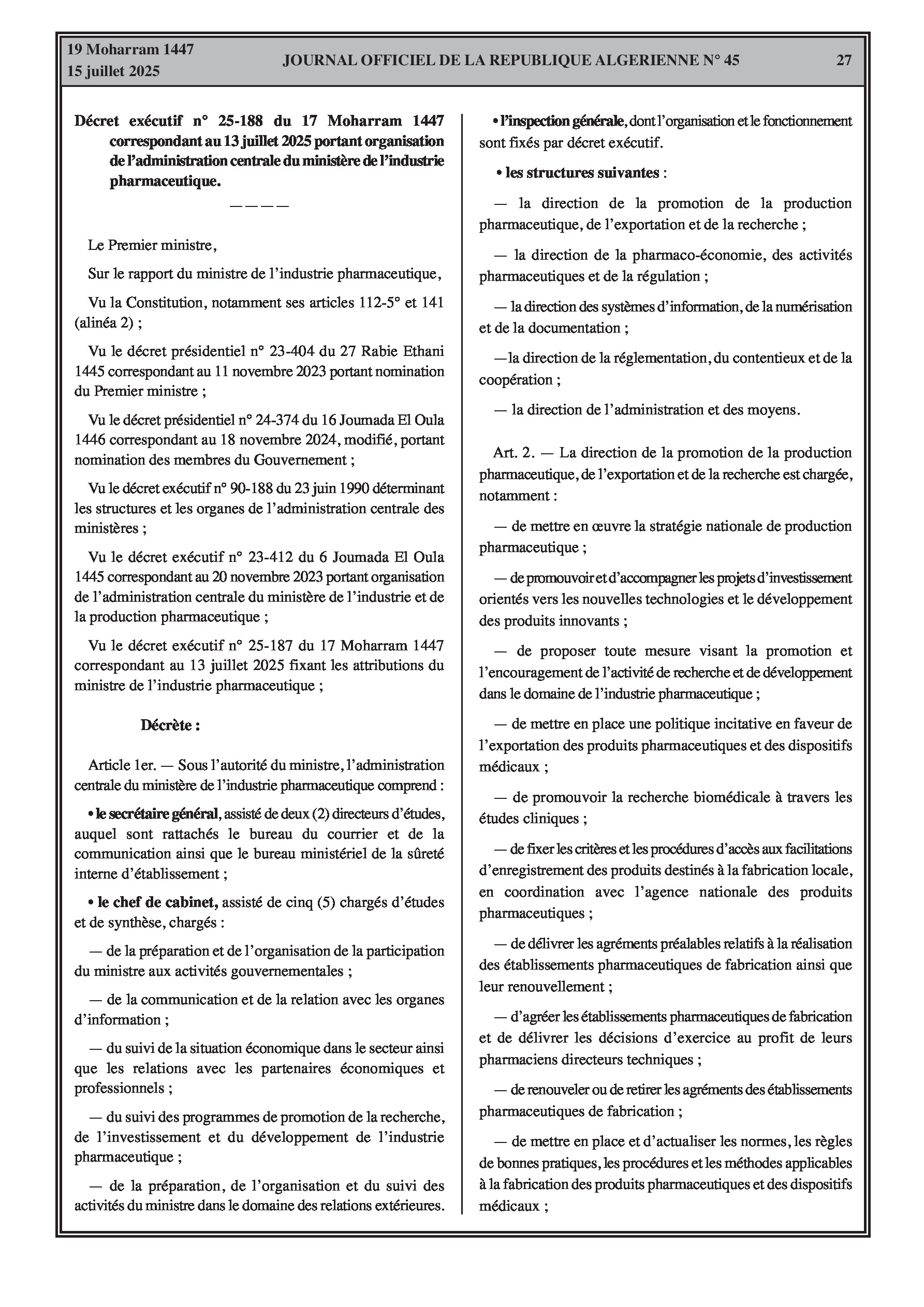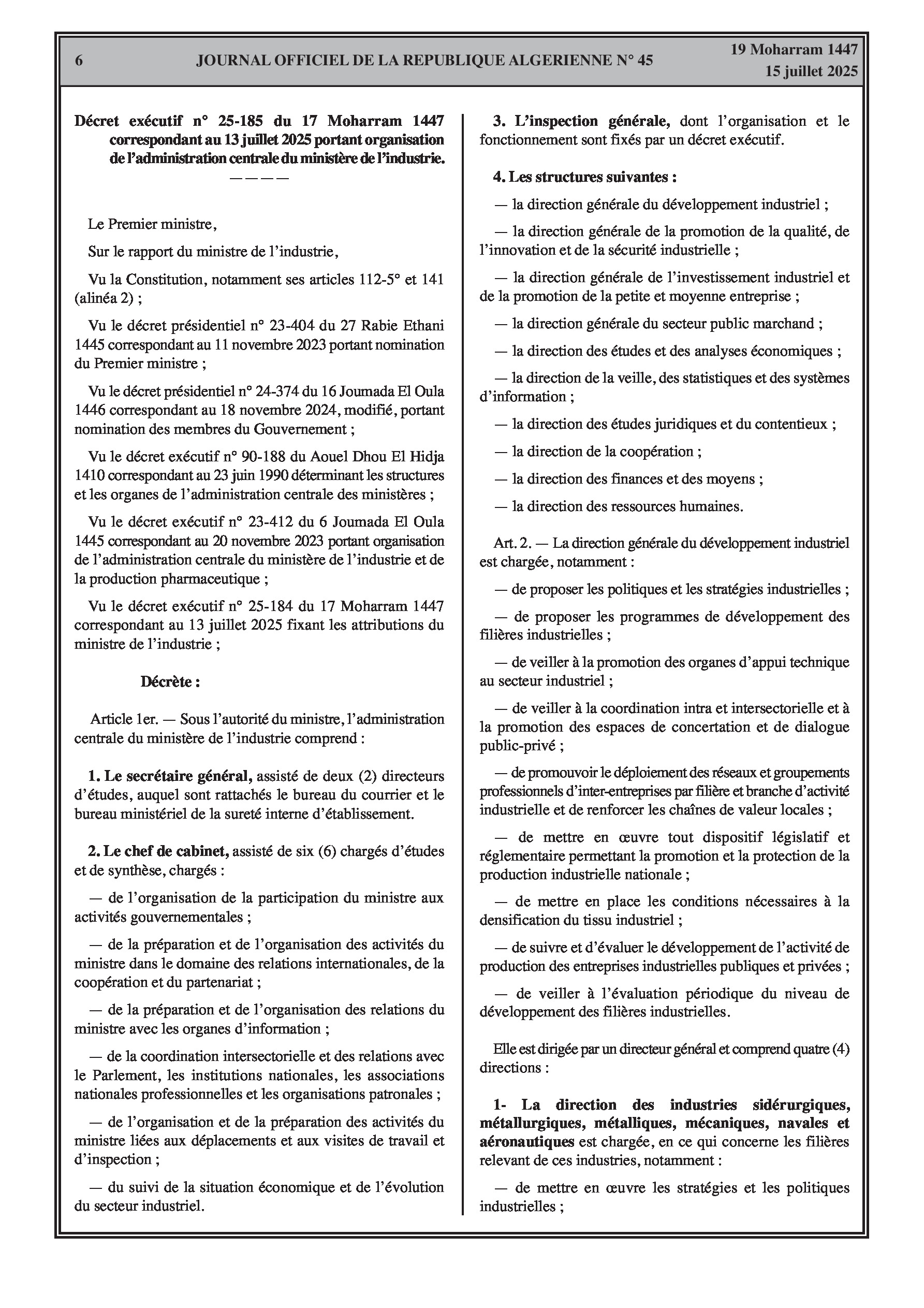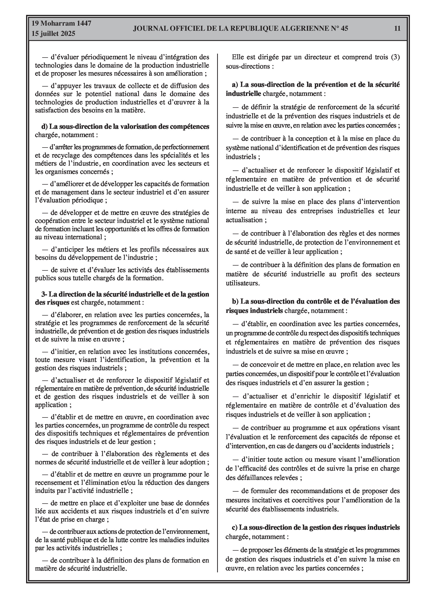 Réorganisation complète du ministère de l'Industrie suite à sa séparation du secteur de la production pharmaceutique. Les nouveaux textes définissent les missions et la structure administrative du ministère, en se concentrant sur le développement industriel, l'investissement et les PME.