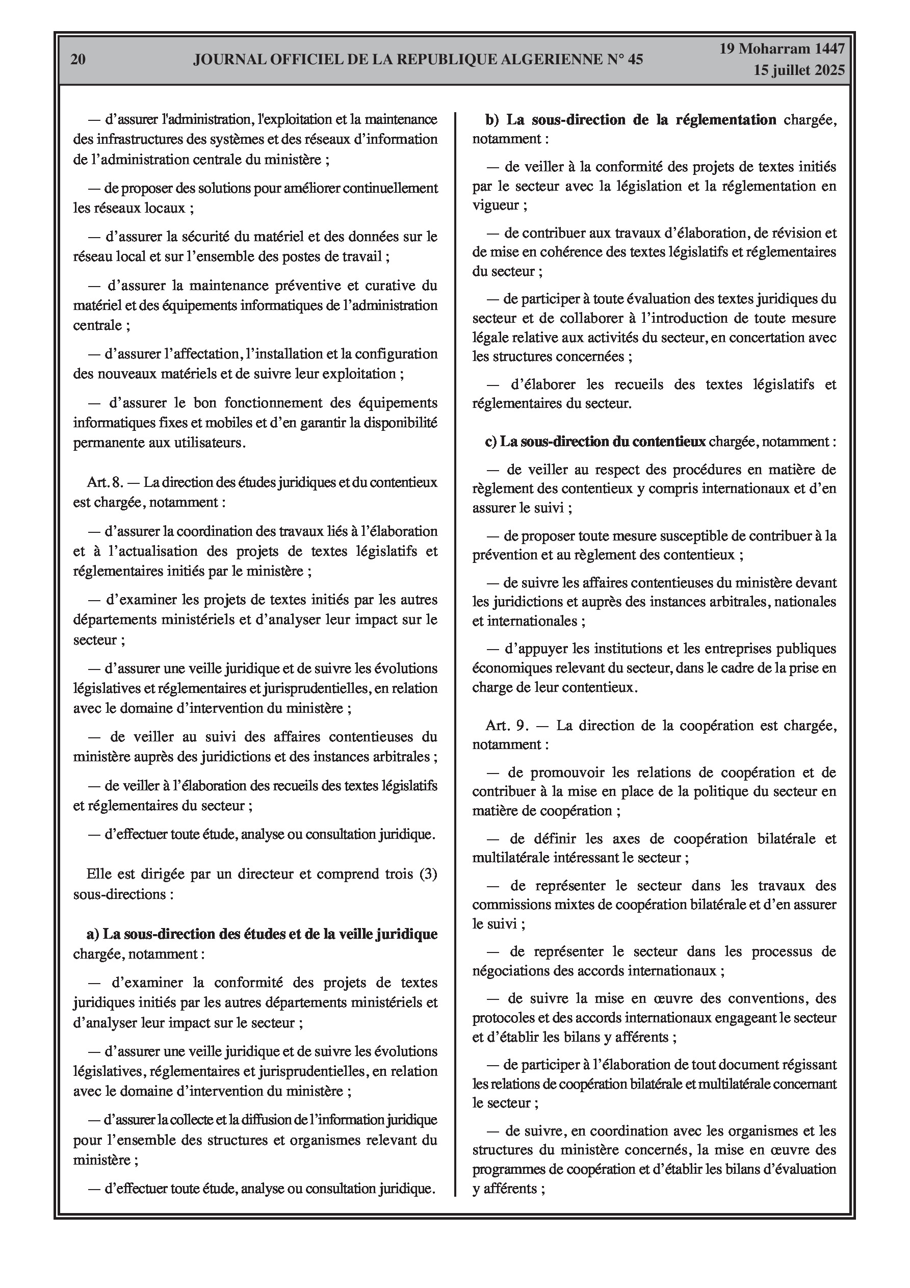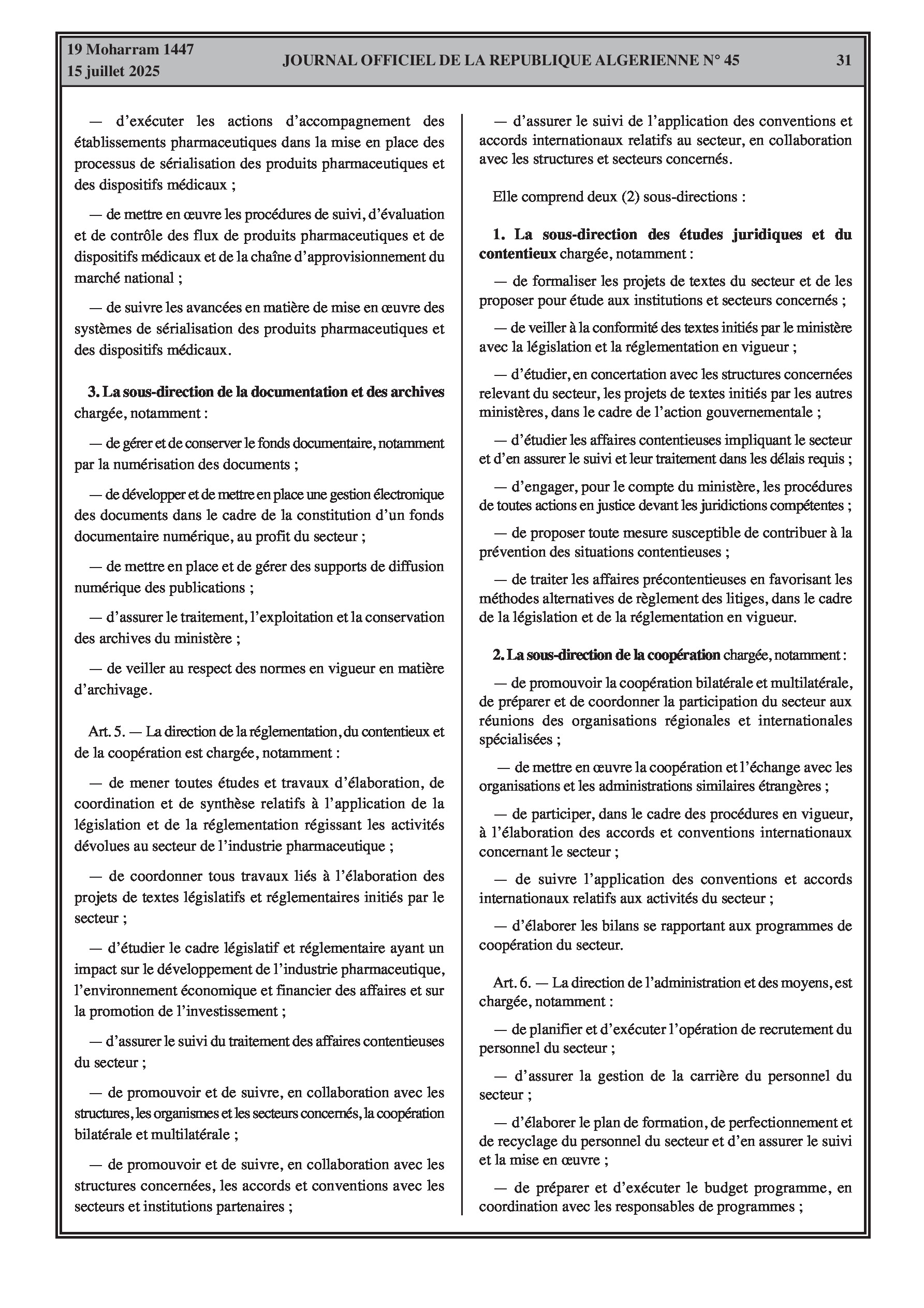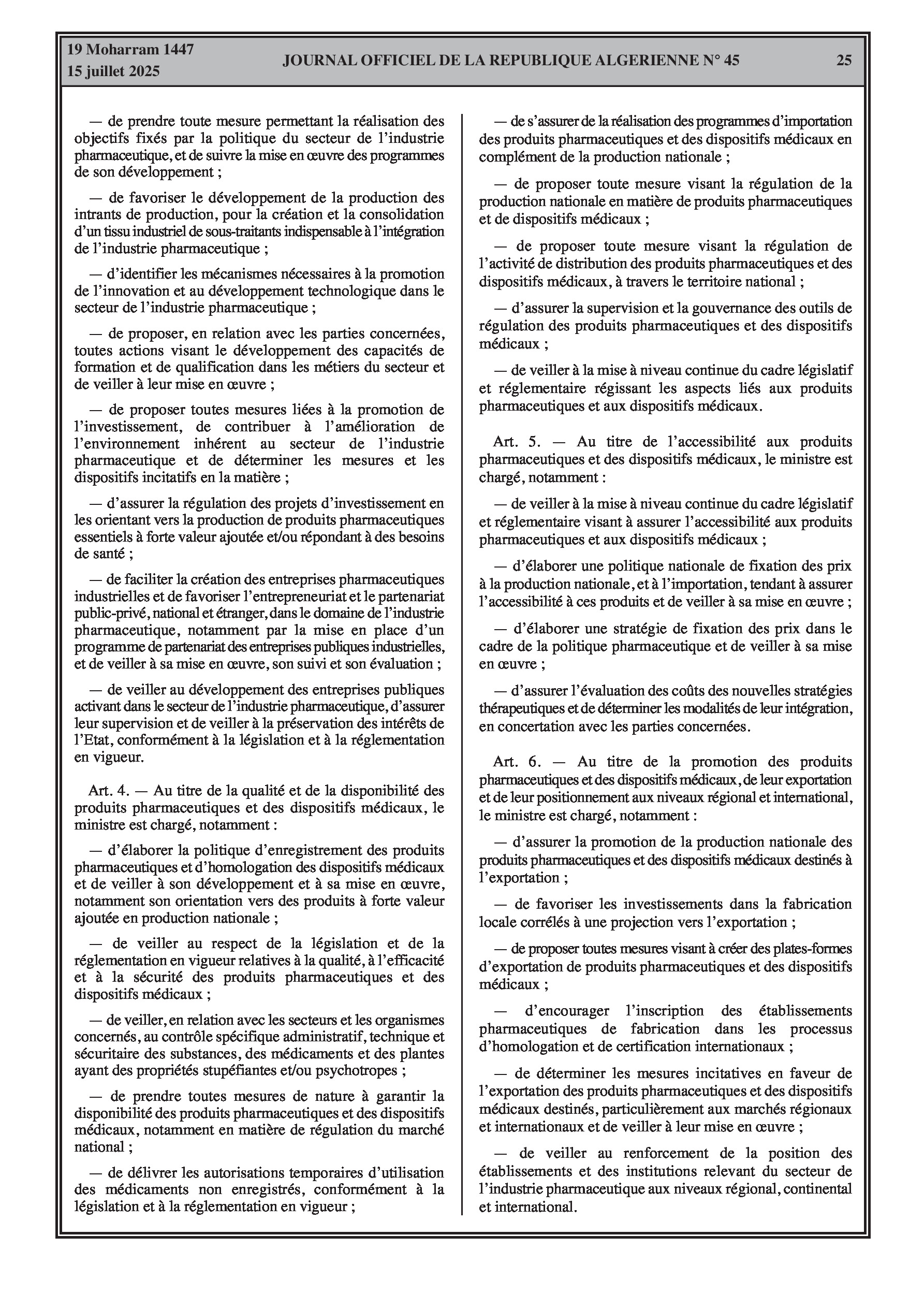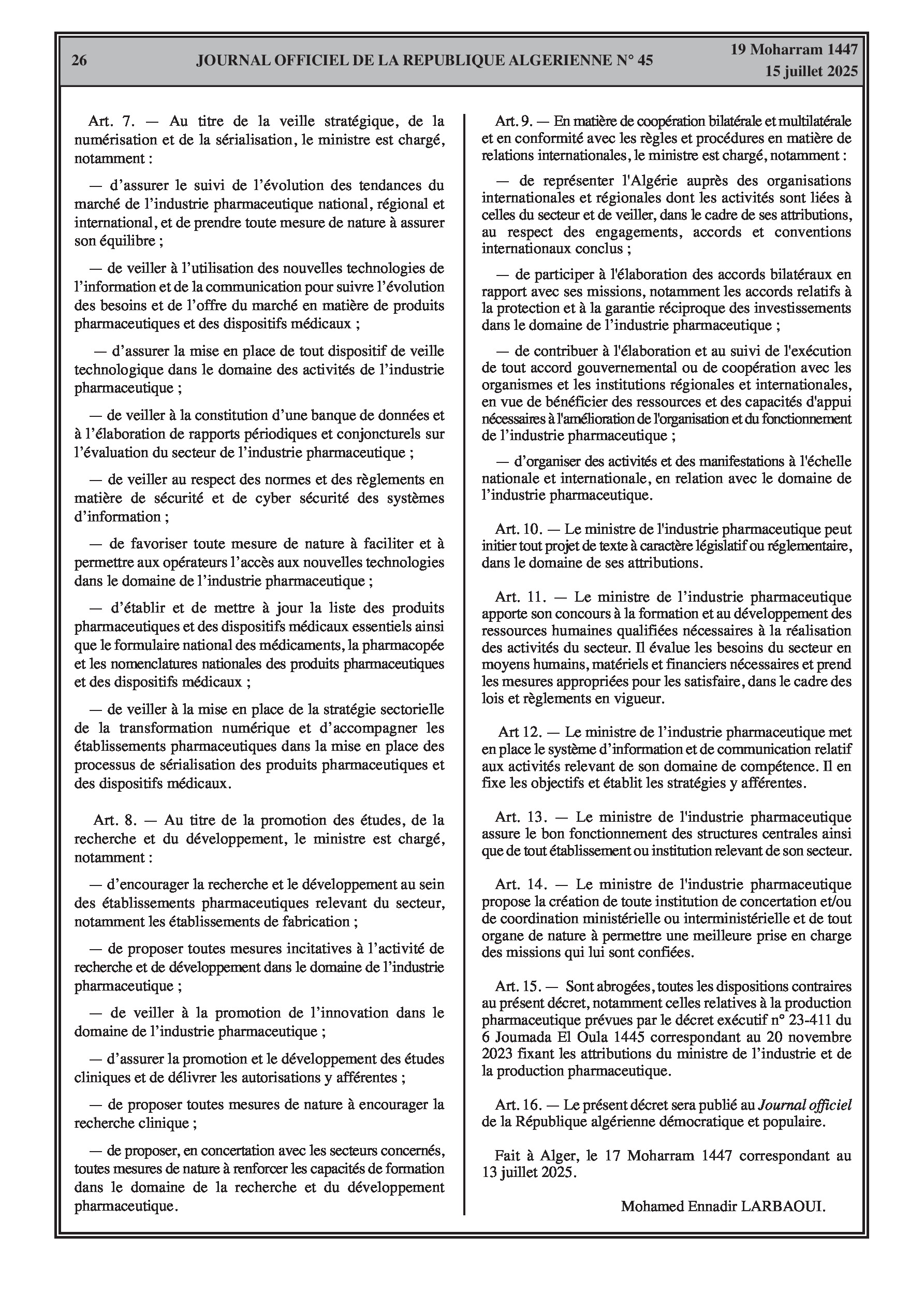 Réorganisation complète du ministère de l'Industrie suite à sa séparation du secteur de la production pharmaceutique. Les nouveaux textes définissent les missions et la structure administrative du ministère, en se concentrant sur le développement industriel, l'investissement et les PME.