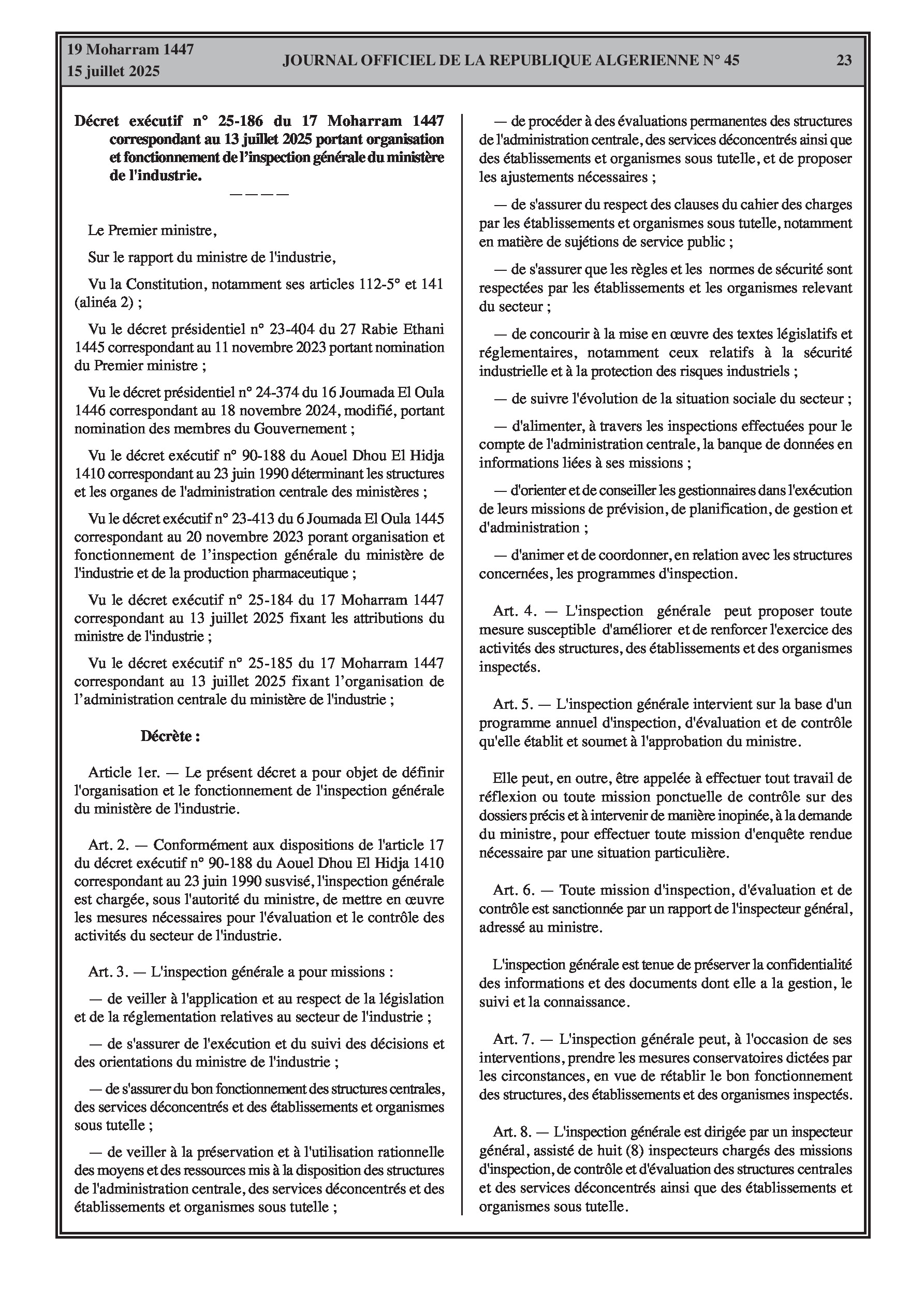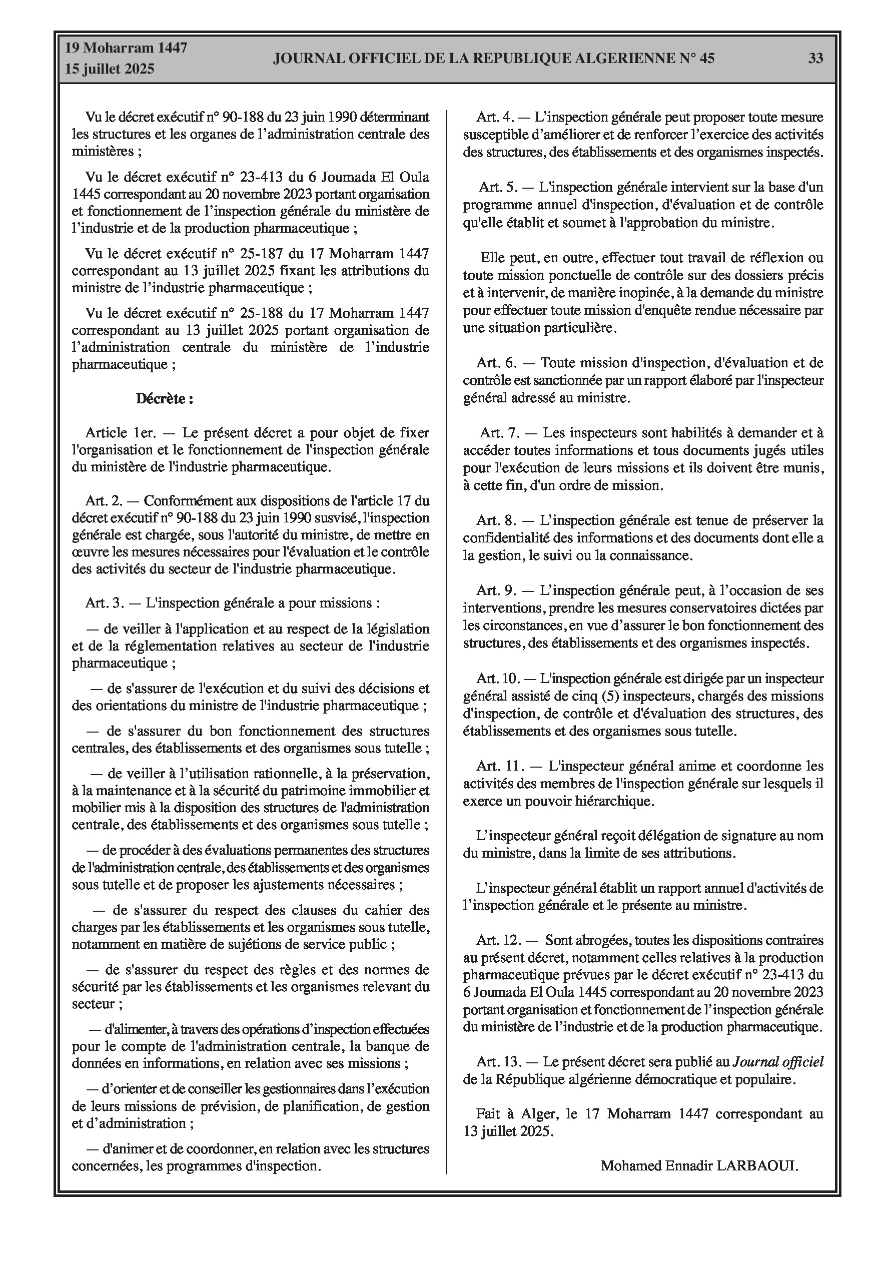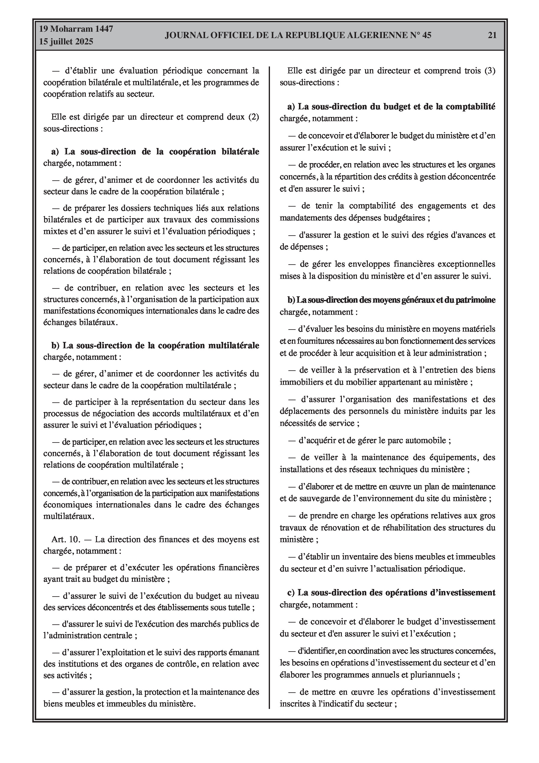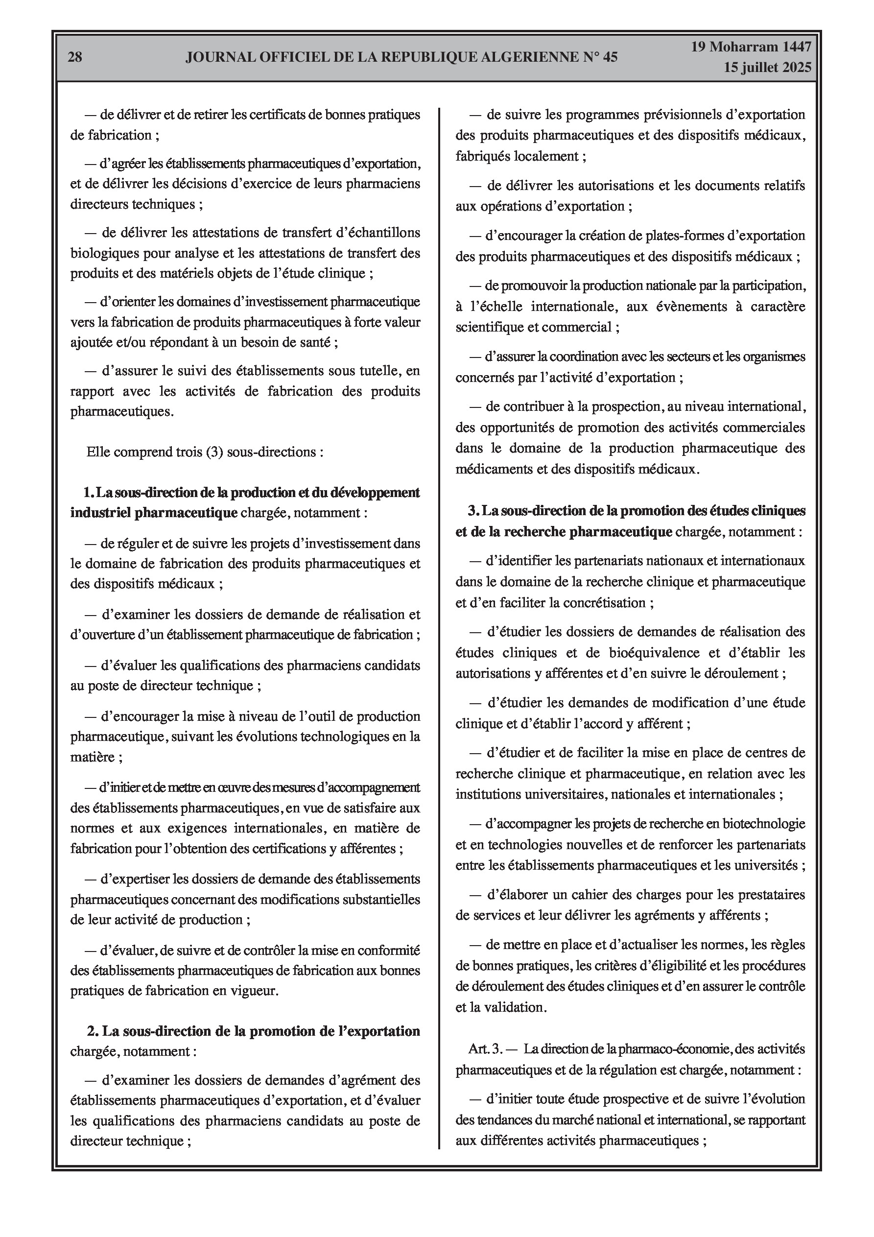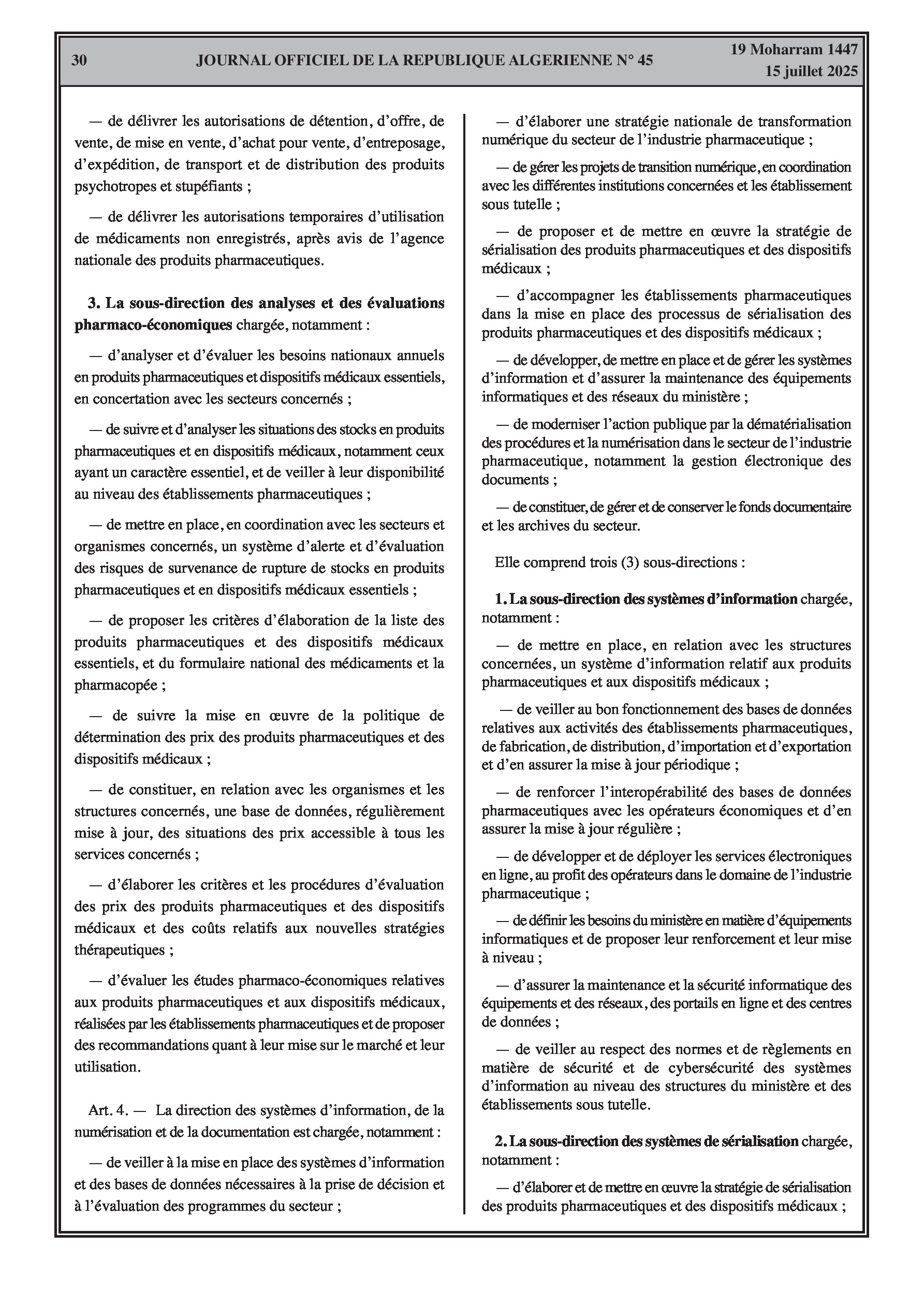 Réorganisation complète du ministère de l'Industrie suite à sa séparation du secteur de la production pharmaceutique. Les nouveaux textes définissent les missions et la structure administrative du ministère, en se concentrant sur le développement industriel, l'investissement et les PME.