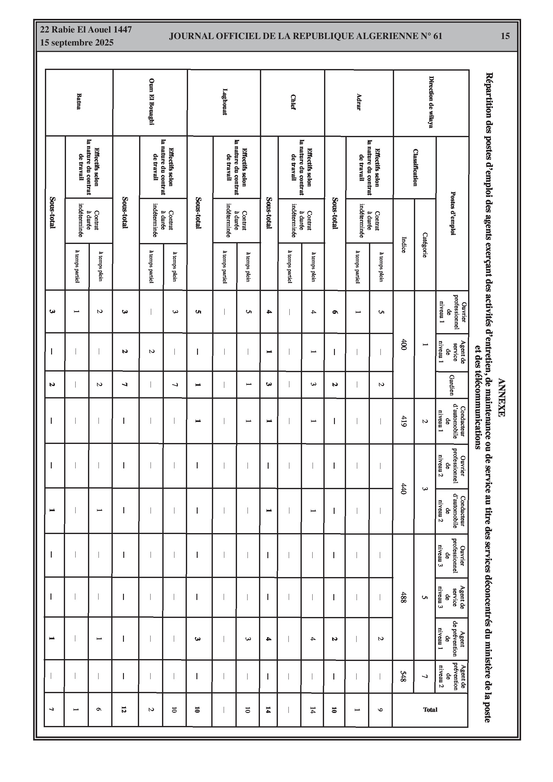 - Poste et Télécommunications : Modification de l'arrêté fixant les effectifs, la classification et la durée des contrats des agents contractuels dans les services déconcentrés du ministère.