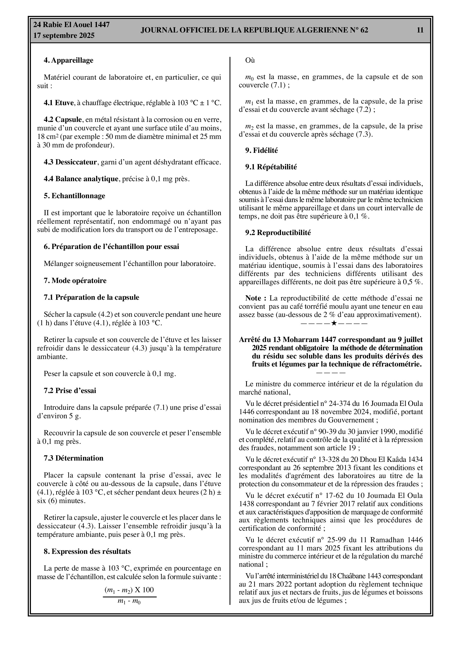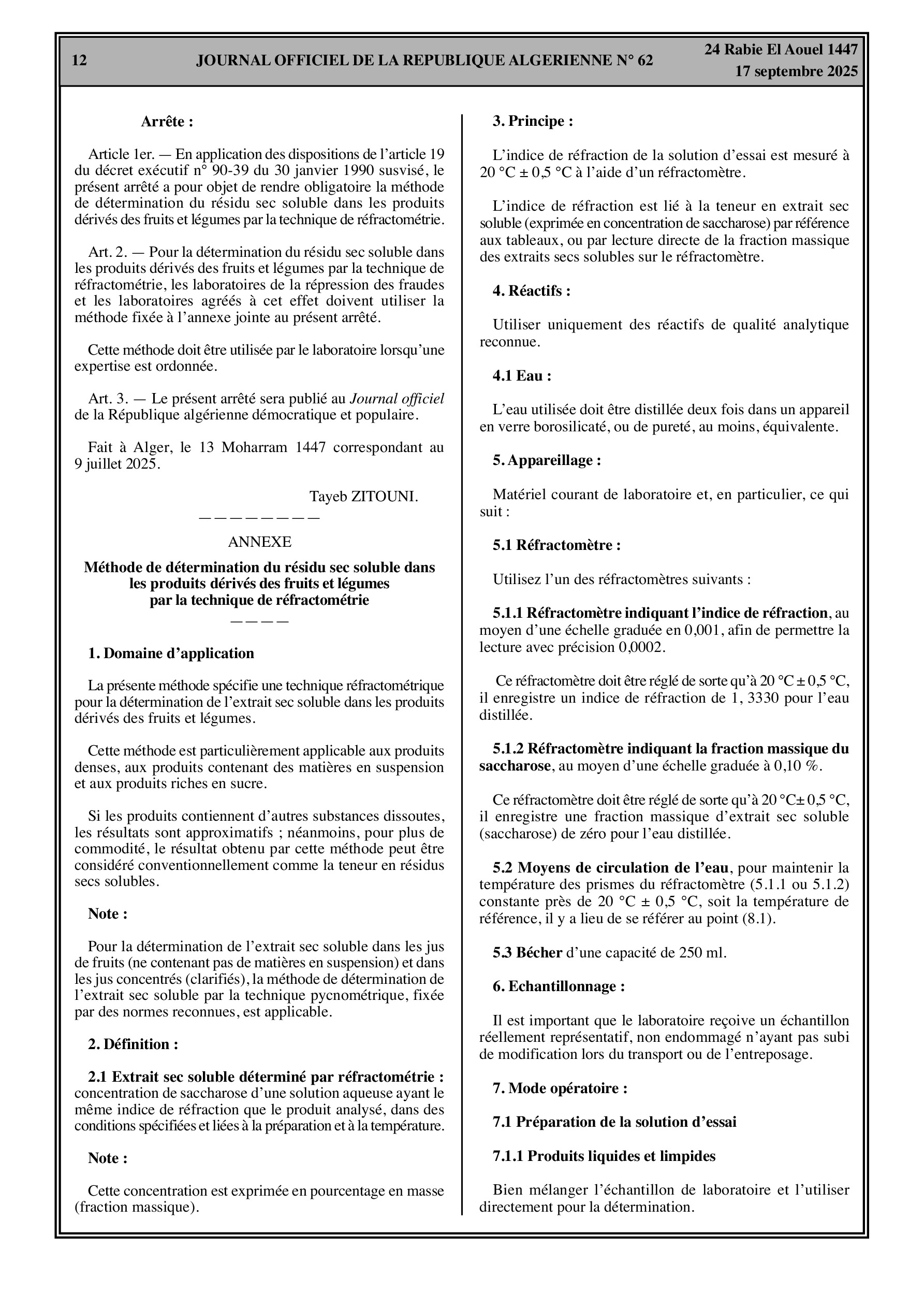 - Méthode obligatoire pour la détermination du résidu sec soluble dans les produits dérivés des fruits et légumes.