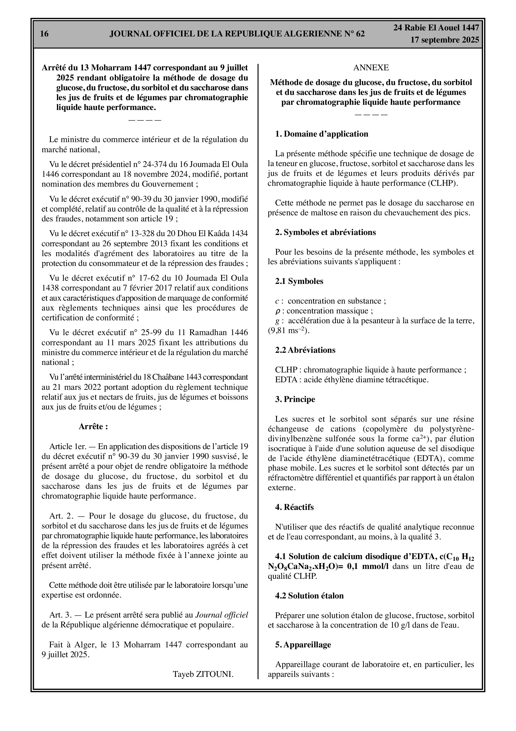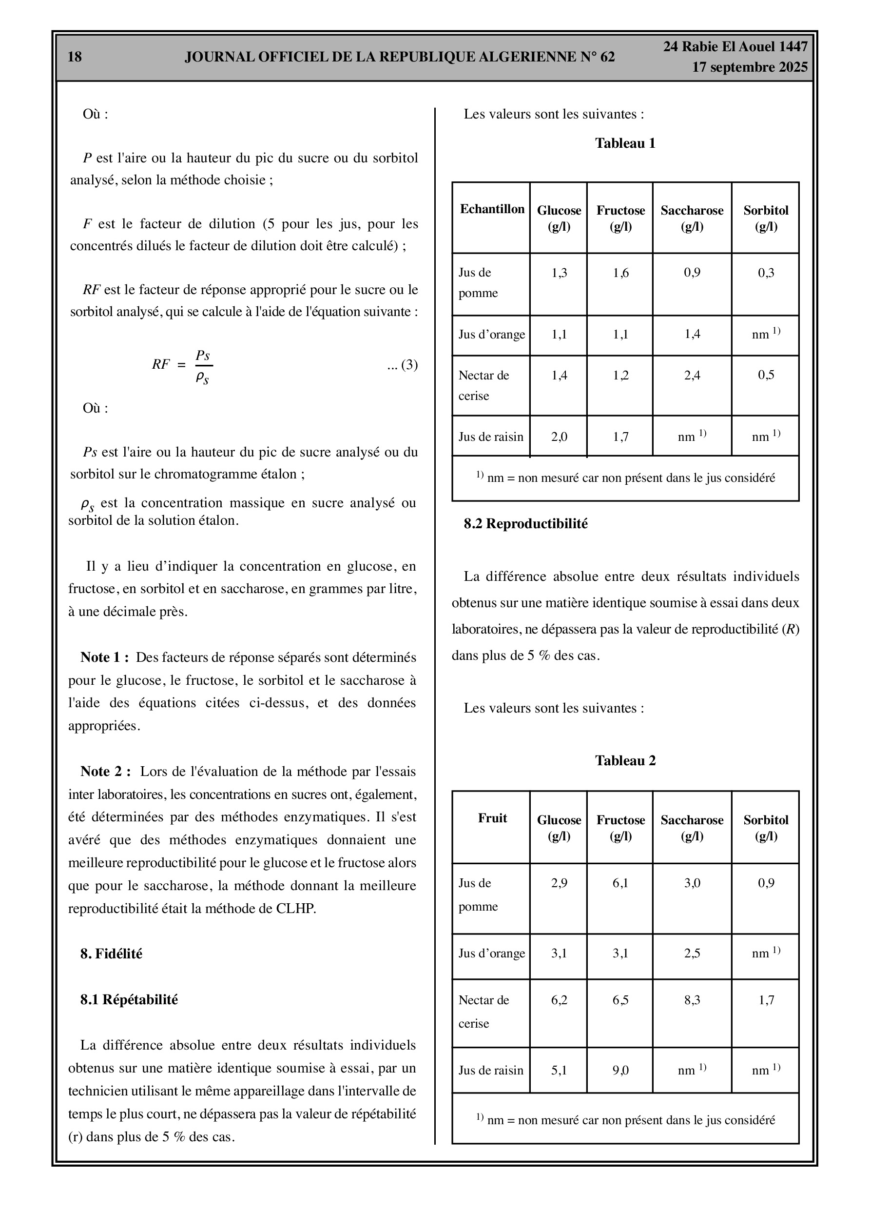 - Méthode obligatoire pour le dosage du glucose, fructose, sorbitol et saccharose dans les jus de fruits et de légumes.