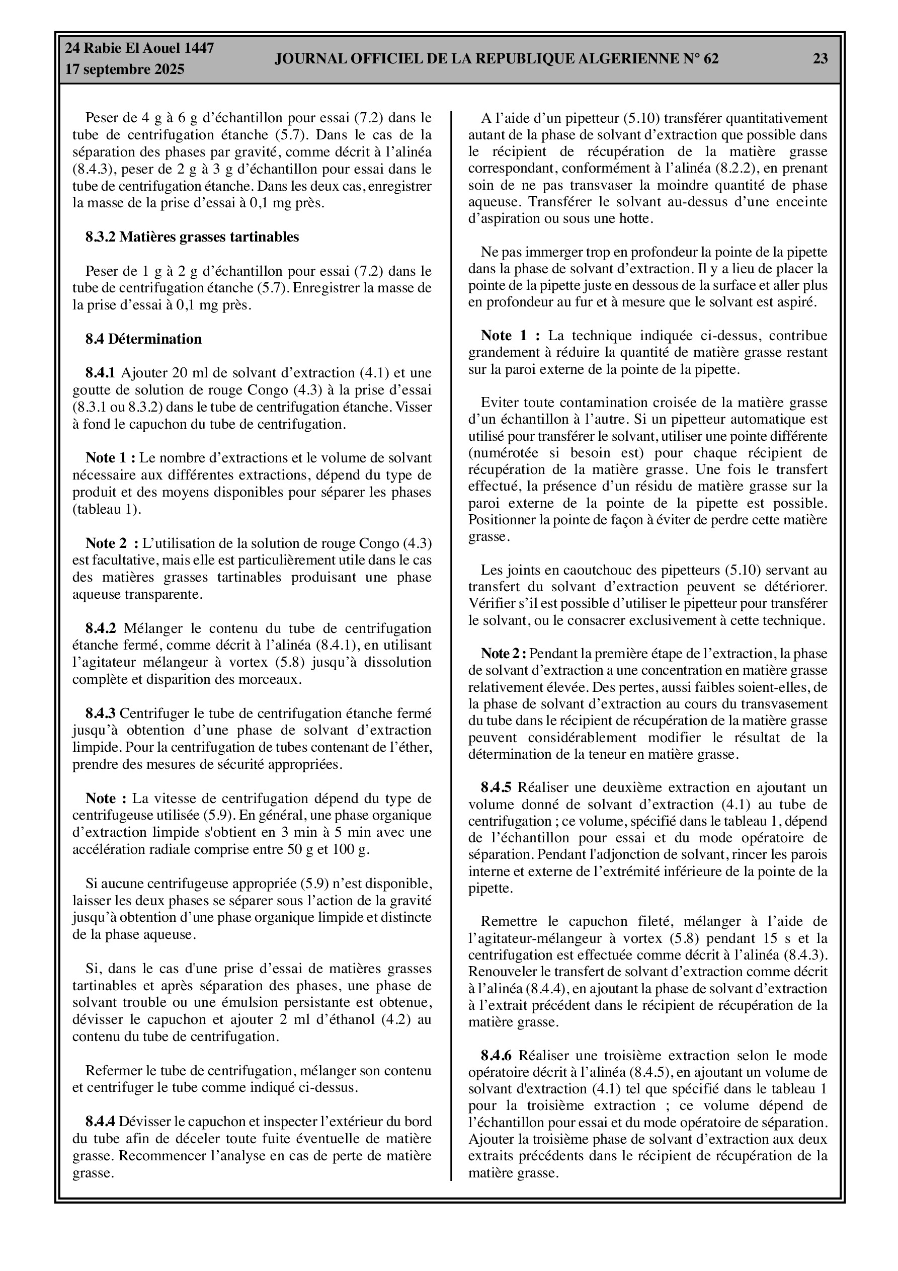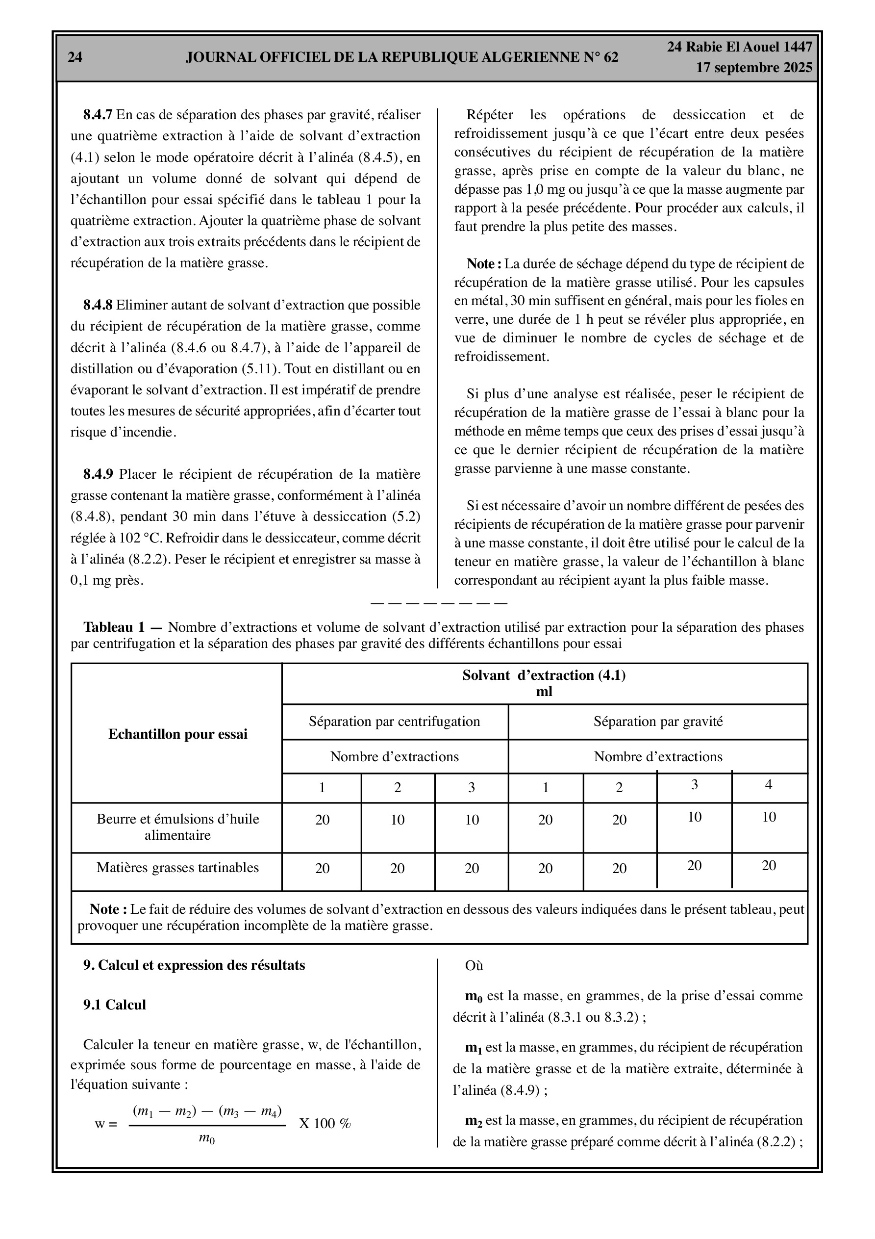 - Méthode obligatoire pour la détermination de la teneur en matière grasse du beurre, des émulsions d'huile alimentaire et des matières grasses tartinables.