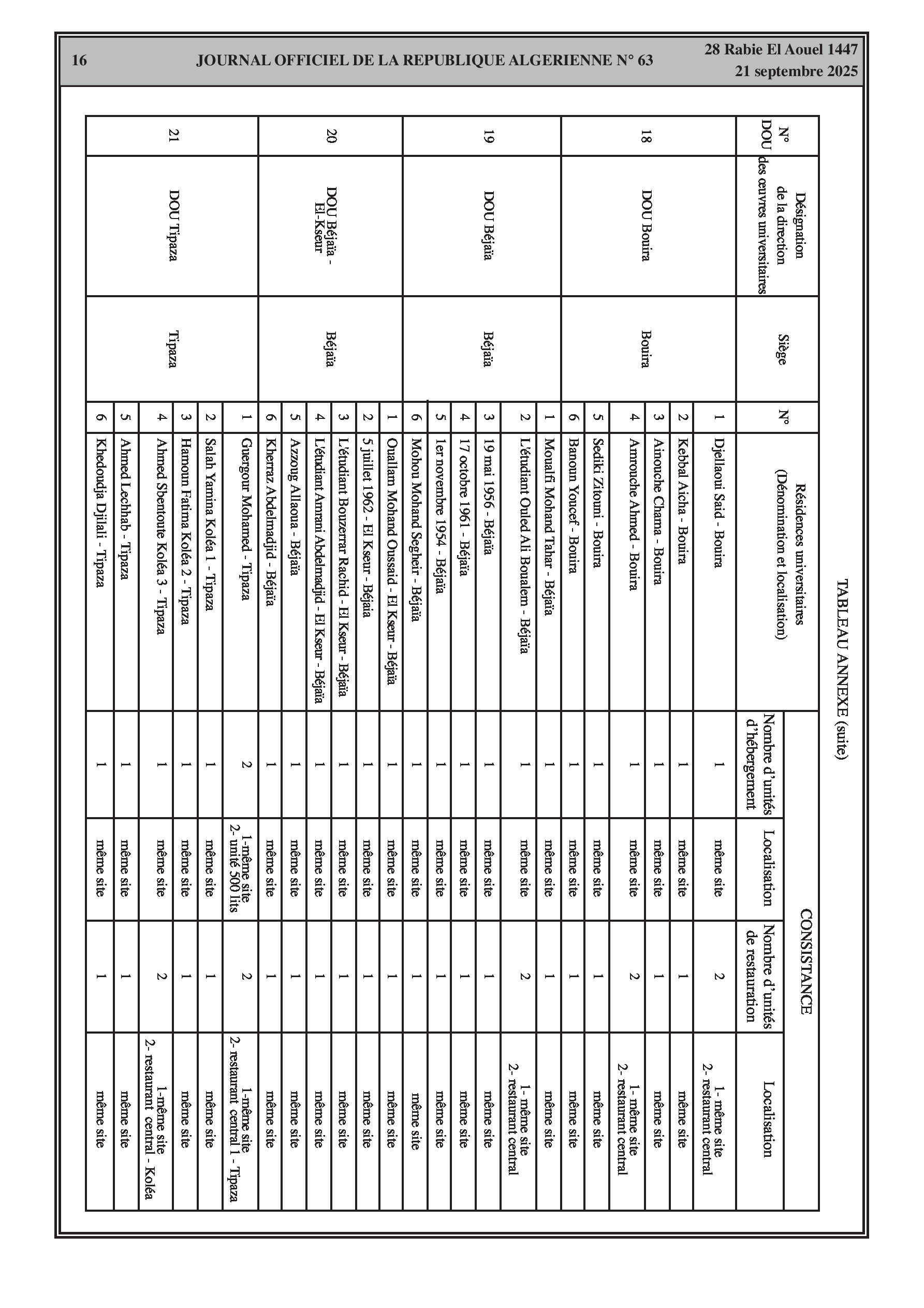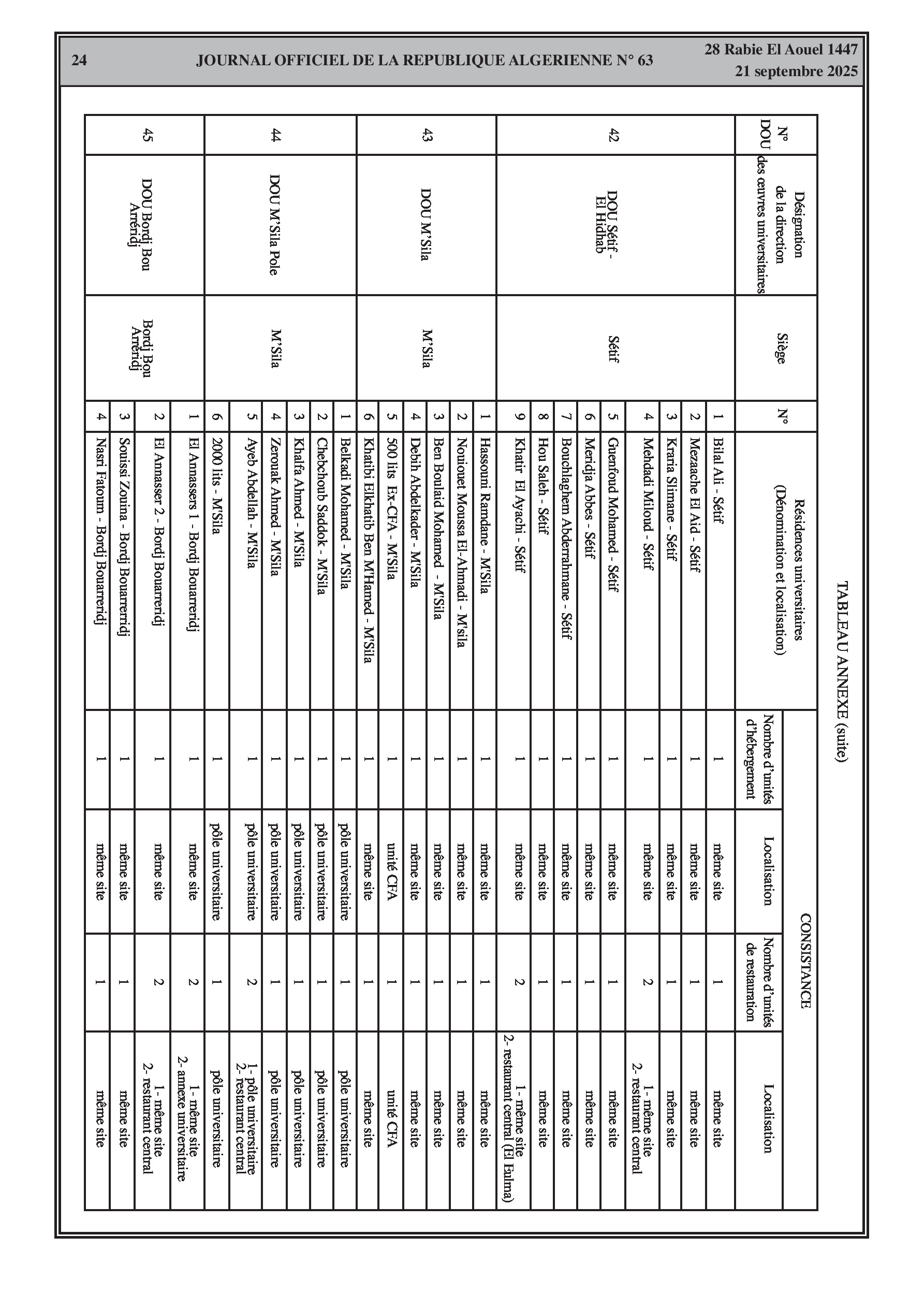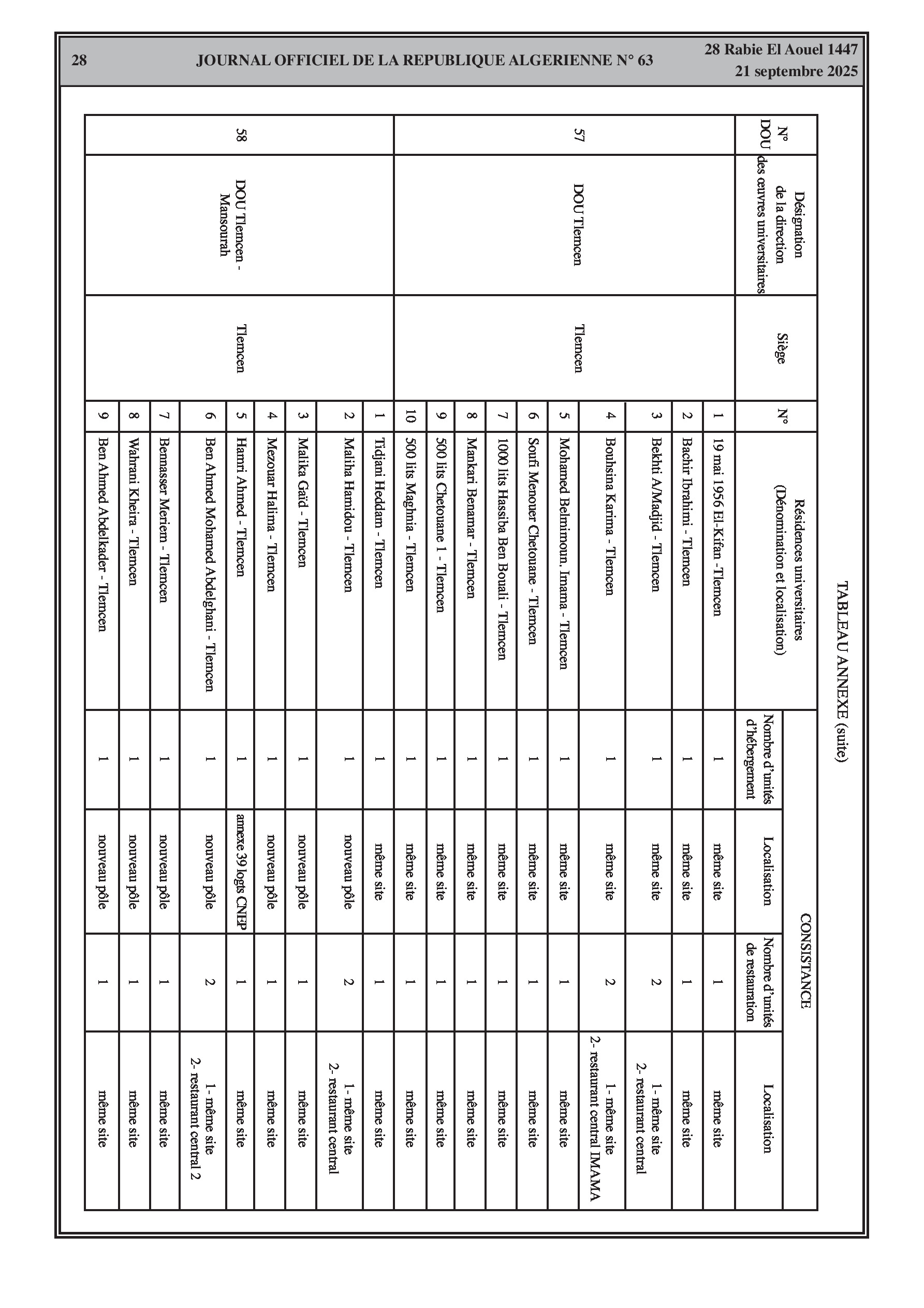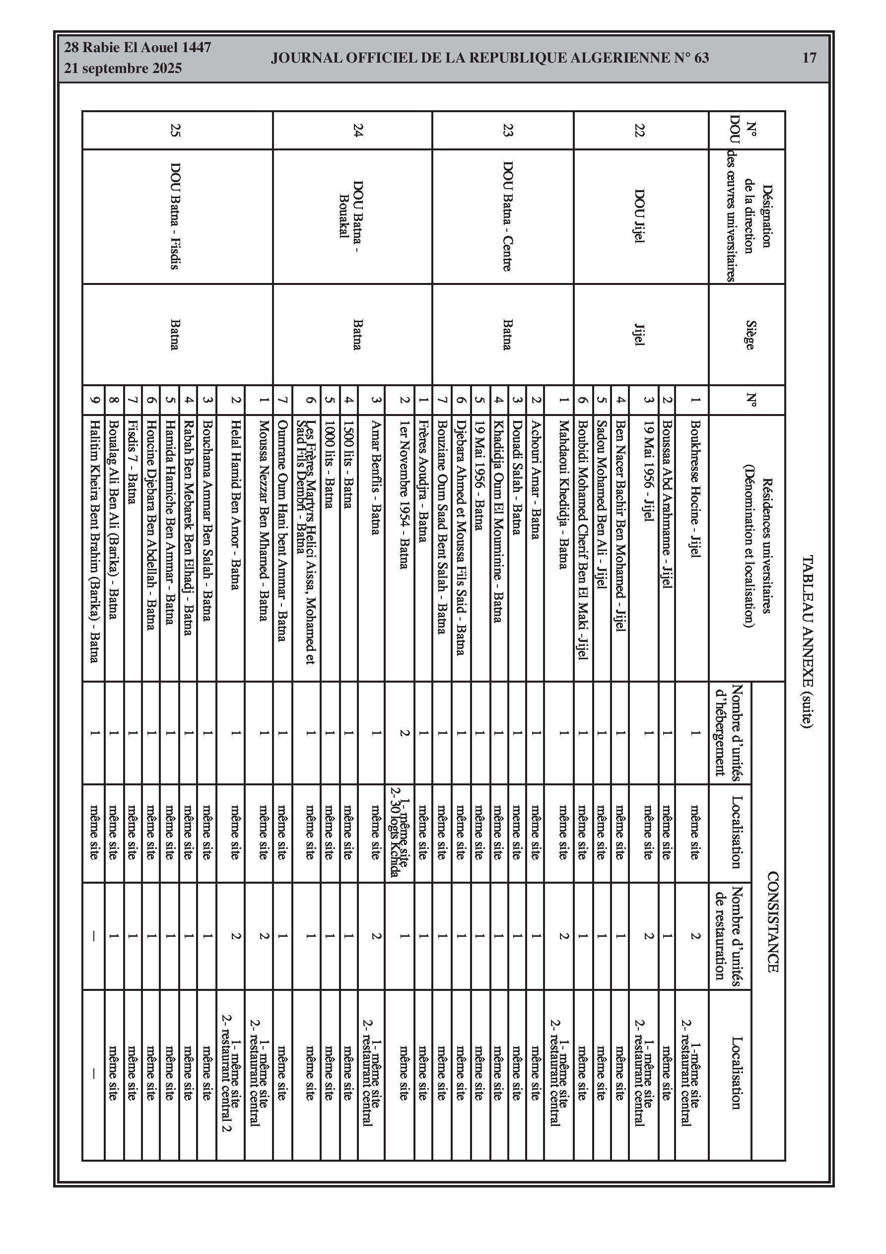 Ajout de cinq (5) nouvelles résidences universitaires et cinq (5) restaurants centraux au niveau national.