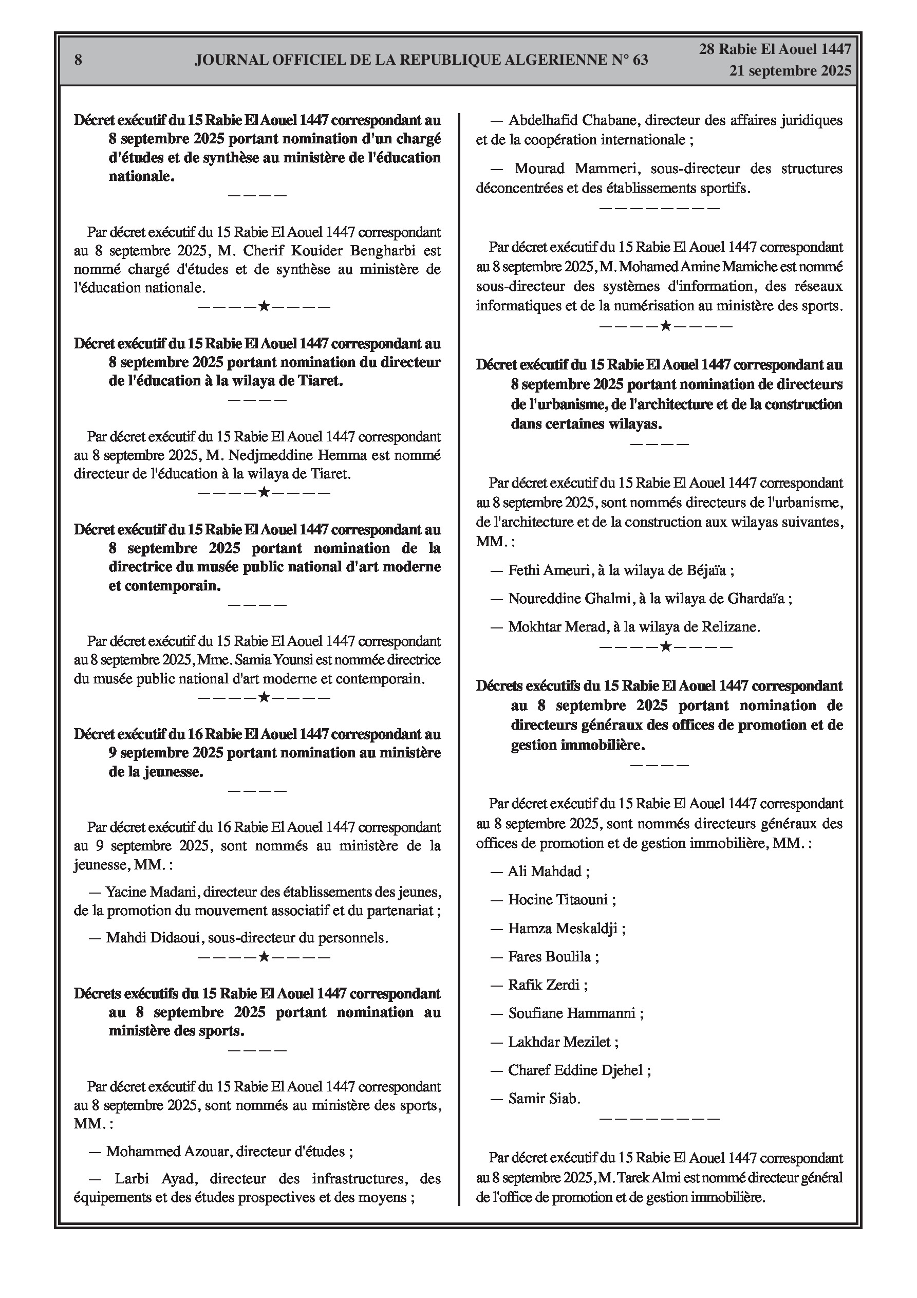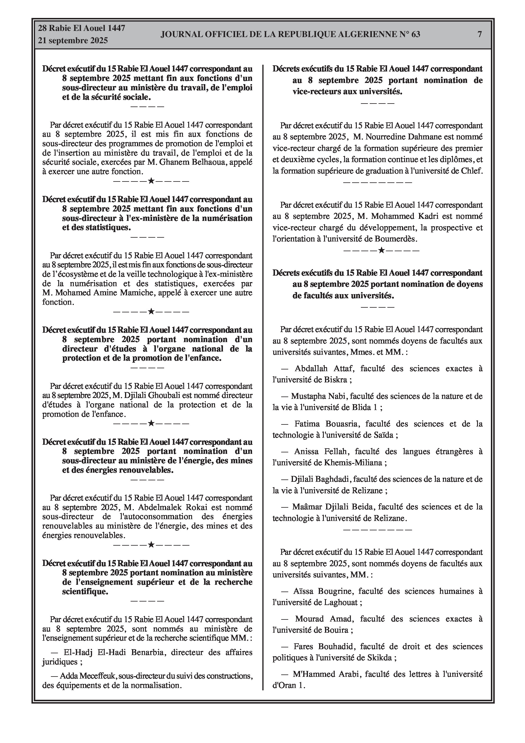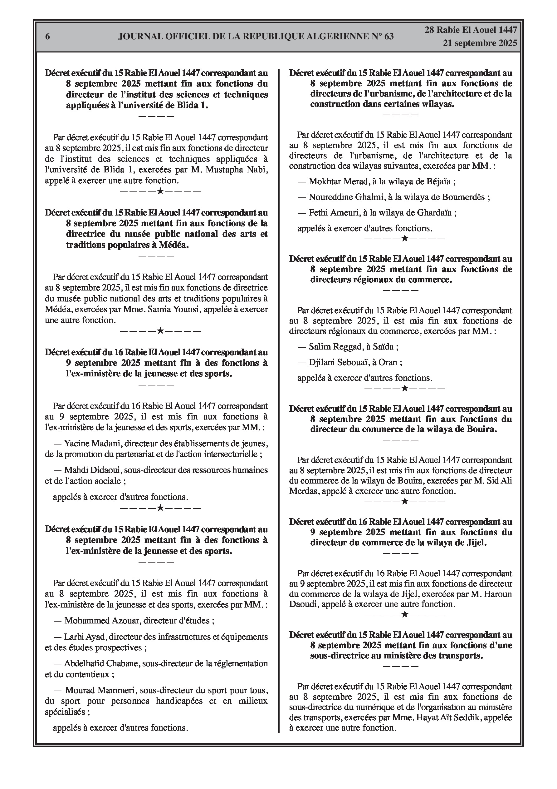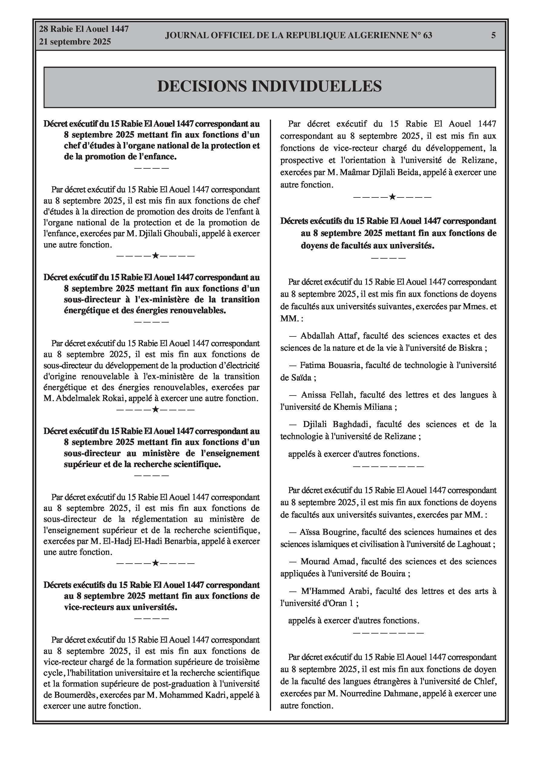 Une série de décrets exécutifs officialise de nombreuses fins de fonctions et nominations de hauts responsables dans divers secteurs gouvernementaux.