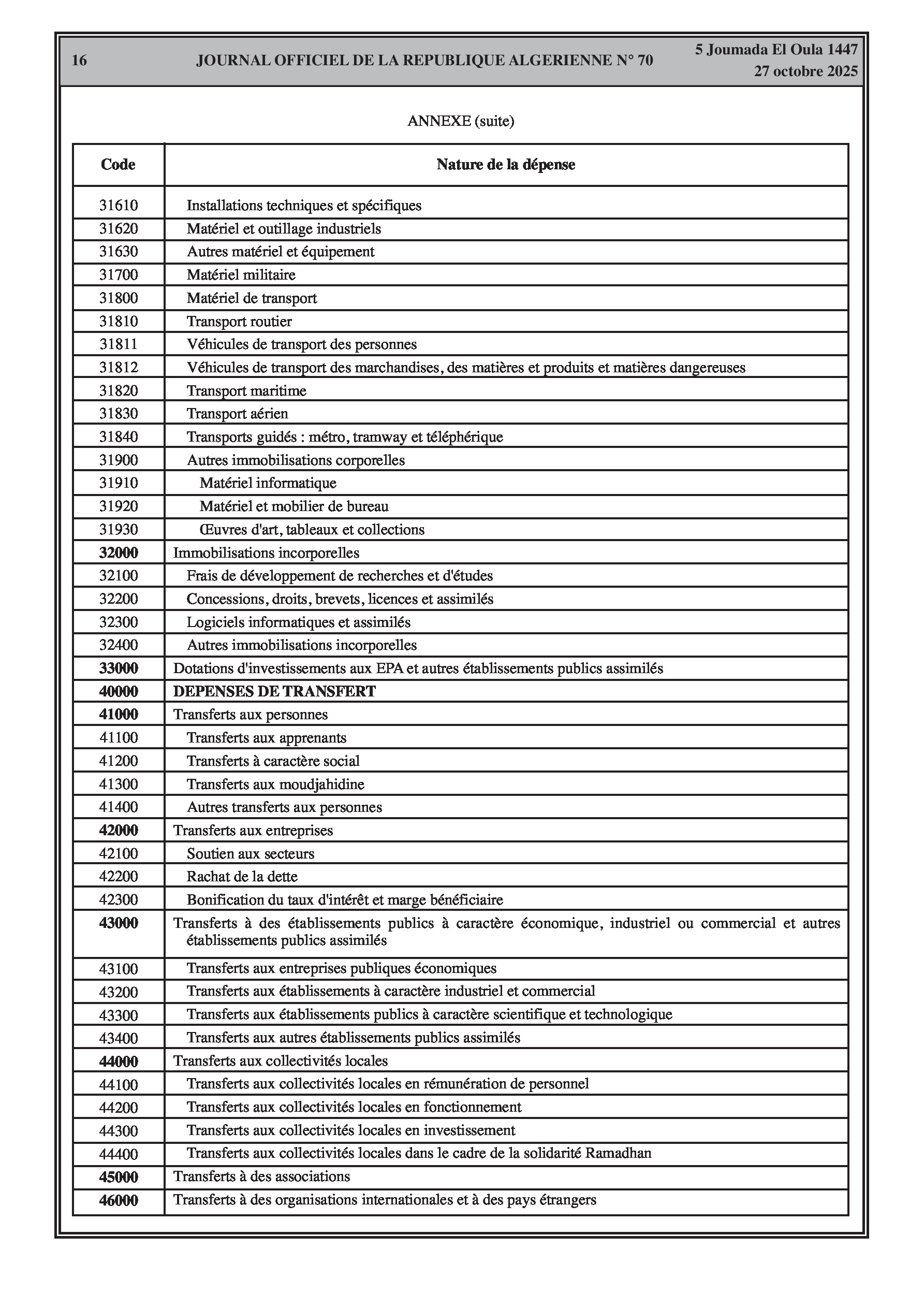 Des décrets présidentiels autorisent des transferts de crédits pour financer des projets d'infrastructures routières et ferroviaires. Un arrêté clé du ministère des Finances détaille la nouvelle classification économique et la codification des charges budgétaires de l'État.