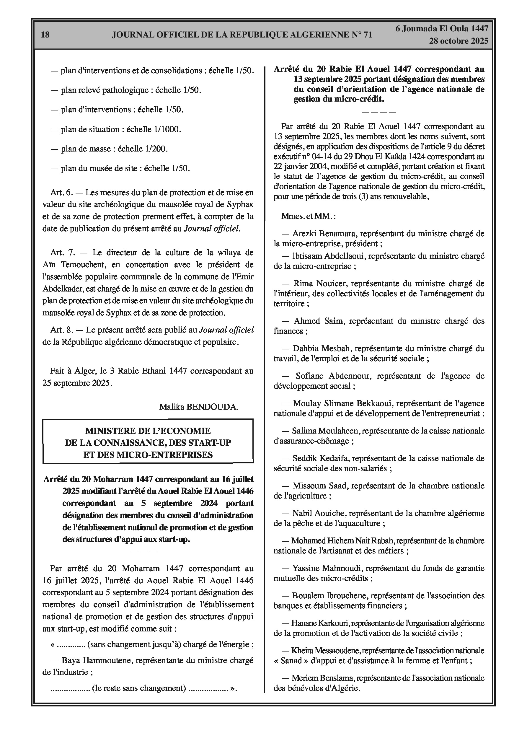 - Désignation des membres du conseil d'orientation de l'Agence Nationale de Gestion du Micro-crédit.