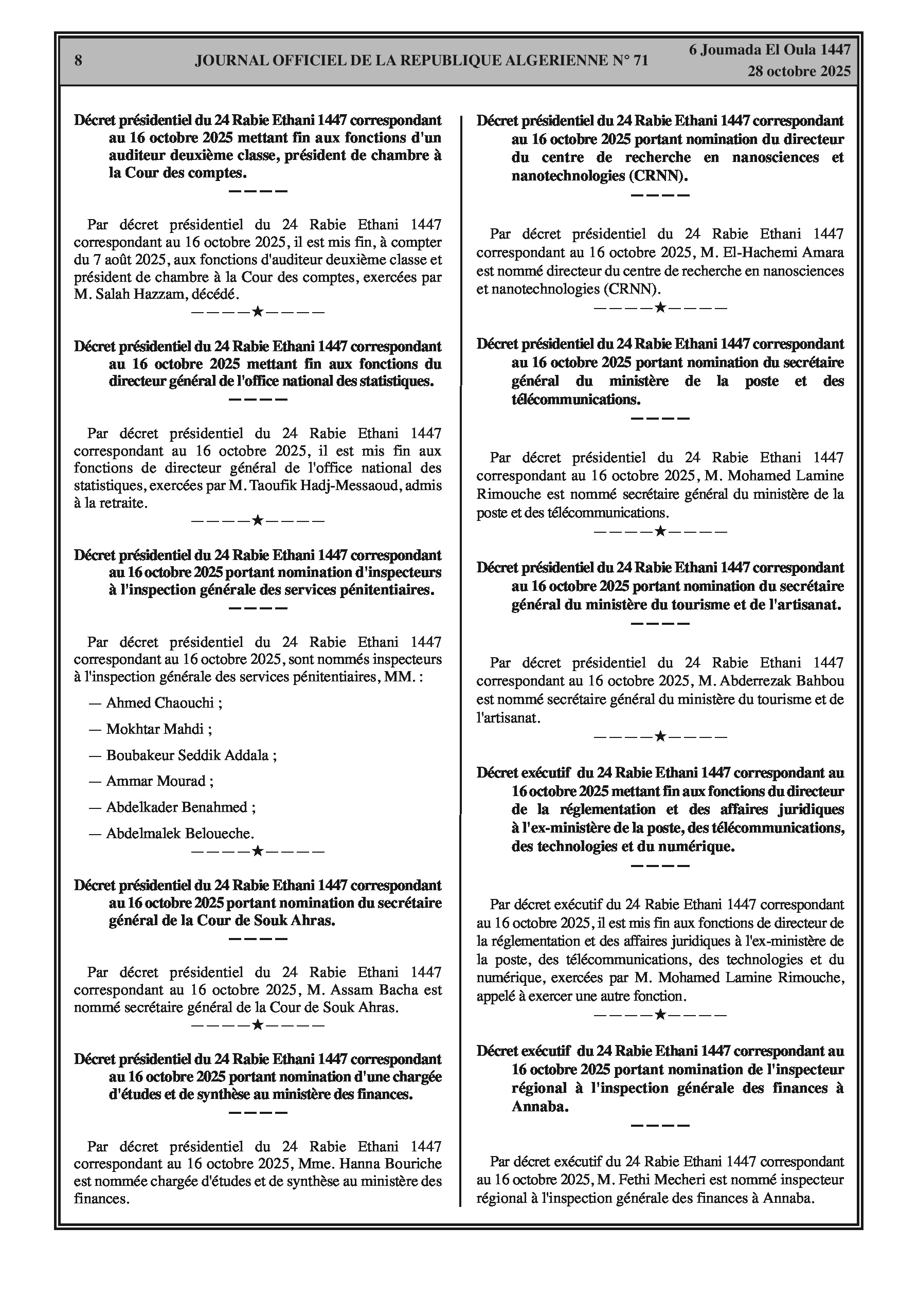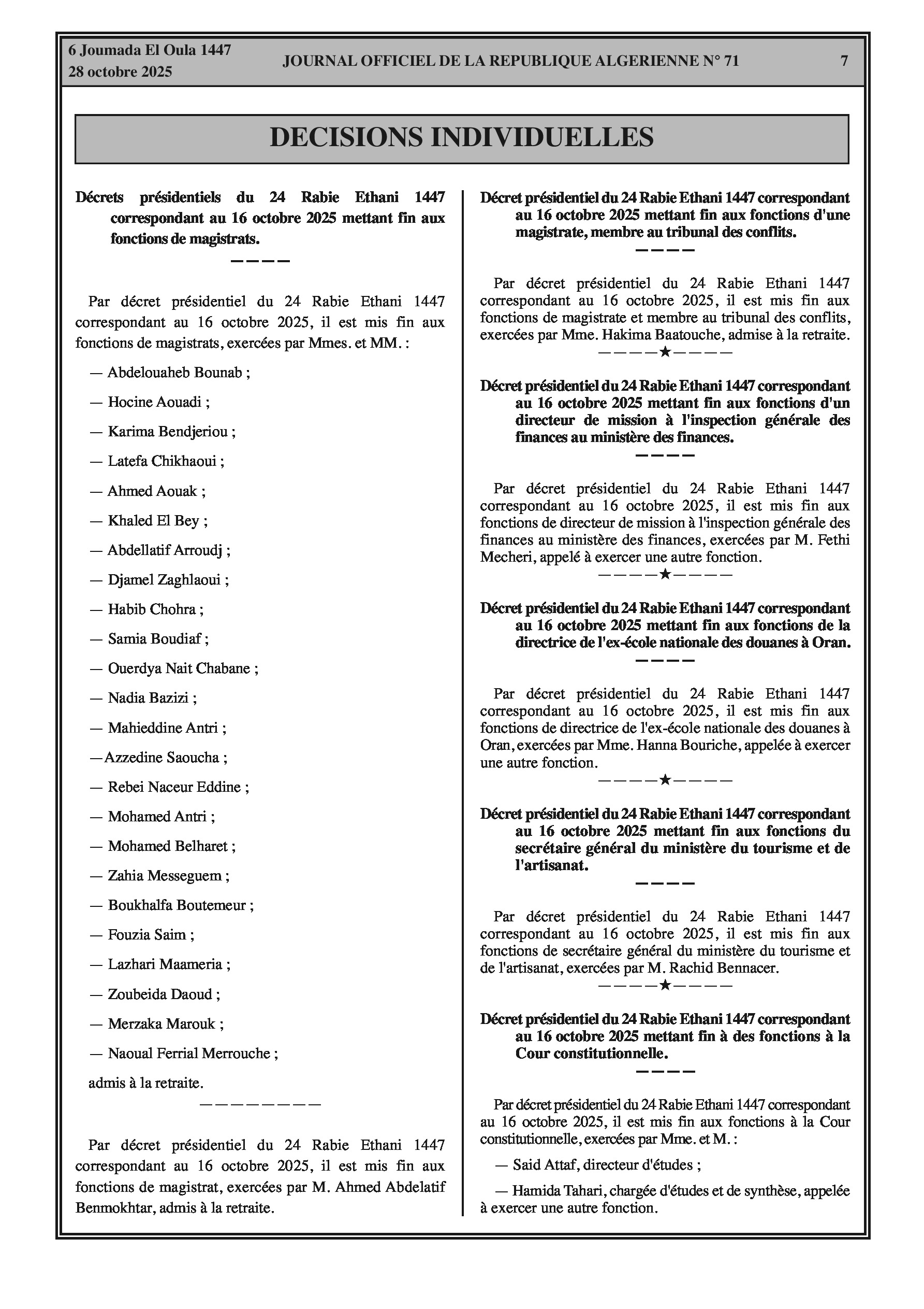 - Le numéro inclut également de nombreuses décisions de fin de fonctions et de nominations à de hauts postes dans la magistrature et les ministères.