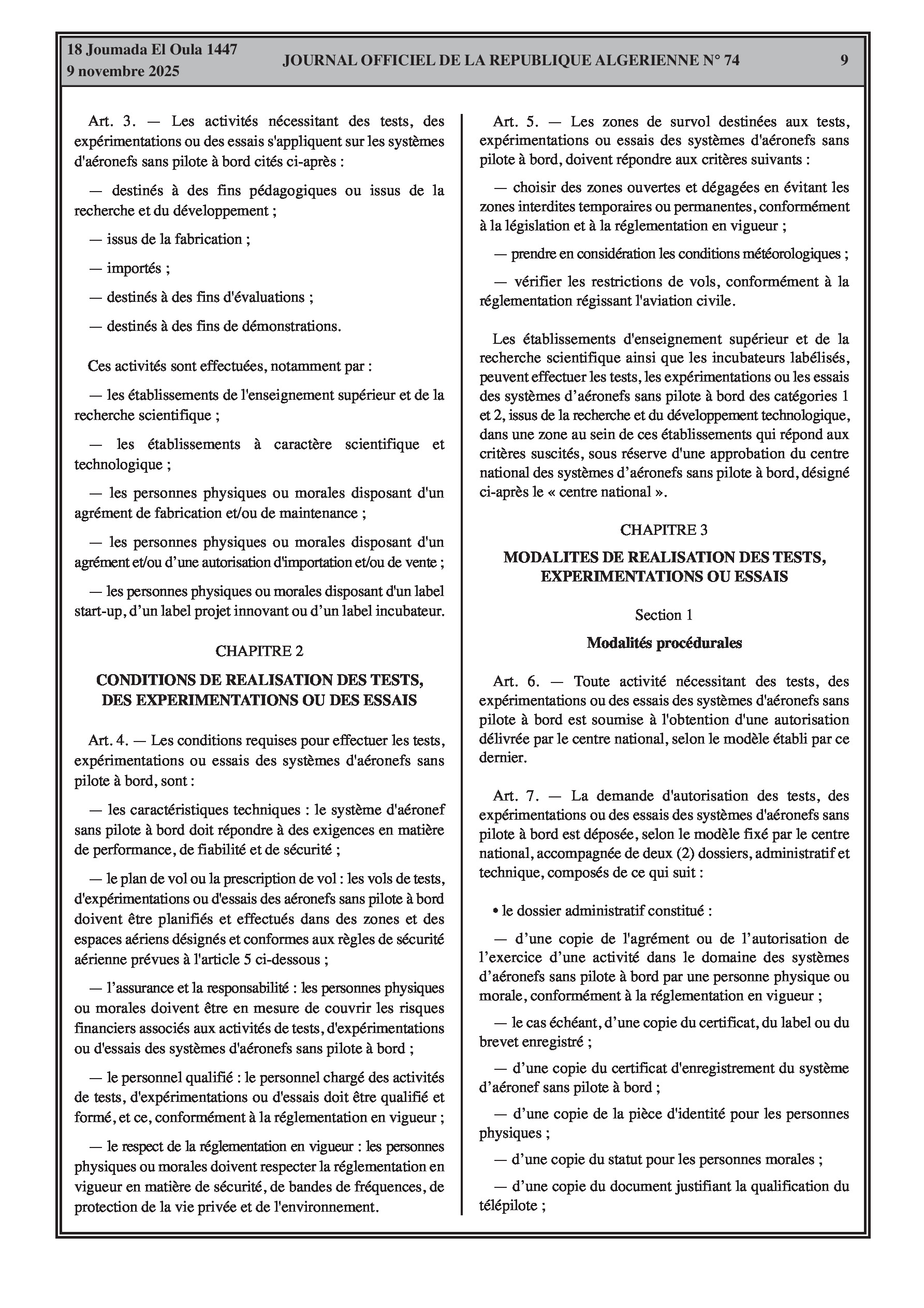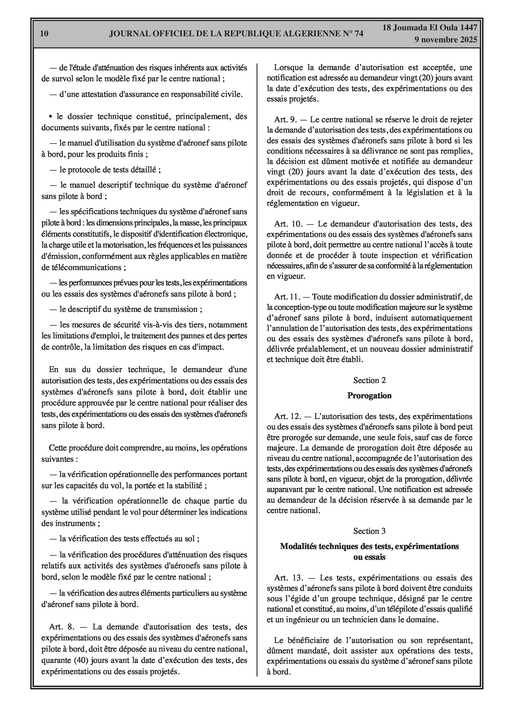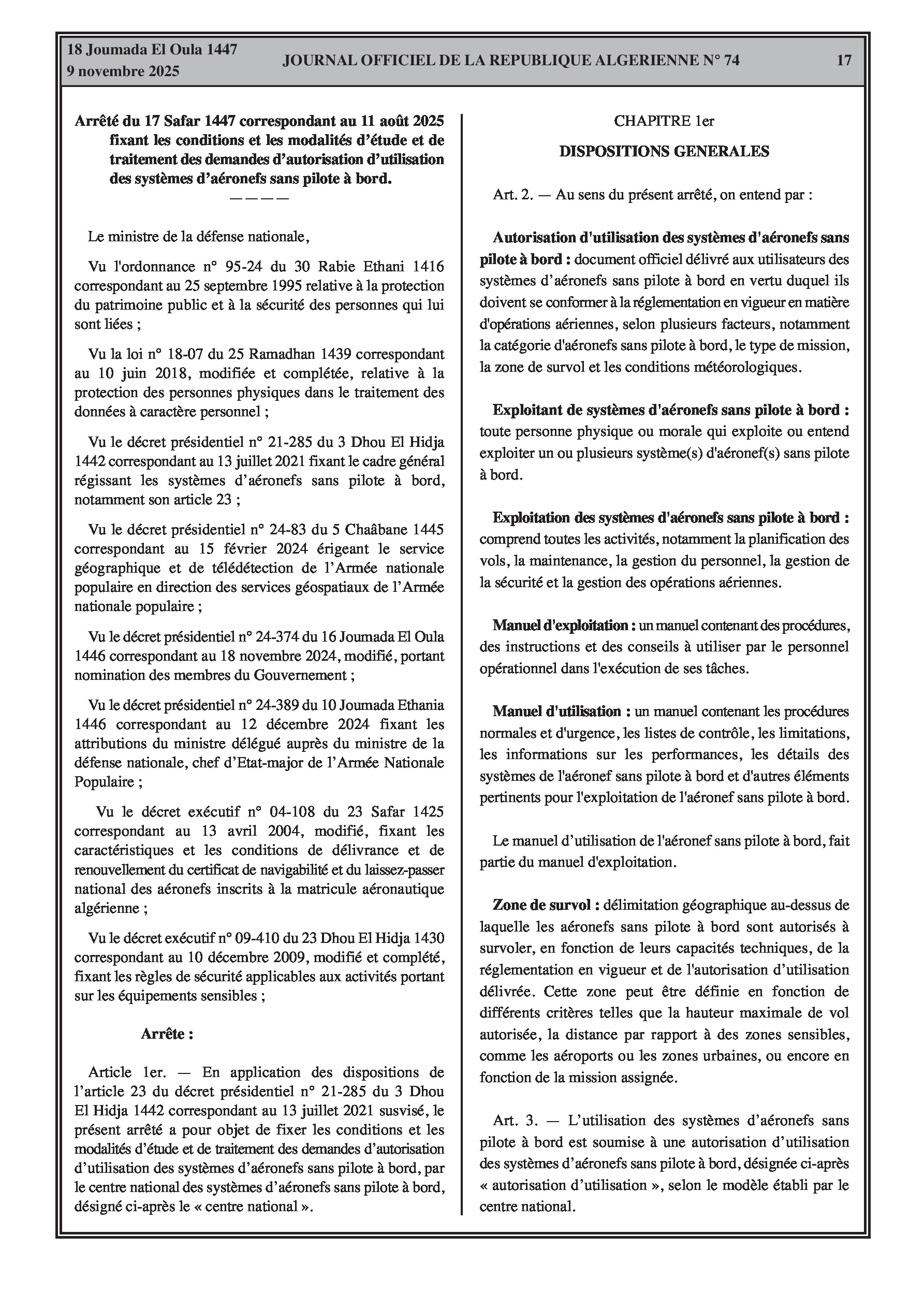 • **Autorisation d'Utilisation**: Un nouveau processus d'autorisation est créé pour toute utilisation de drone, définissant les exigences pour les opérateurs, y compris les ressortissants étrangers. Les autorisations précédentes sont annulées.