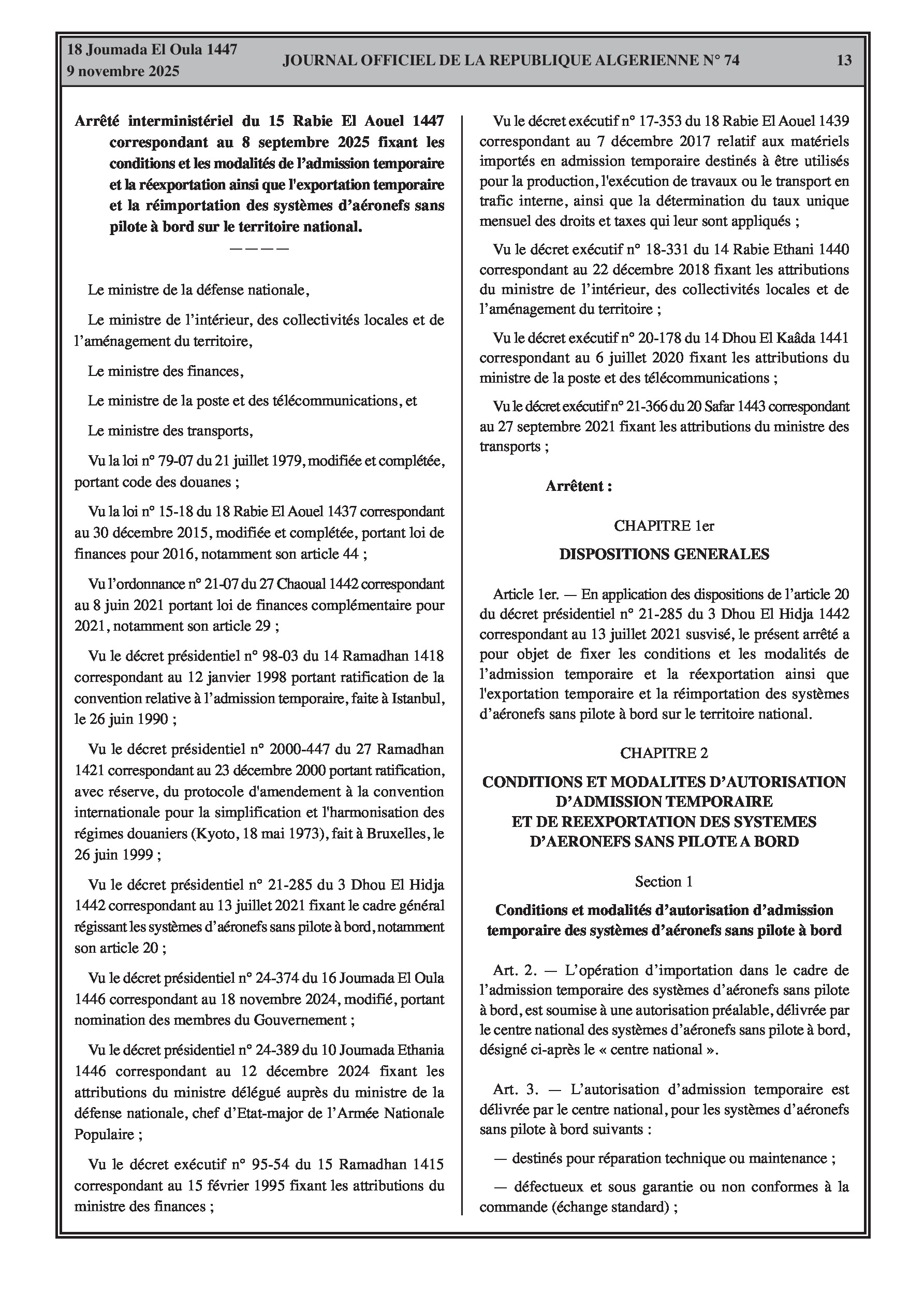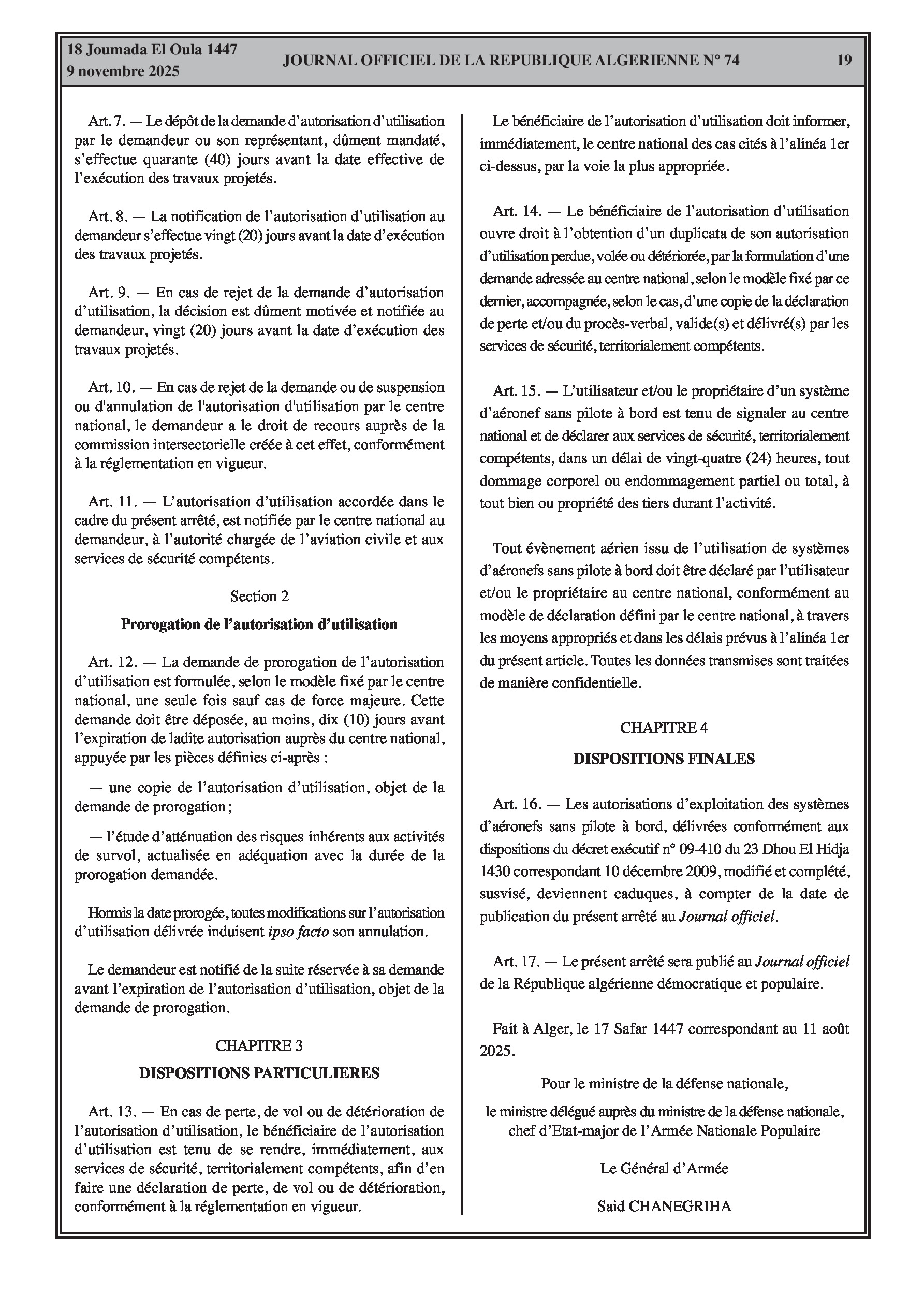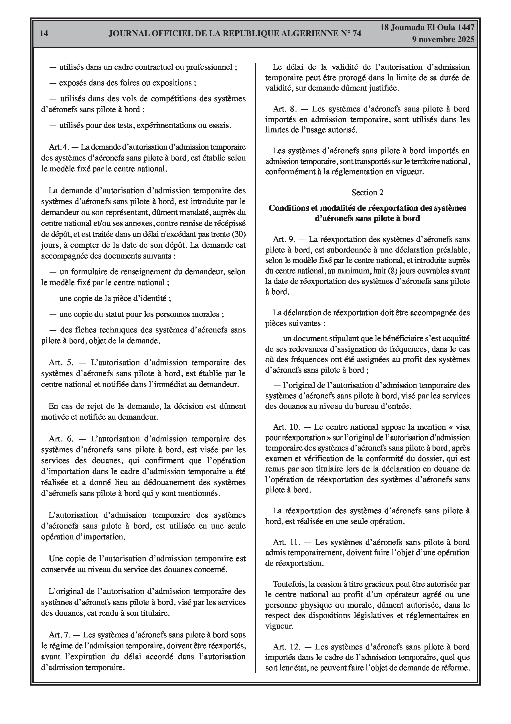 • **Autorisation d'Utilisation**: Un nouveau processus d'autorisation est créé pour toute utilisation de drone, définissant les exigences pour les opérateurs, y compris les ressortissants étrangers. Les autorisations précédentes sont annulées.