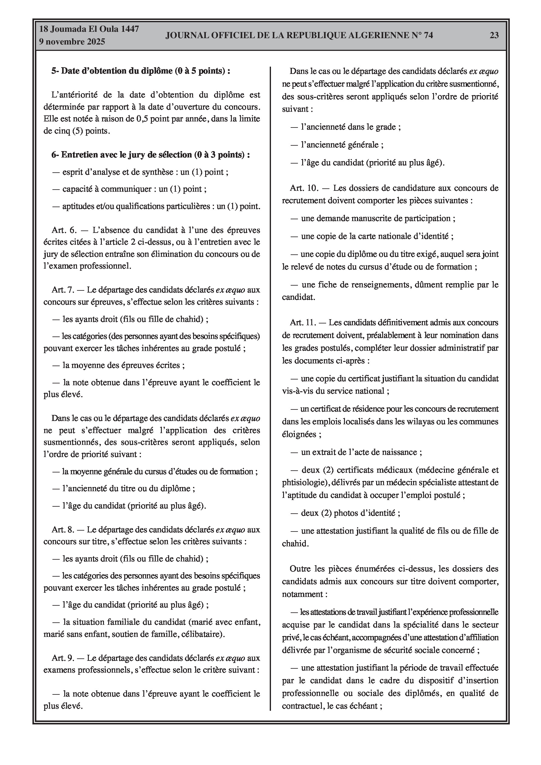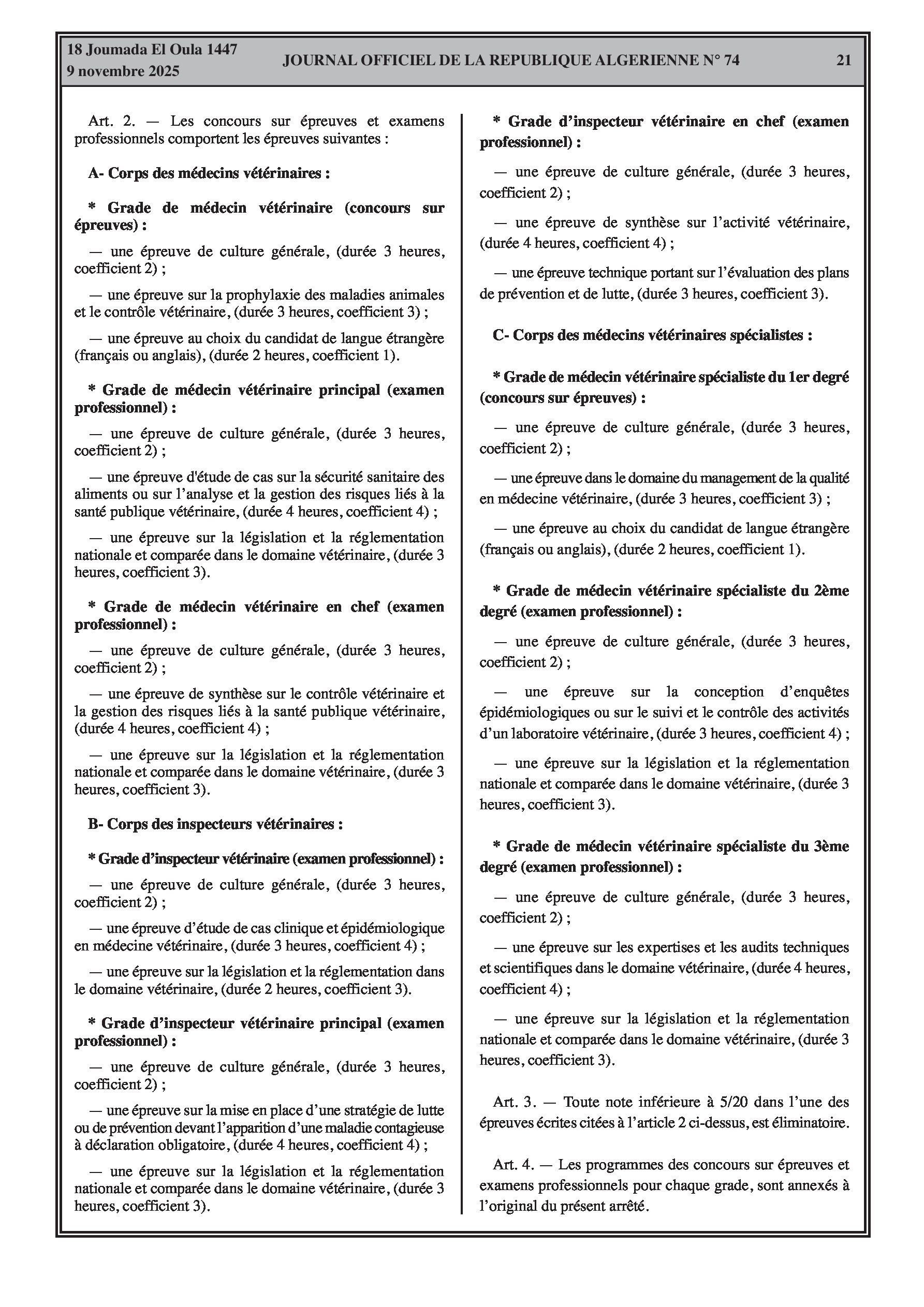 • **Agriculture**: Un cadre complet est fixé pour les concours et examens des vétérinaires, inspecteurs vétérinaires et vétérinaires spécialistes.