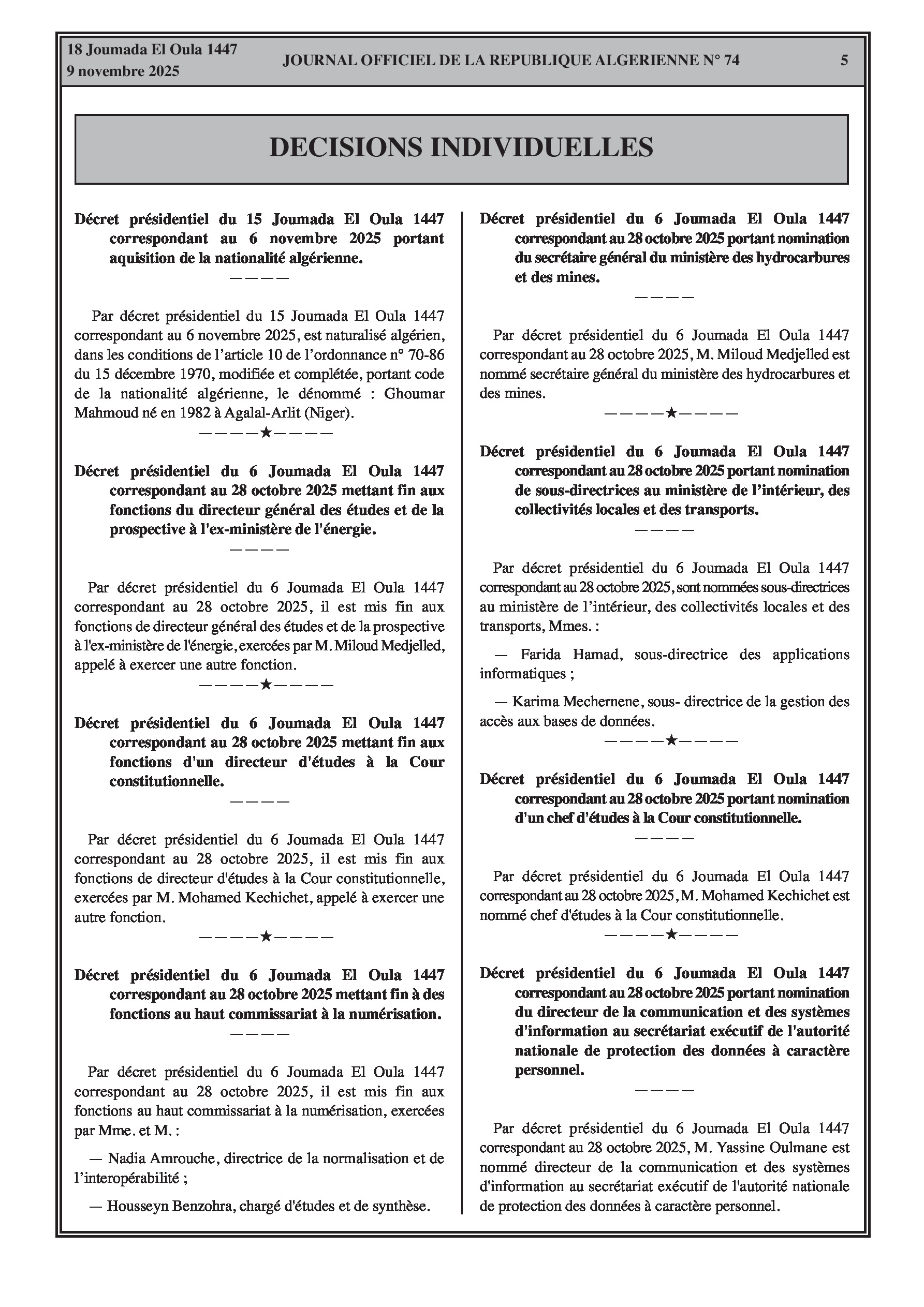 Une série de décrets présidentiels et exécutifs annonce des nominations, des fins de fonctions et une naturalisation. Les changements touchent les secteurs de l'énergie, de la justice, de l'intérieur et des sports.