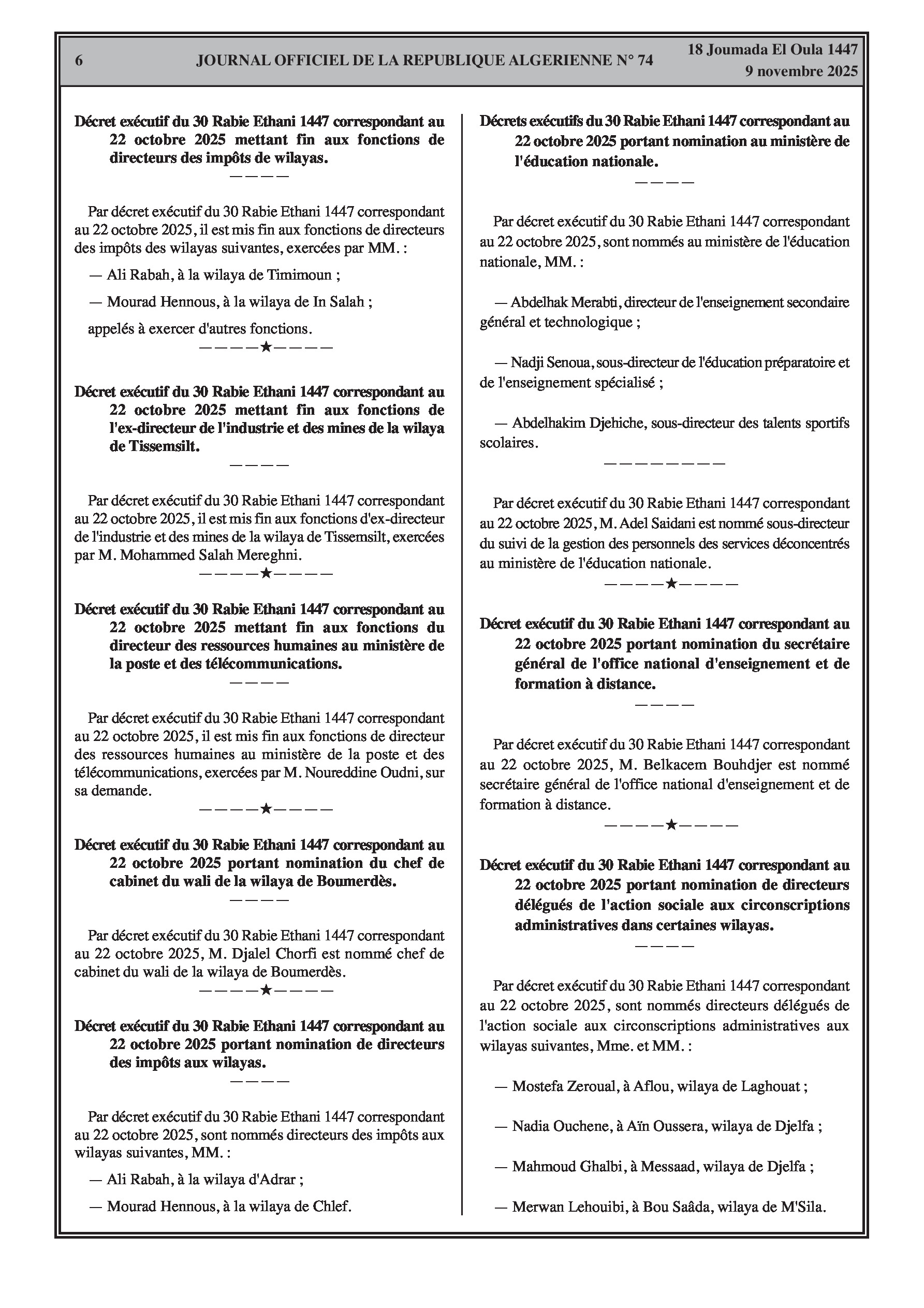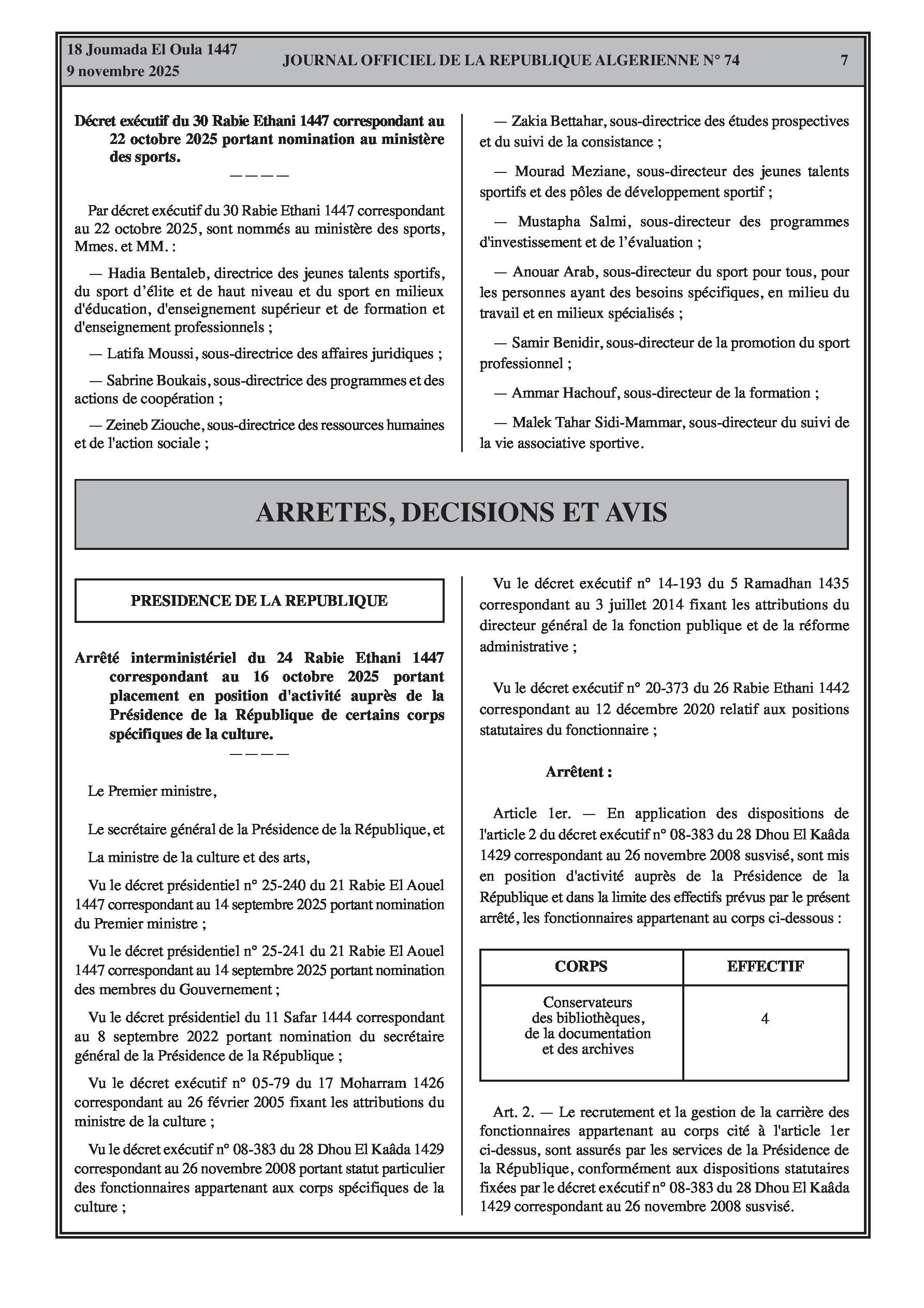 De nouveaux arrêtés ministériels établissent l'organisation des examens professionnels pour les vétérinaires et nomment des membres à des comités clés dans les secteurs des finances et de l'agriculture.