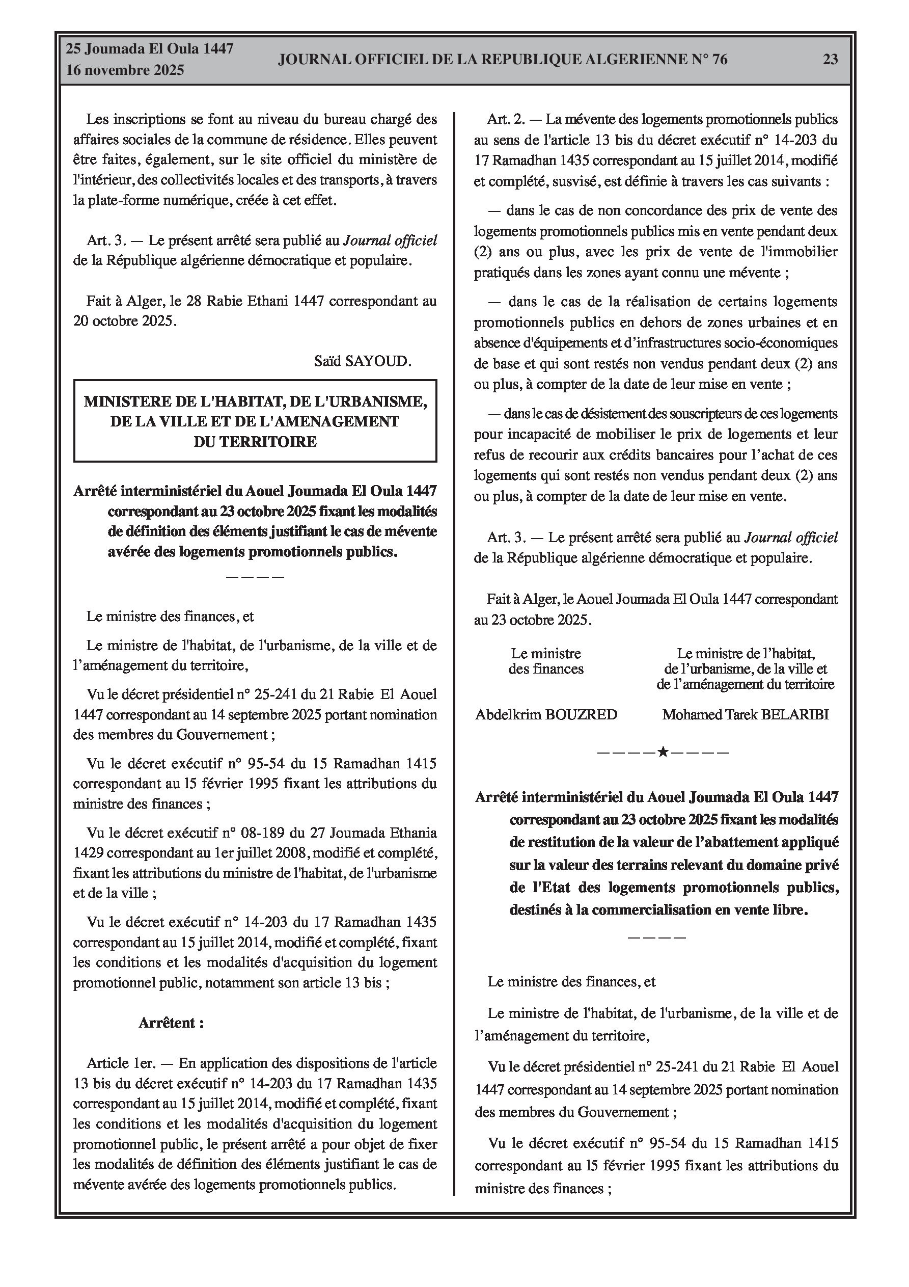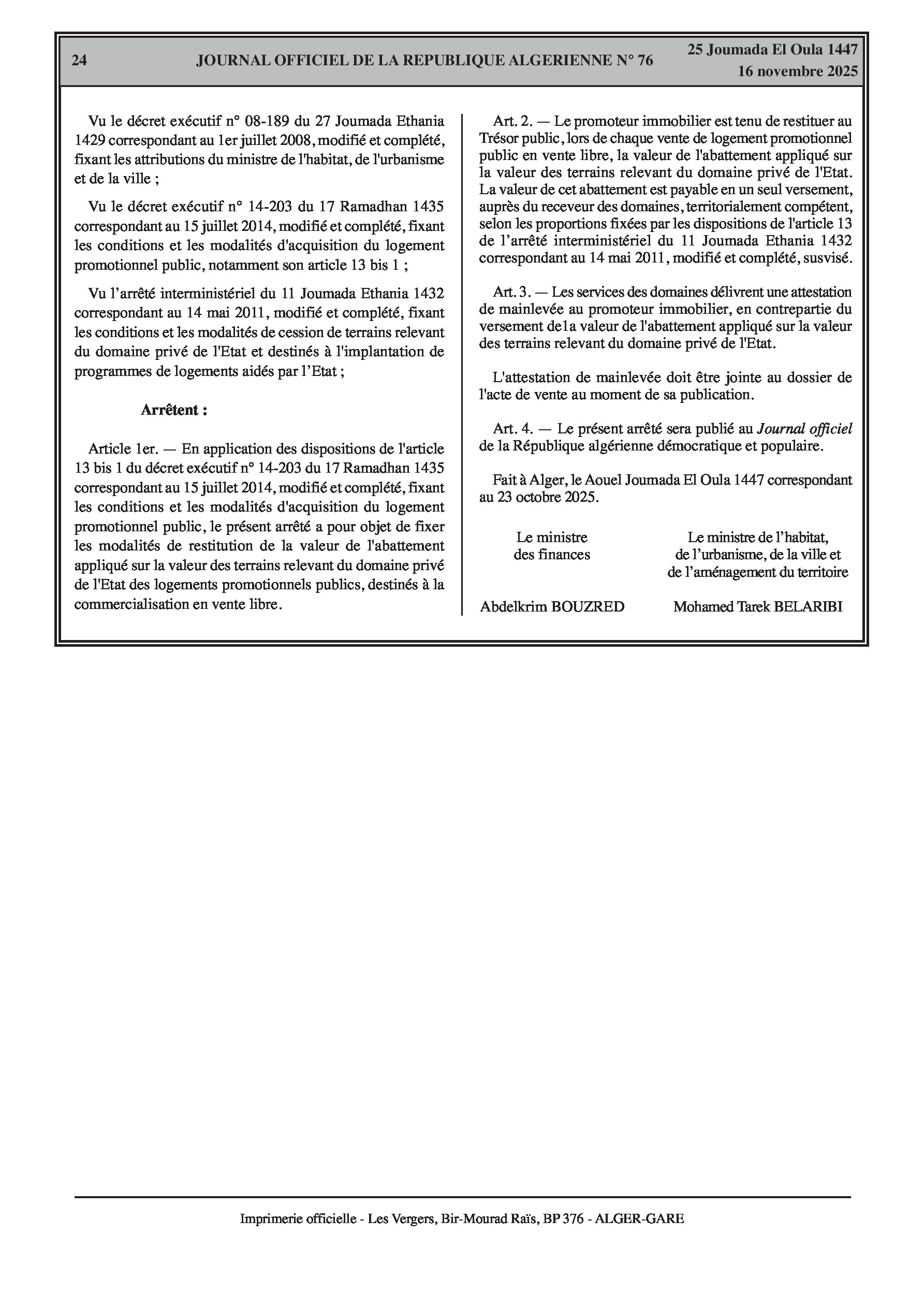 • Définition des cas de mévente des logements promotionnels publics et modalités de restitution de la valeur de l'abattement sur les terrains.