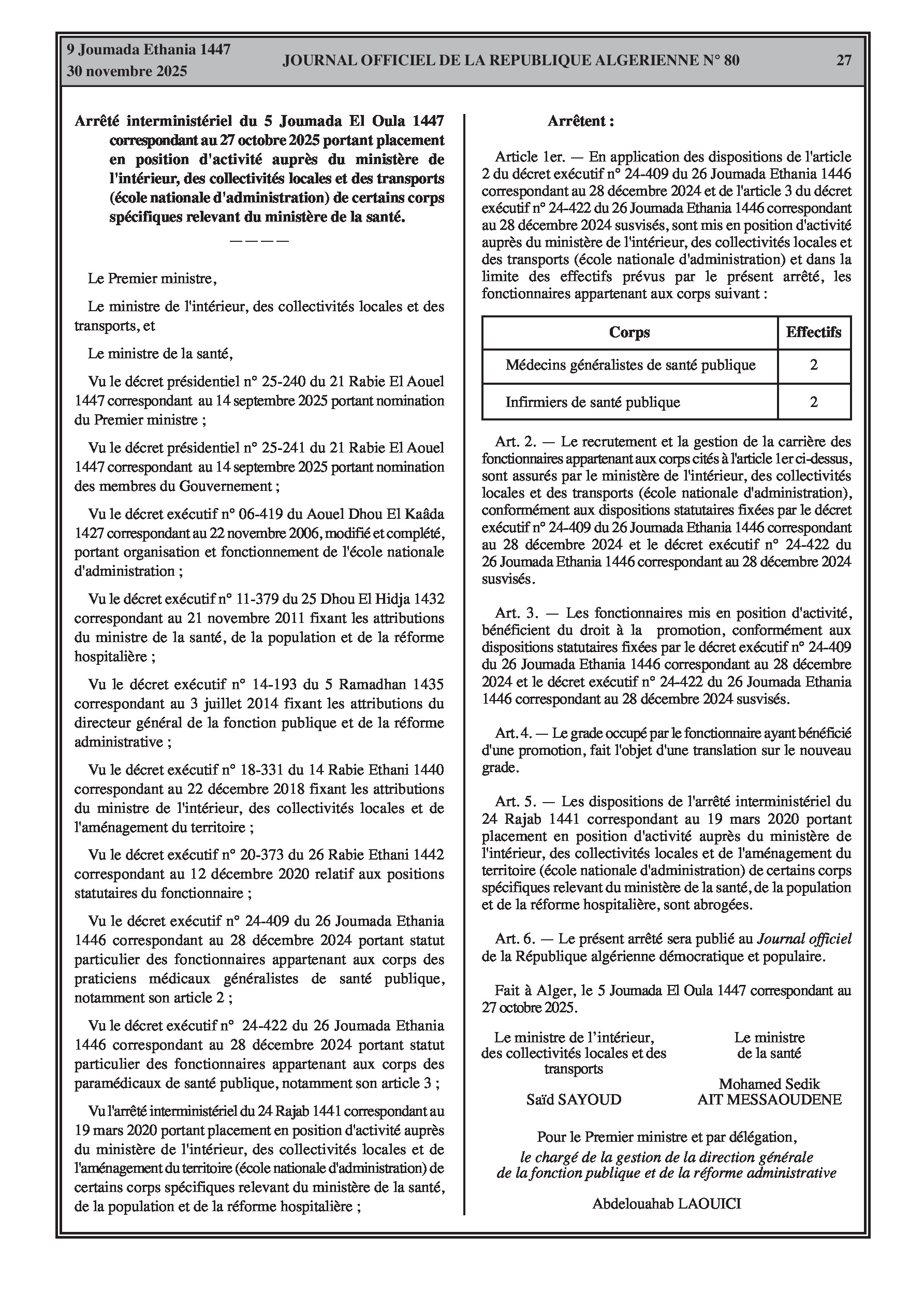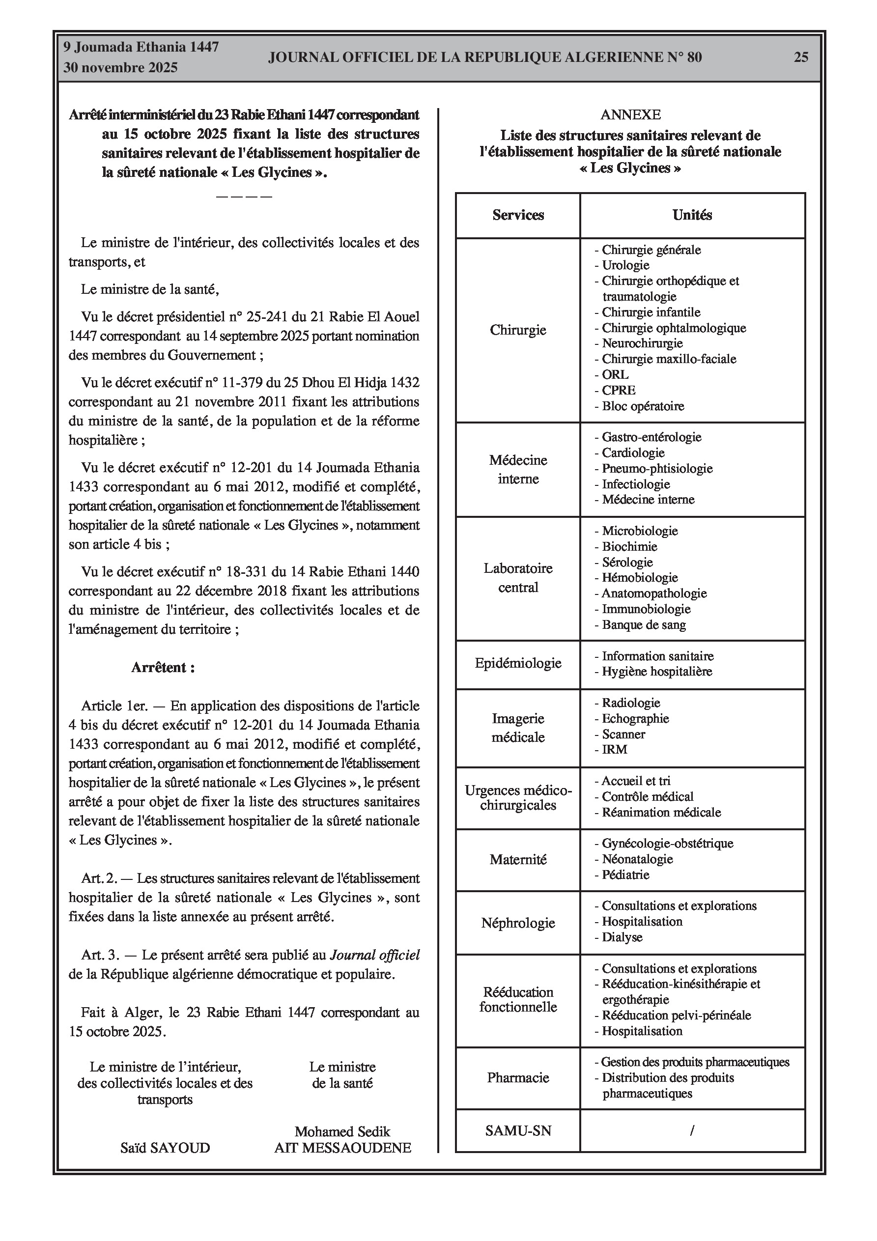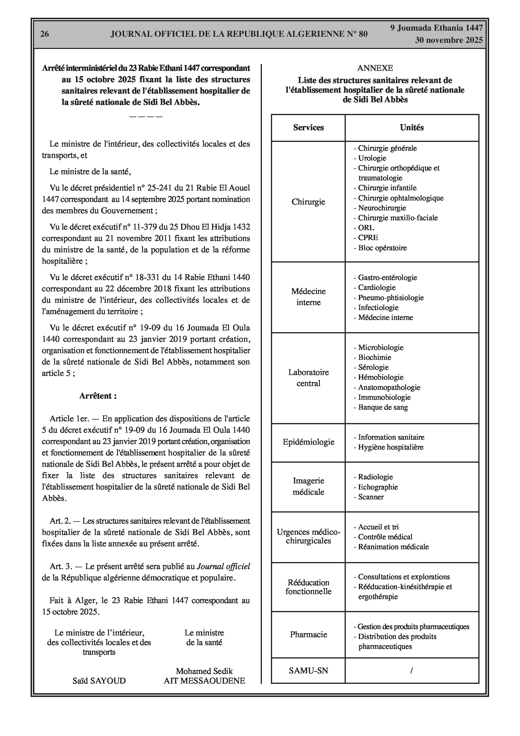 Décisions organisationnelles concernant les hôpitaux de la sûreté nationale et la représentation du ministère des Finances en justice.