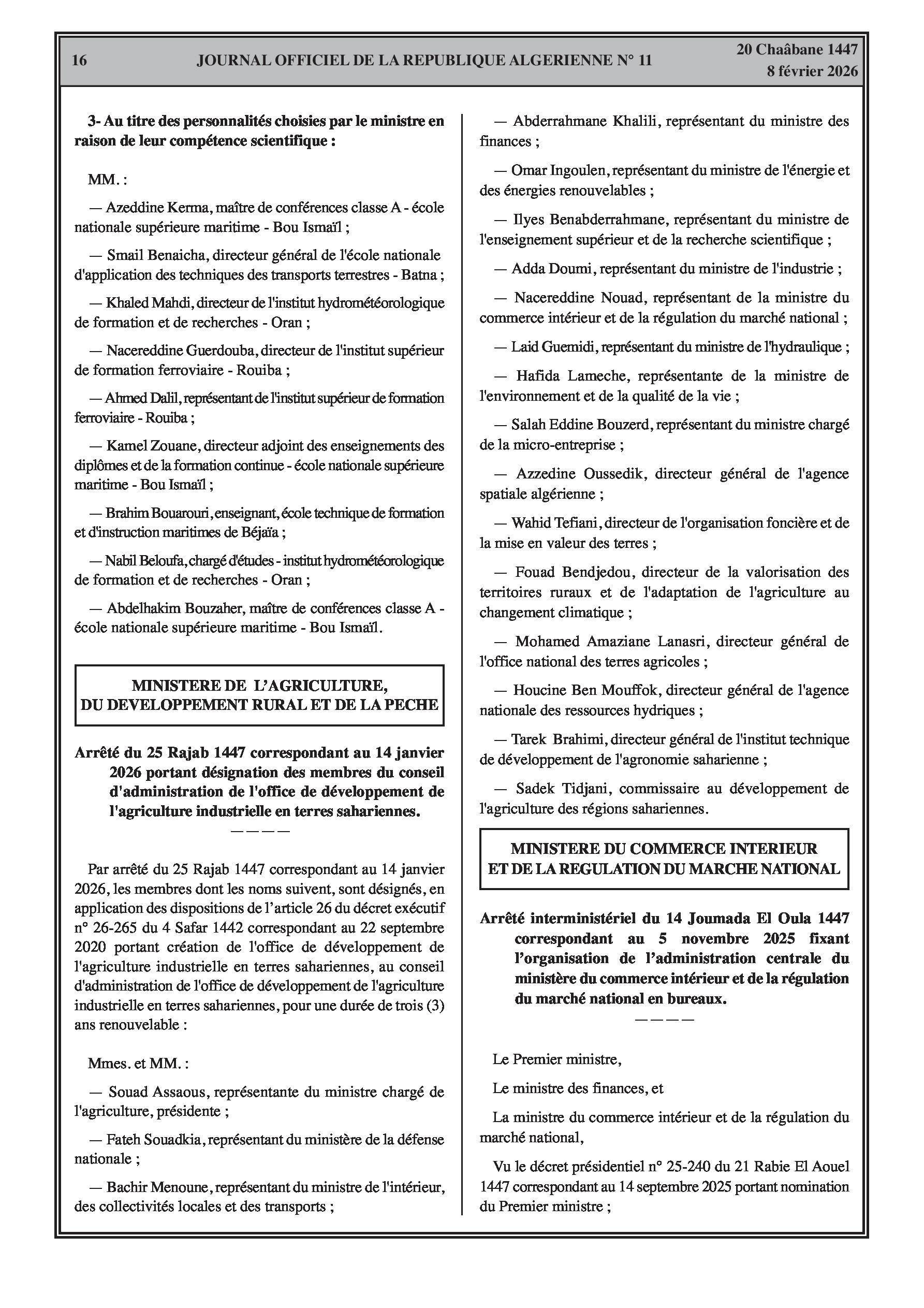 Nominations dans des commissions des secteurs des transports, de l'agriculture saharienne et des startups.