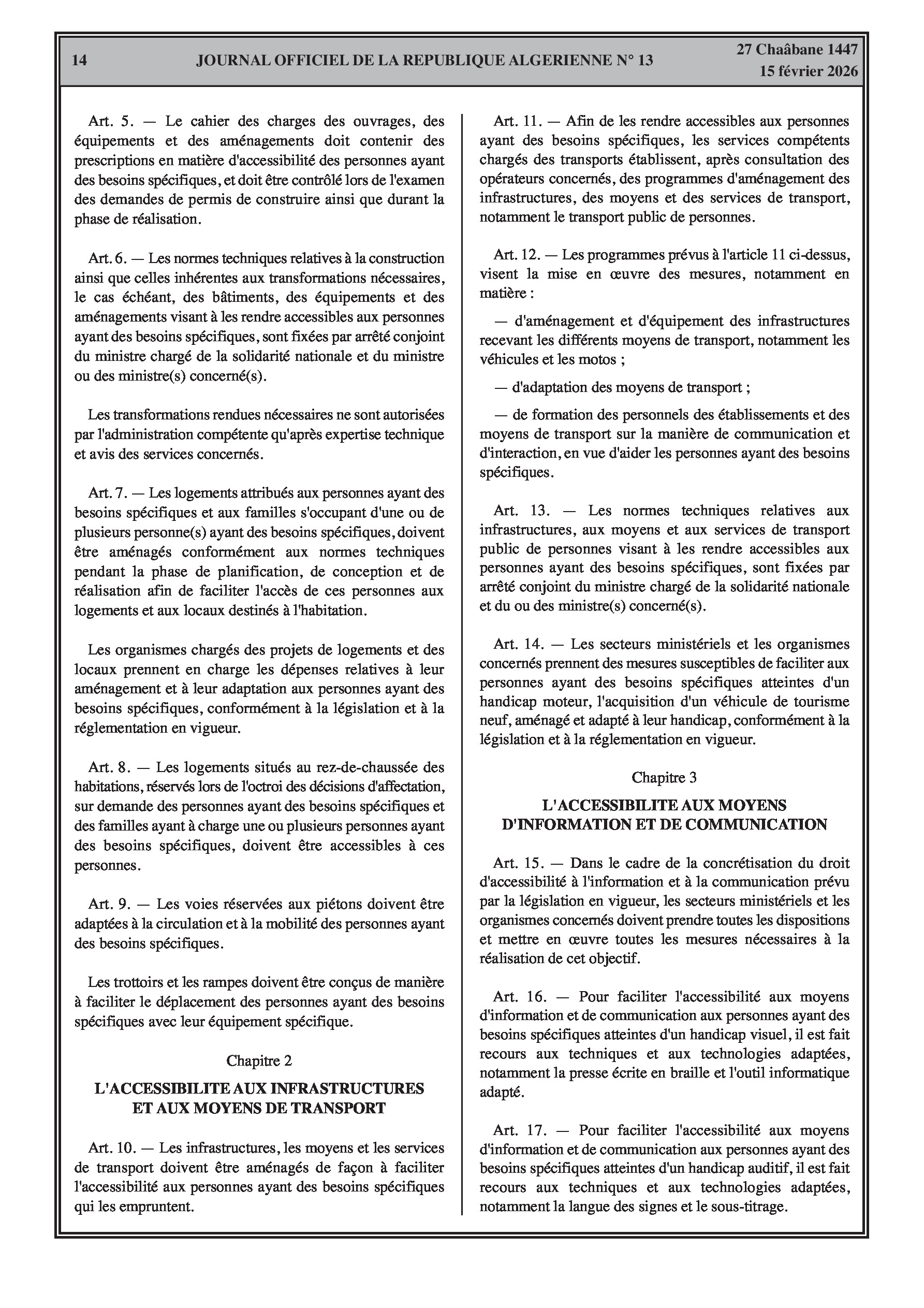 Obligation d'aménager le cadre bâti, les transports et les moyens de communication pour les rendre accessibles aux personnes handicapées.