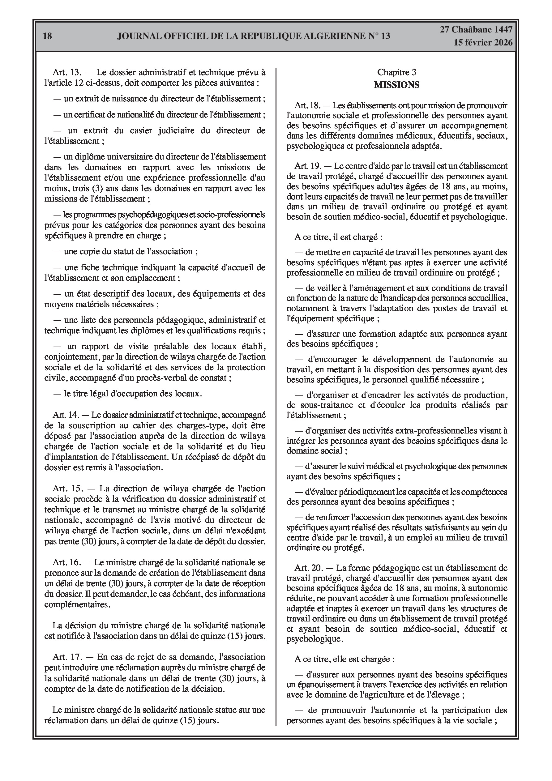 Mise en place de centres pour l'insertion professionnelle des personnes aux besoins spécifiques inaptes au milieu de travail ordinaire.