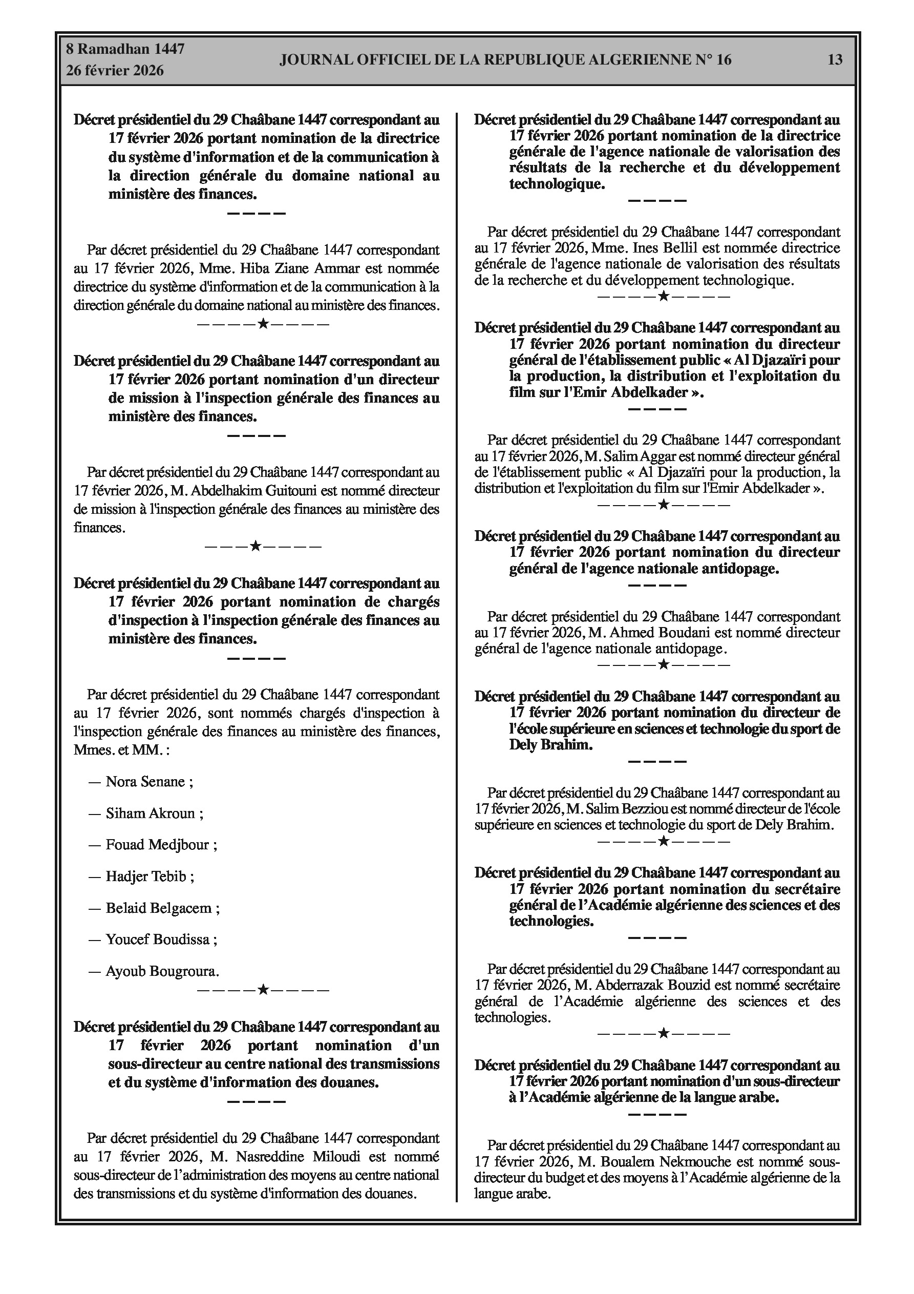 2. Nominations et fins de fonctions dans le corps diplomatique et les postes supérieurs