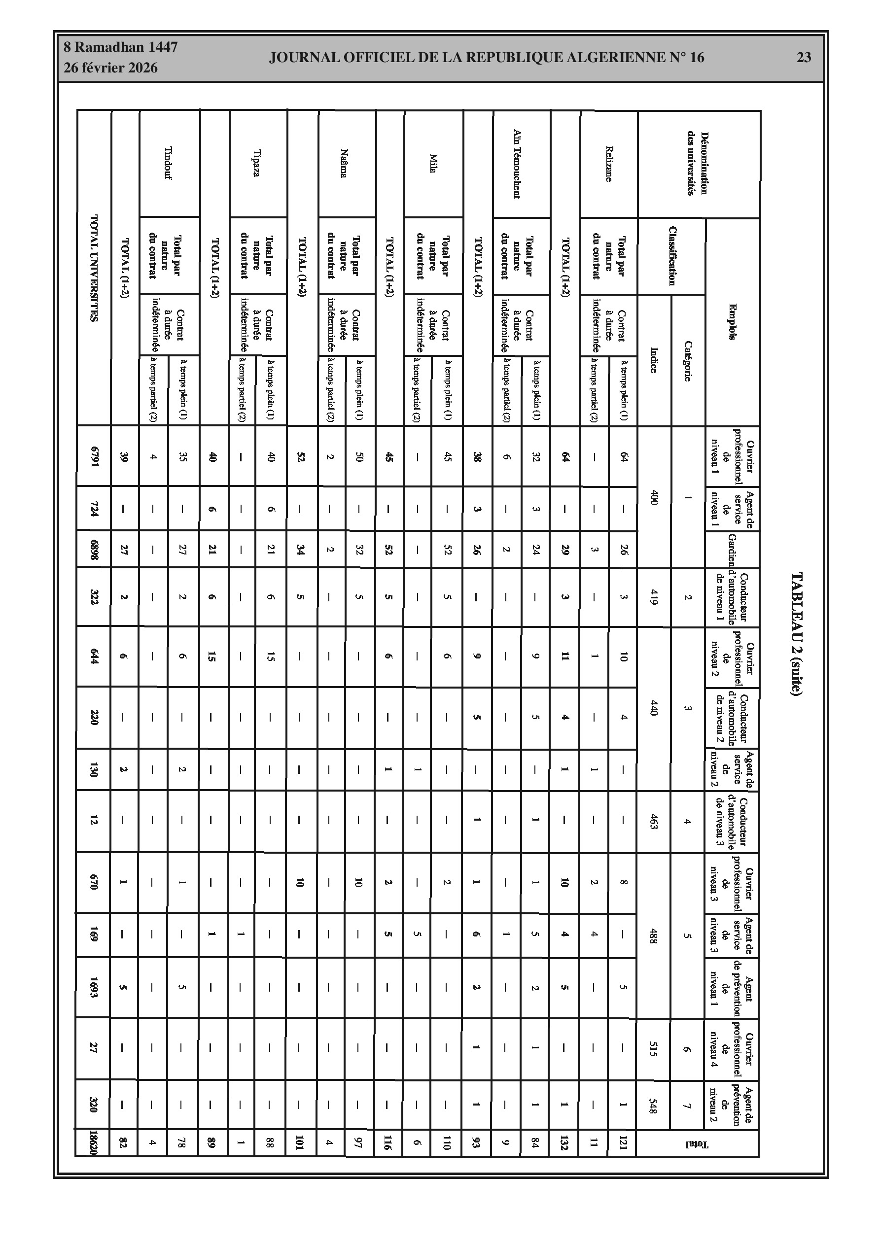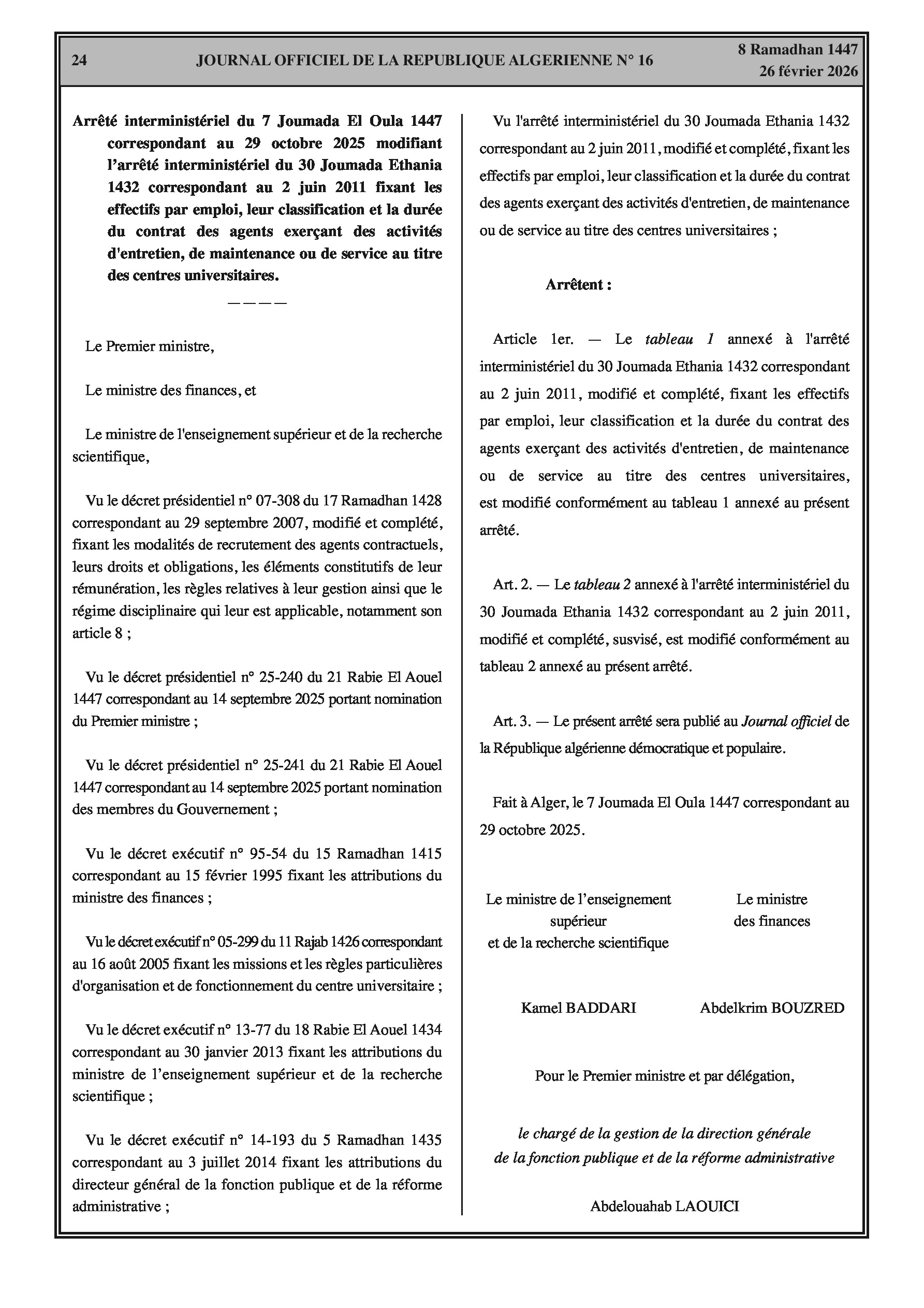 Arrêté interministériel fixant les effectifs et la classification des ouvriers professionnels et agents de service dans les établissements universitaires.