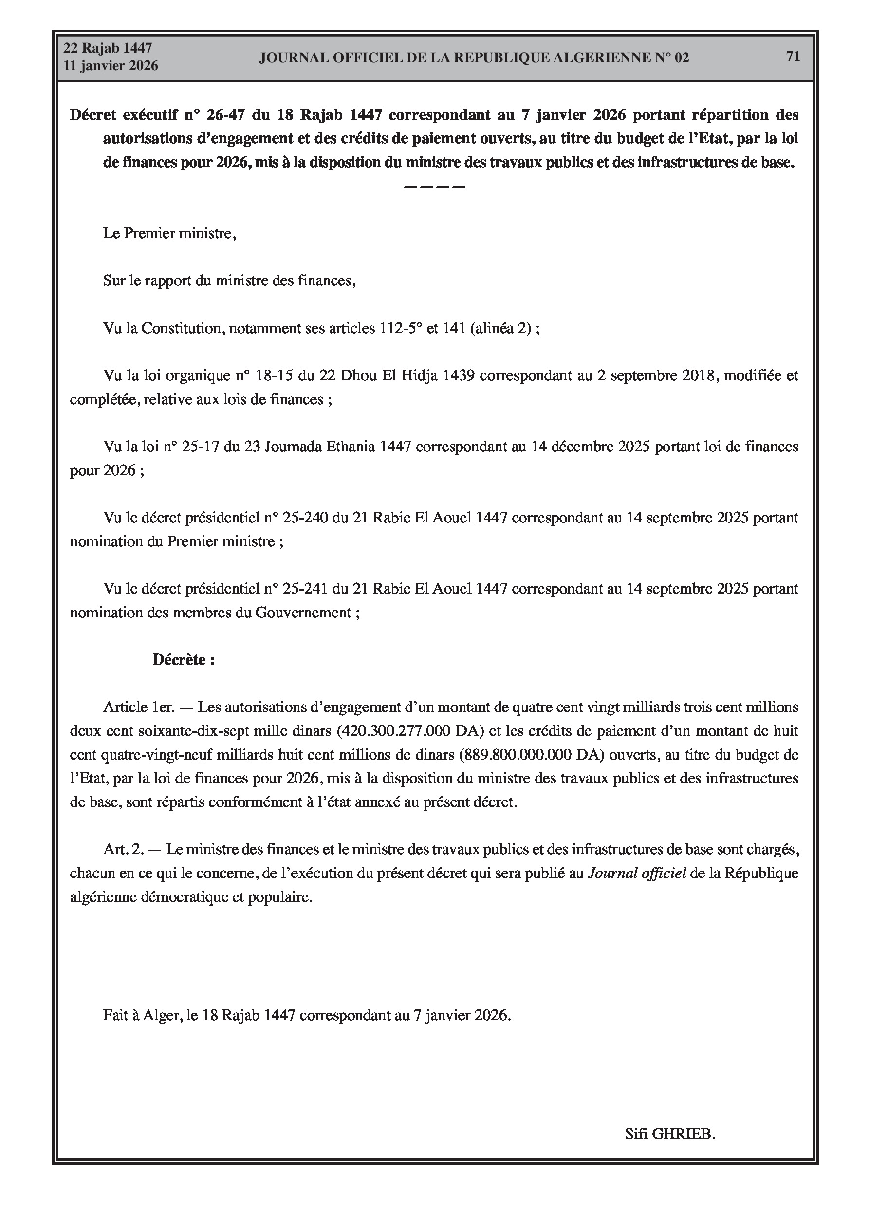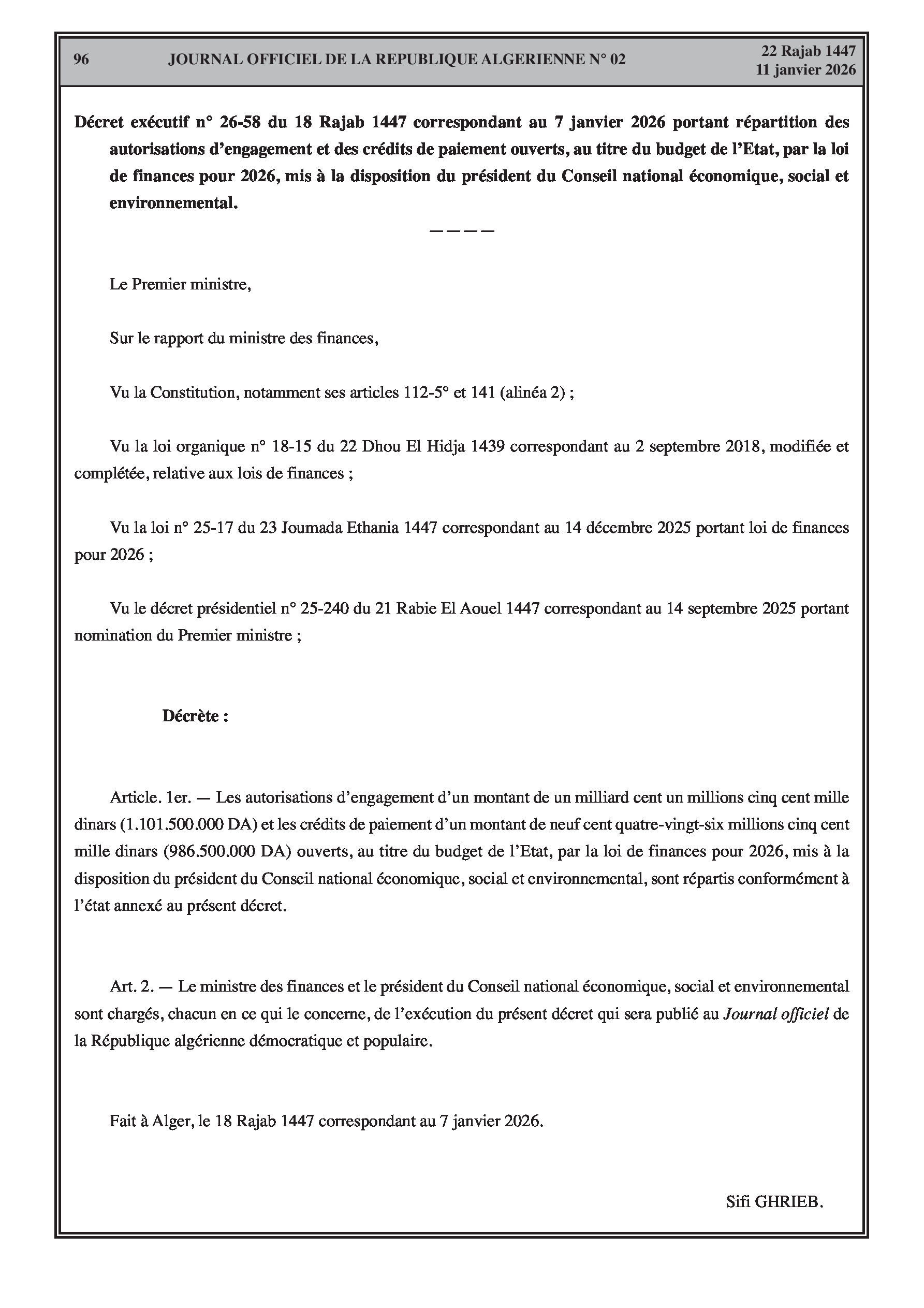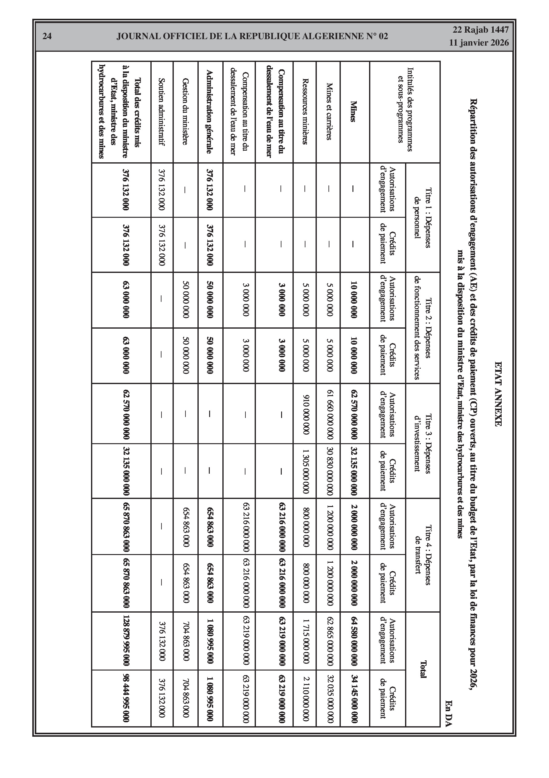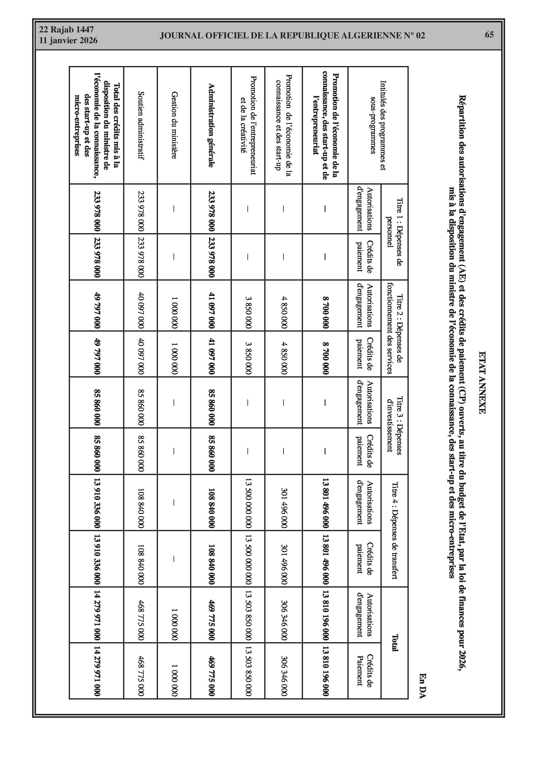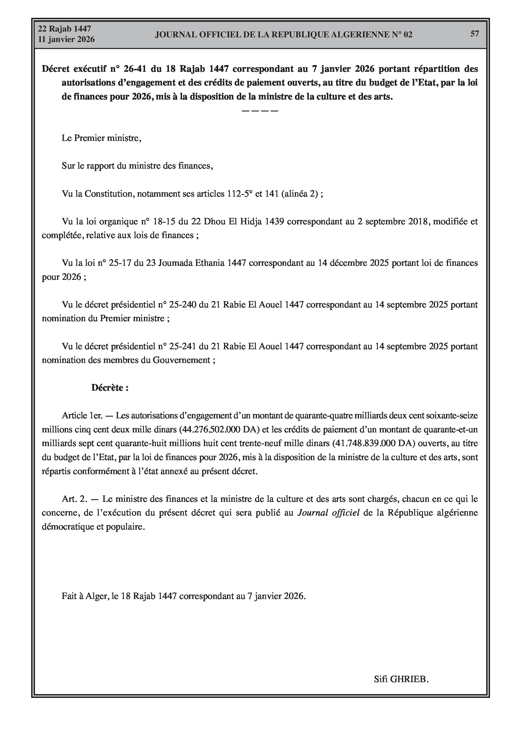 Budgets alloués aux Moudjahidine, à l'Industrie, l'Agriculture, l'Énergie et au Commerce.