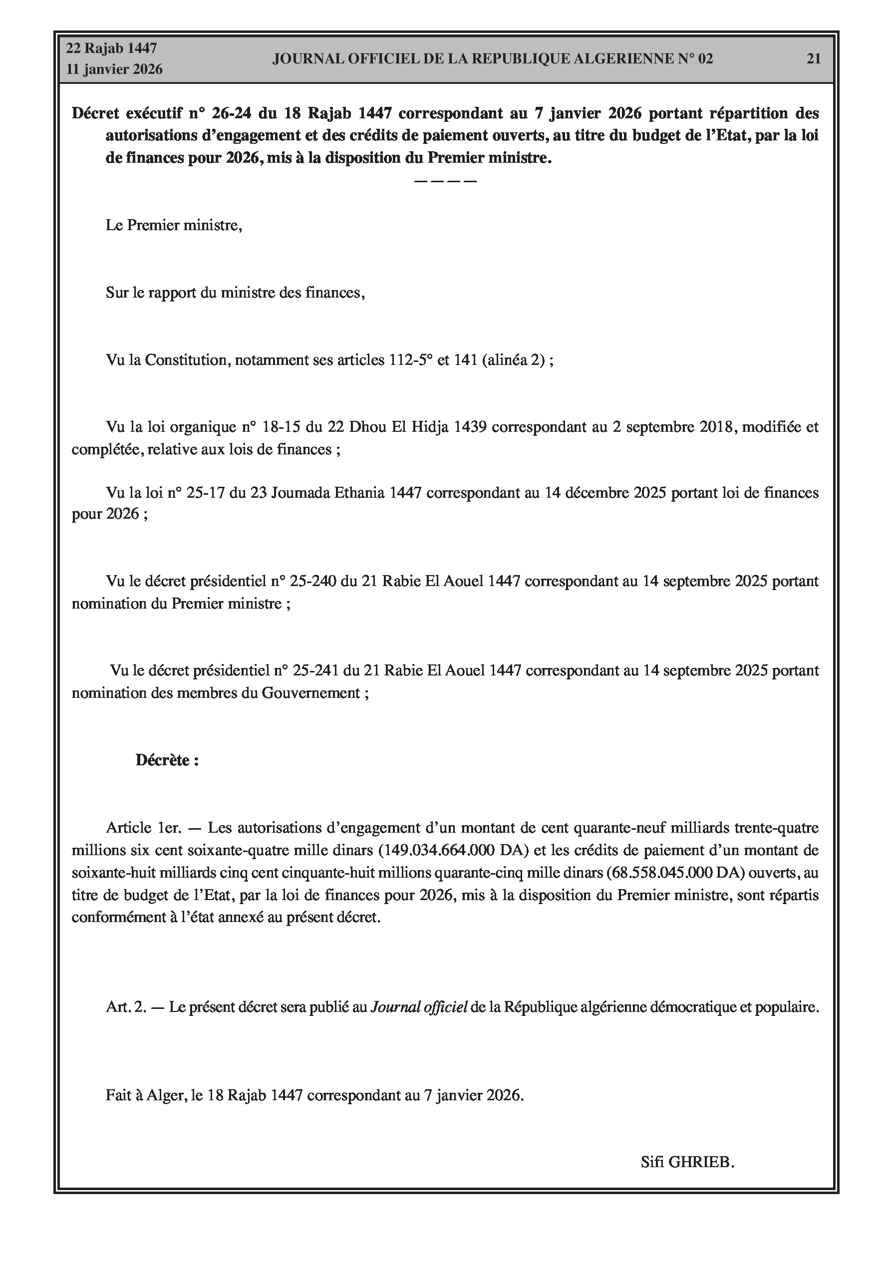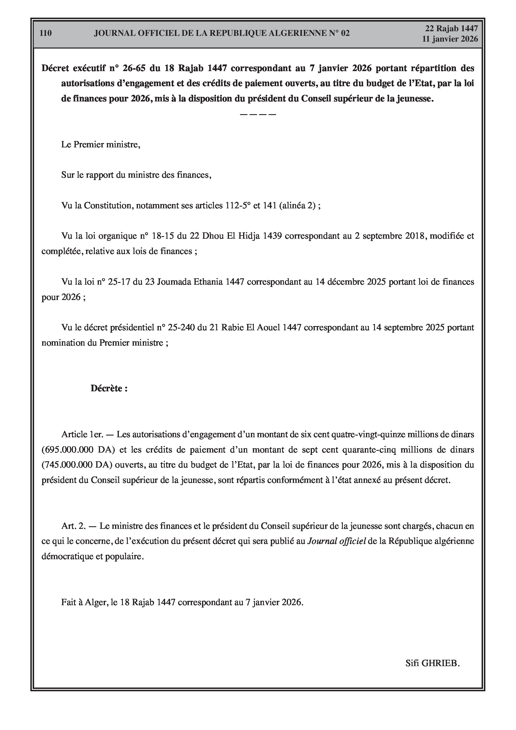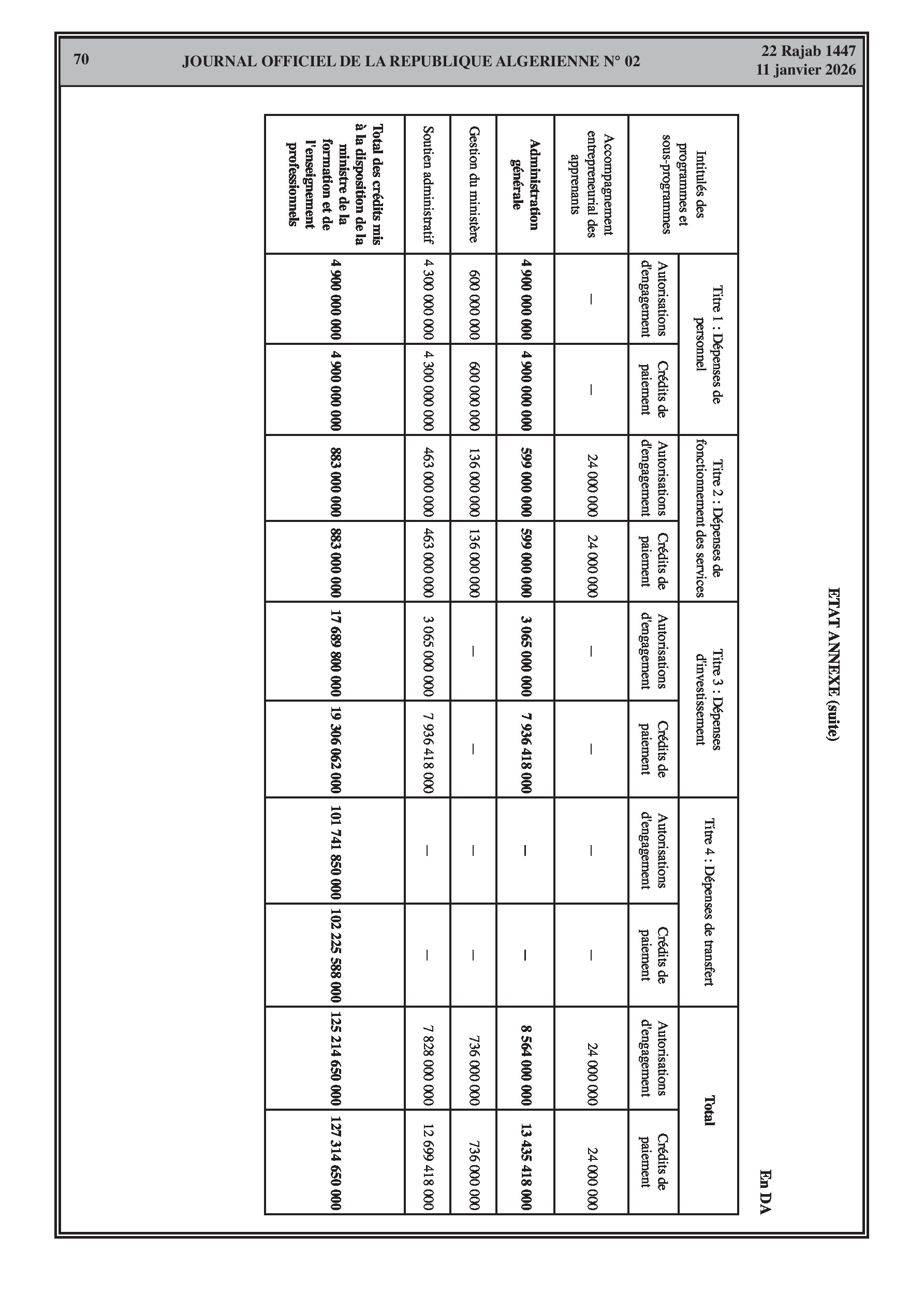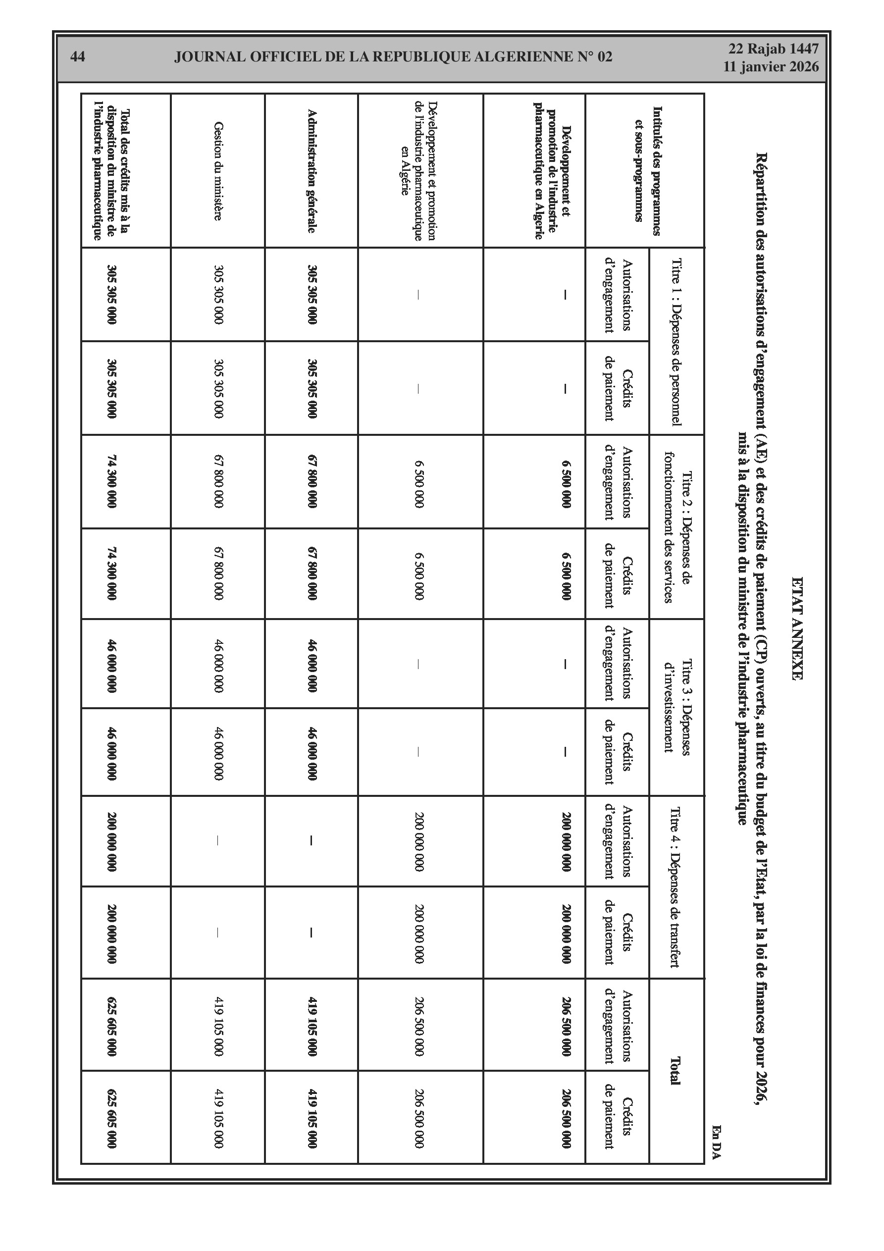 Budgets alloués aux Moudjahidine, à l'Industrie, l'Agriculture, l'Énergie et au Commerce.