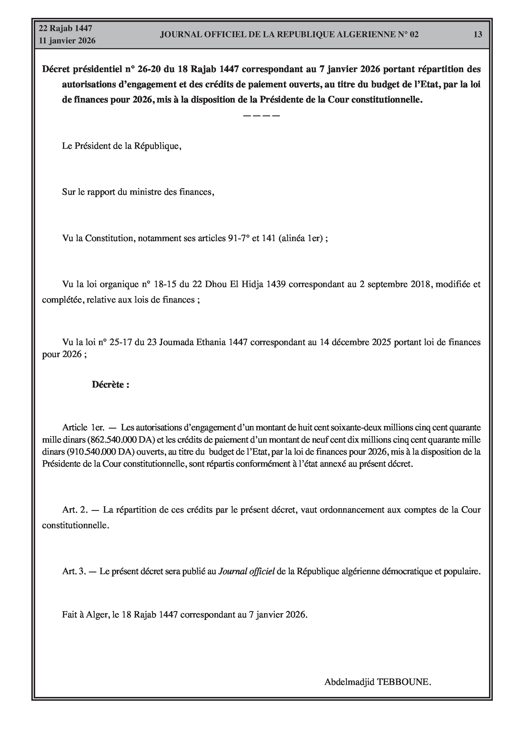 Répartition du Budget de l'État pour l'année 2026