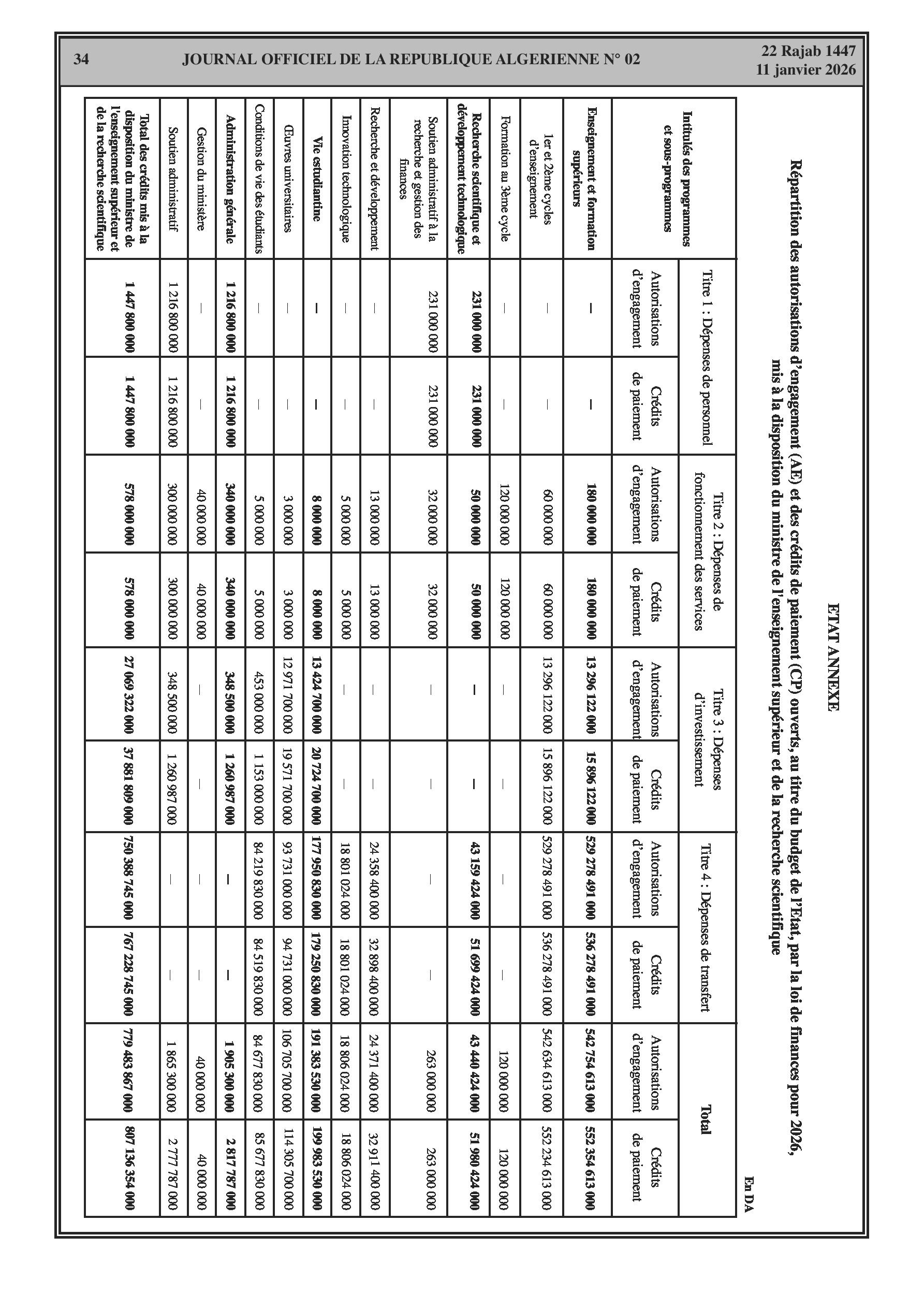 Allocations budgétaires importantes pour les Finances, l'Enseignement supérieur, l'Éducation nationale et la Santé.