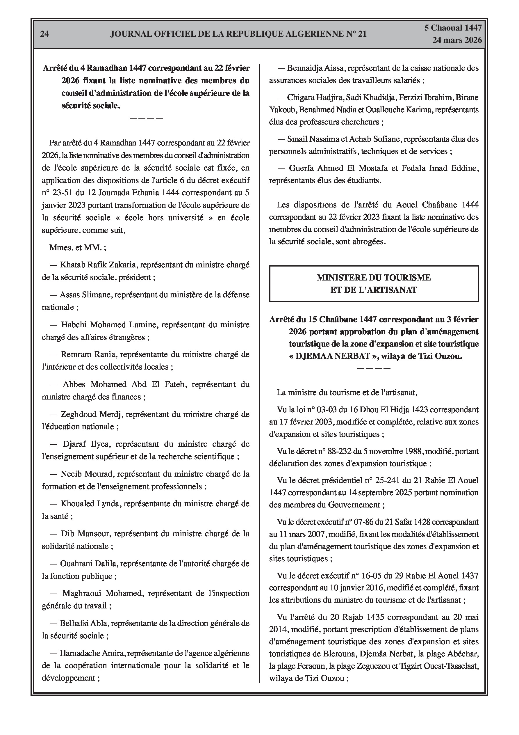 Approbation des plans d'aménagement touristique des zones d'expansion DJEMAA NERBAT et BLEROUNA offrant des superficies aménageables.