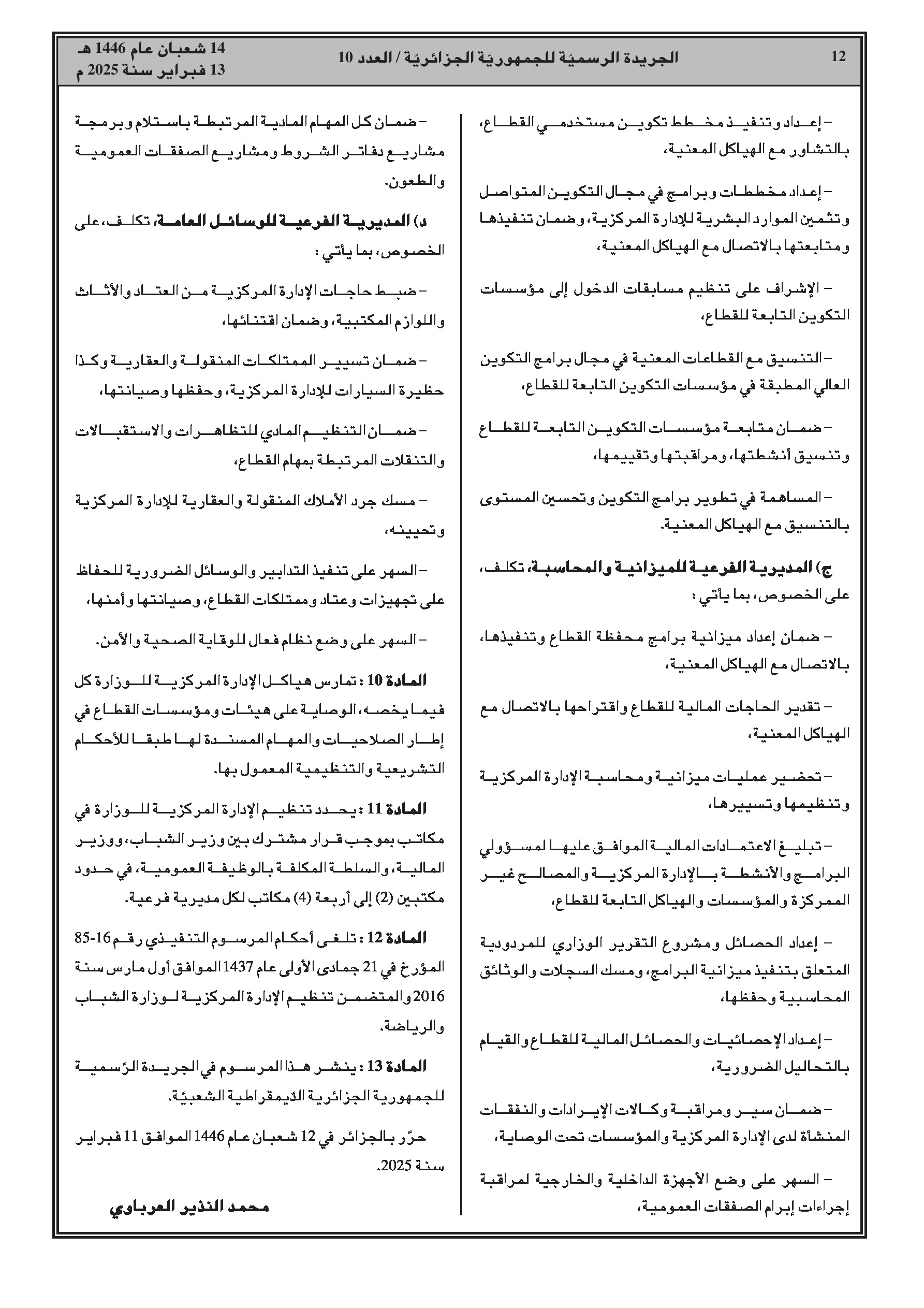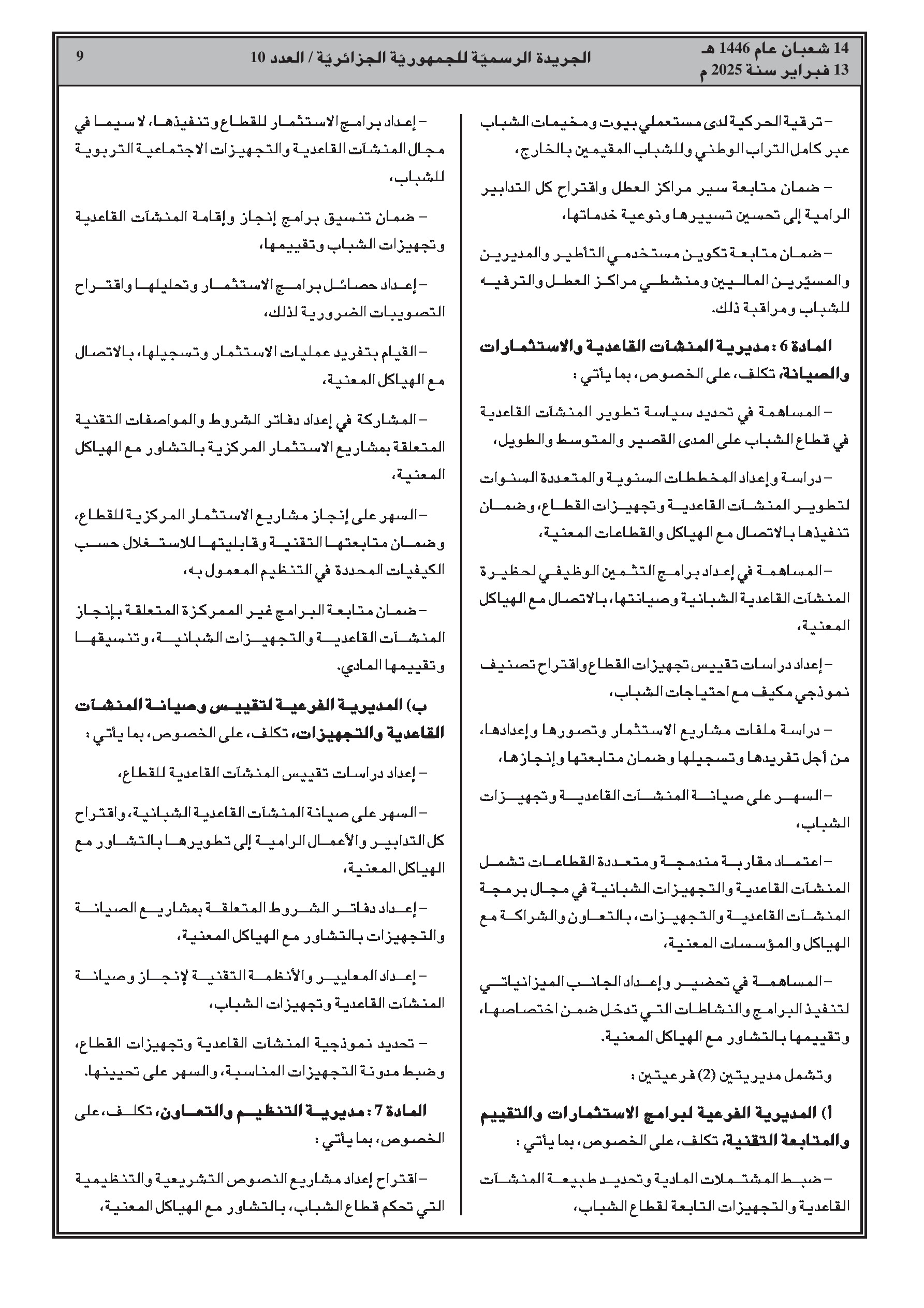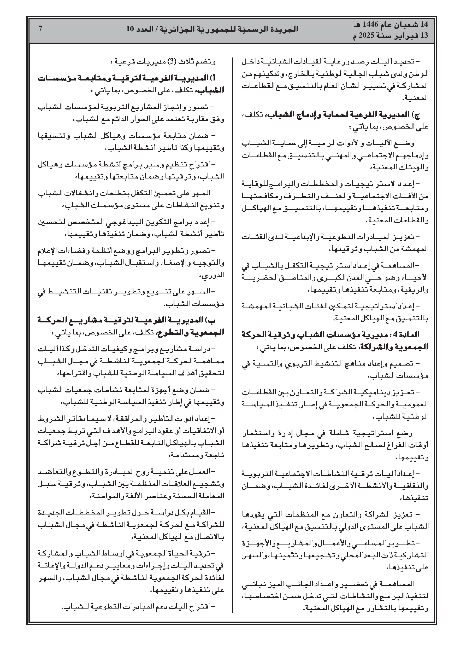 المرسوم التنفيذي رقم 25-75 يحدد الهيكل التنظيمي للإدارة المركزية لوزارة الشباب.