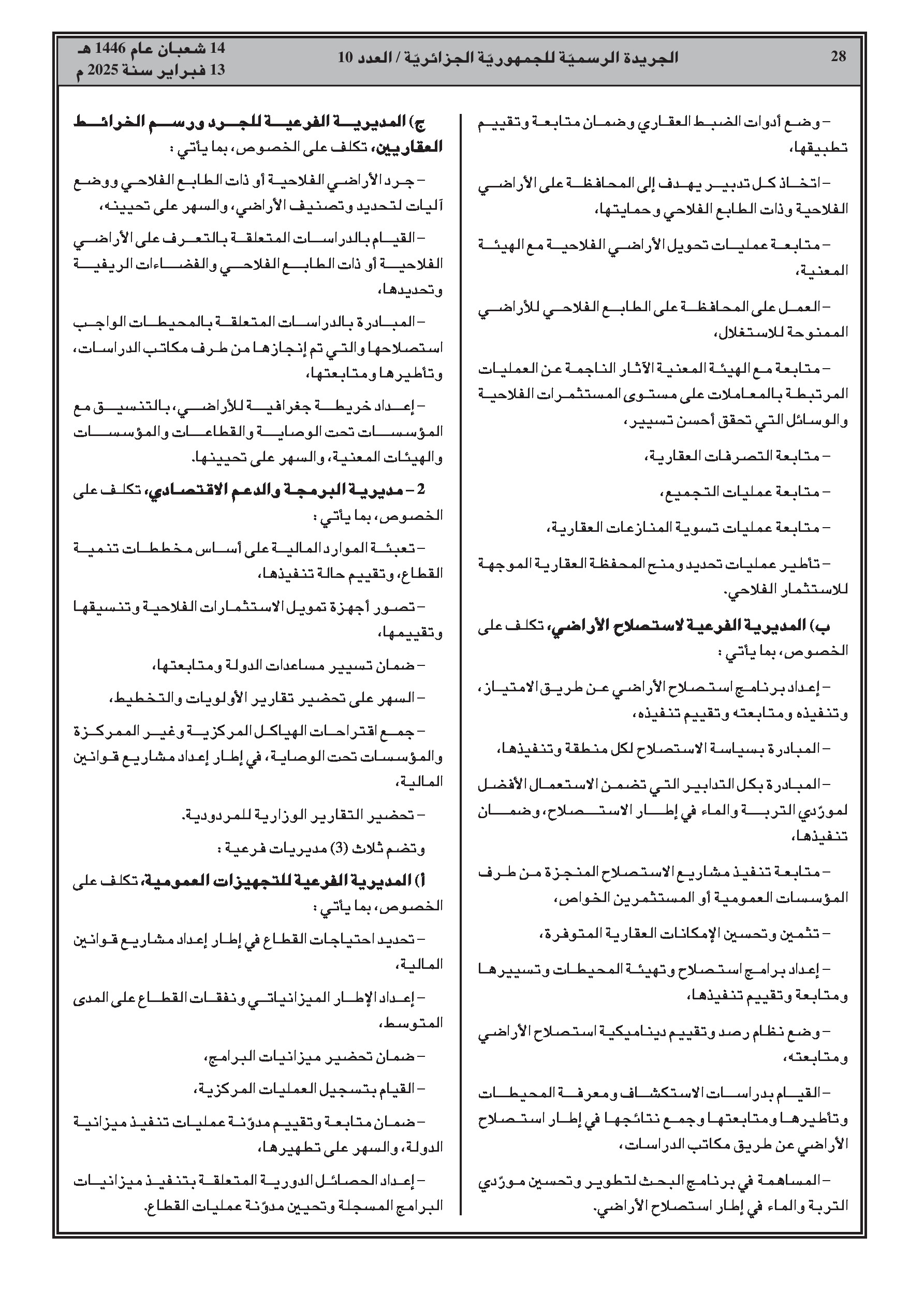 المرسوم التنفيذي رقم 25-77 يفصل تنظيم الإدارة المركزية لوزارة الفلاحة والتنمية الريفية والصيد البحري.