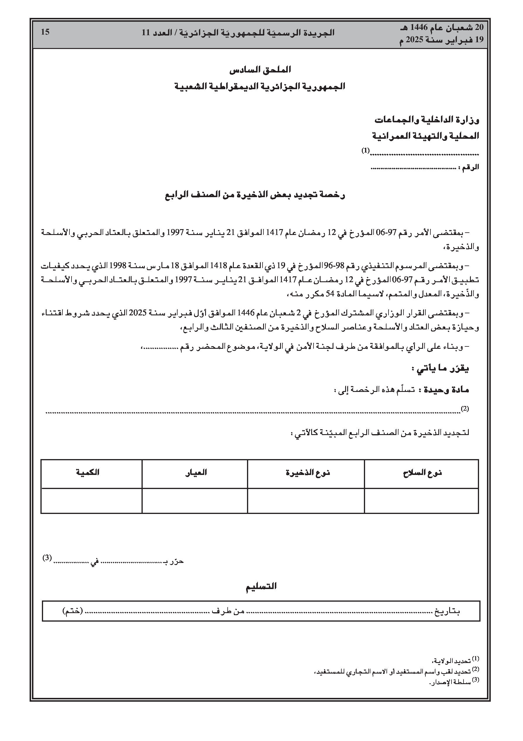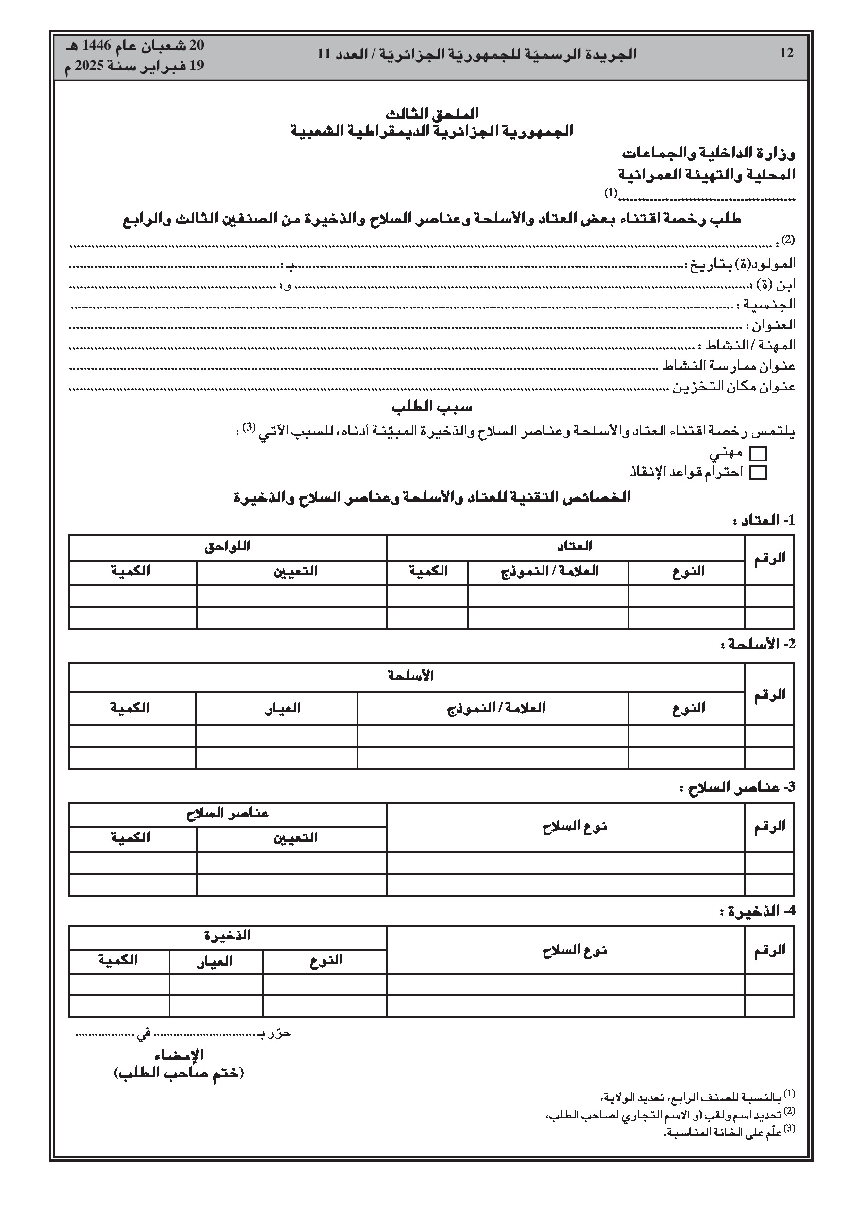 تنظيمات جديدة لحيازة وحمل الأسلحة من الصنفين 3 و4.