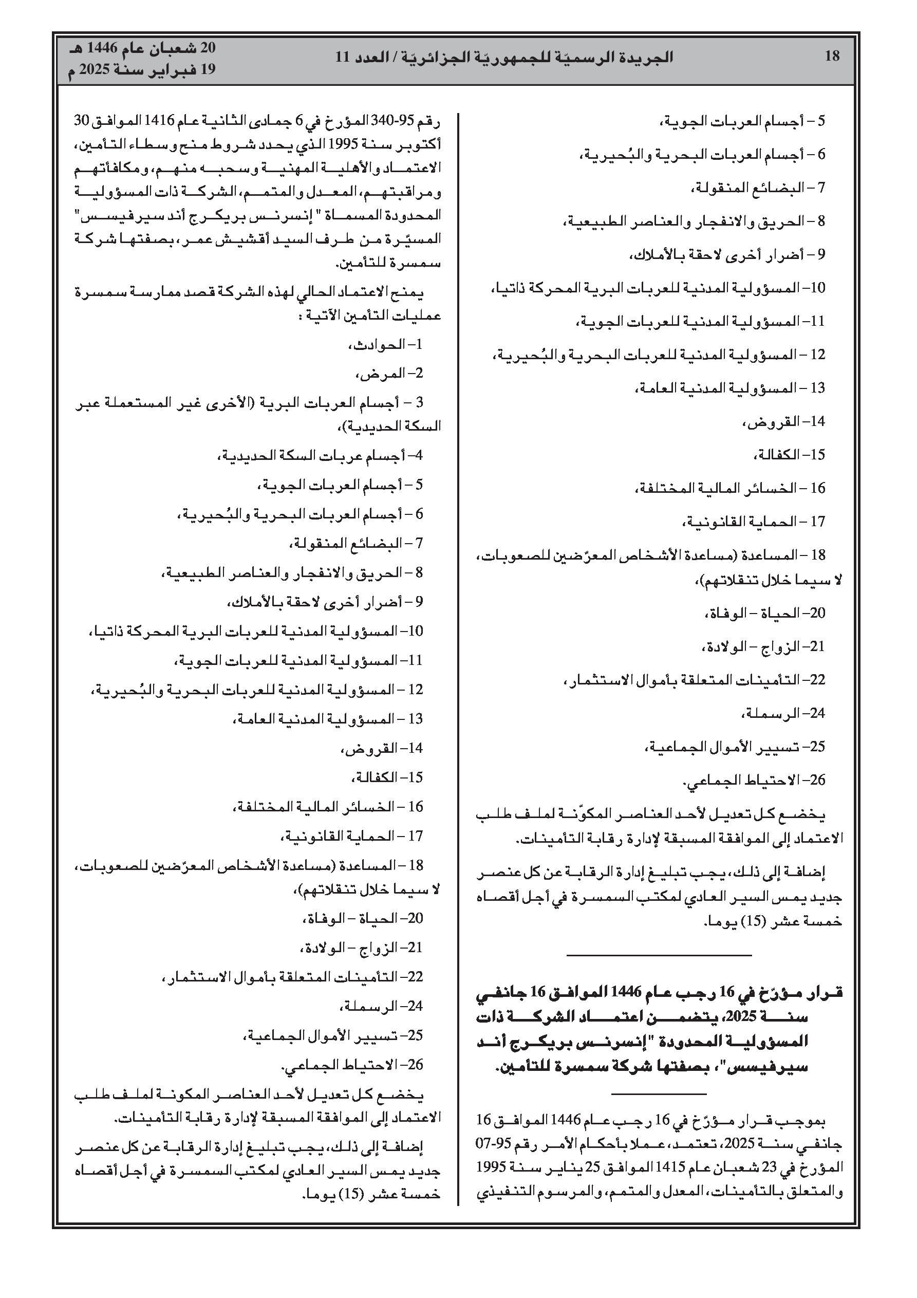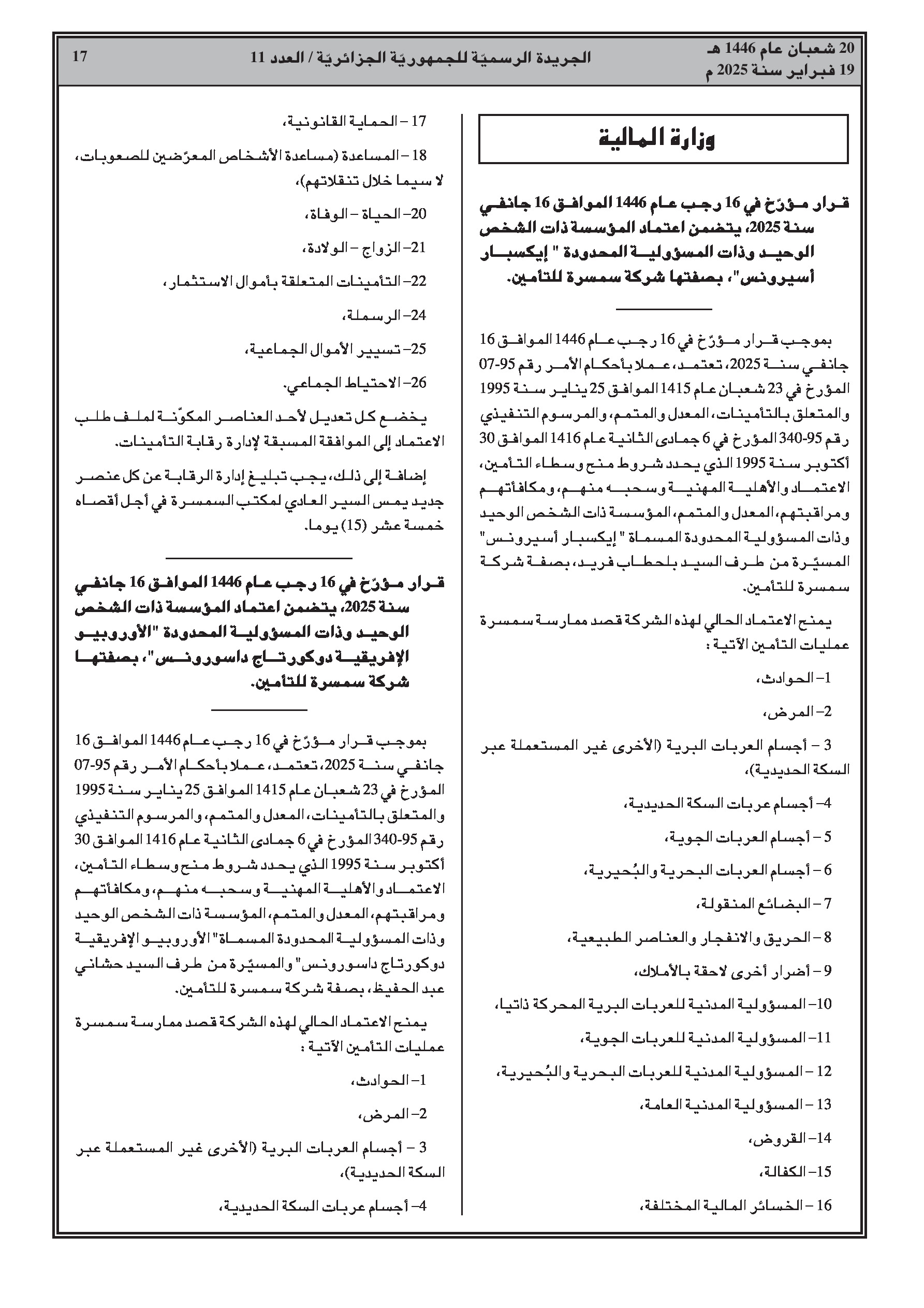 - قرارات اعتماد شركات وساطة في التأمين (إكسبرت للتأمينات، الأوروبية الإفريقية لوساطة التأمين، إنشورنس بروكراج أند سيرفيسز). - قرار اعتماد وسيط تأمين. - قرار تعيين أعضاء المجلس الوطني للمحاسبة.