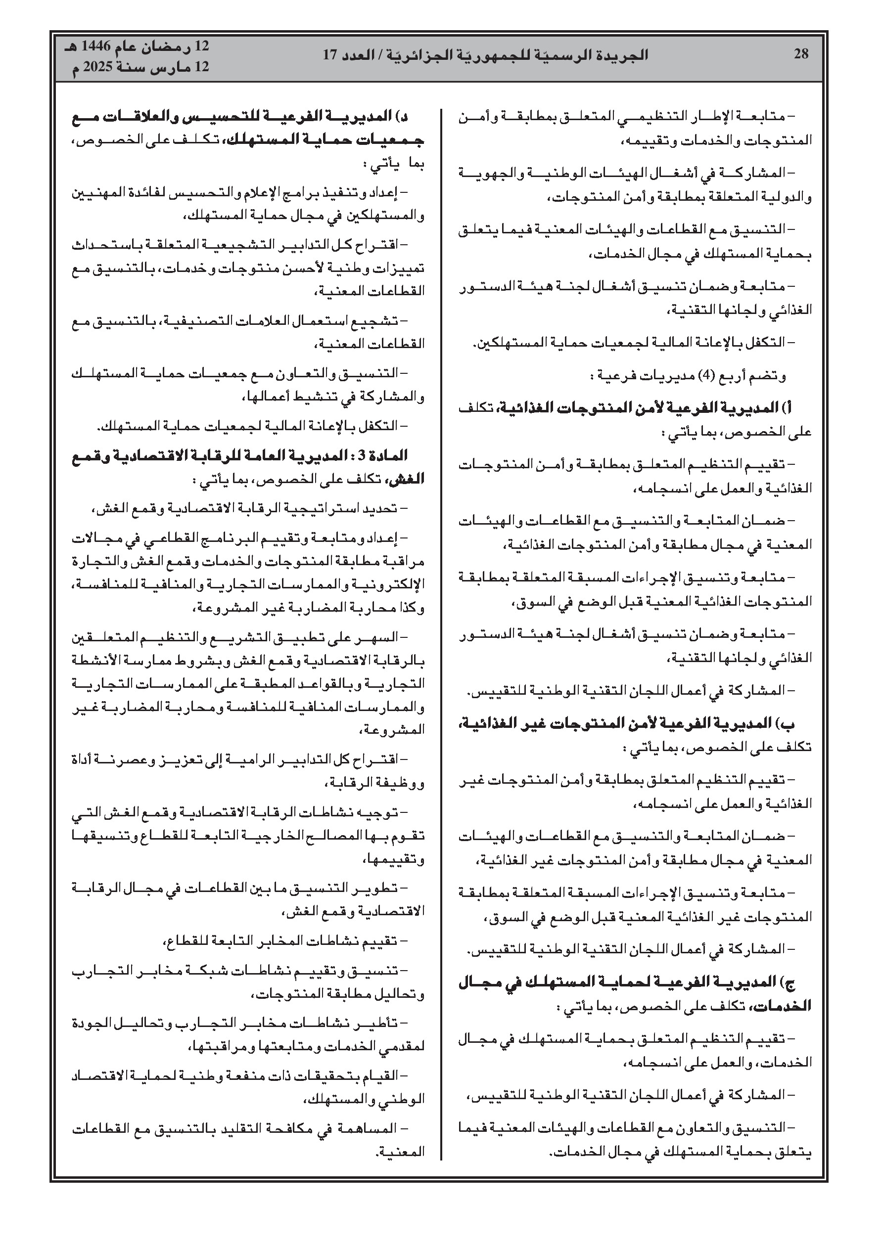 مرسوم تنفيذي رقم 25-99 يحدد صلاحيات وزير التجارة الداخلية وتنظيم السوق الوطنية، وتشمل تنظيم السوق، التموين، المنافسة، التجارة الإلكترونية، حماية المستهلك وقمع الغش.