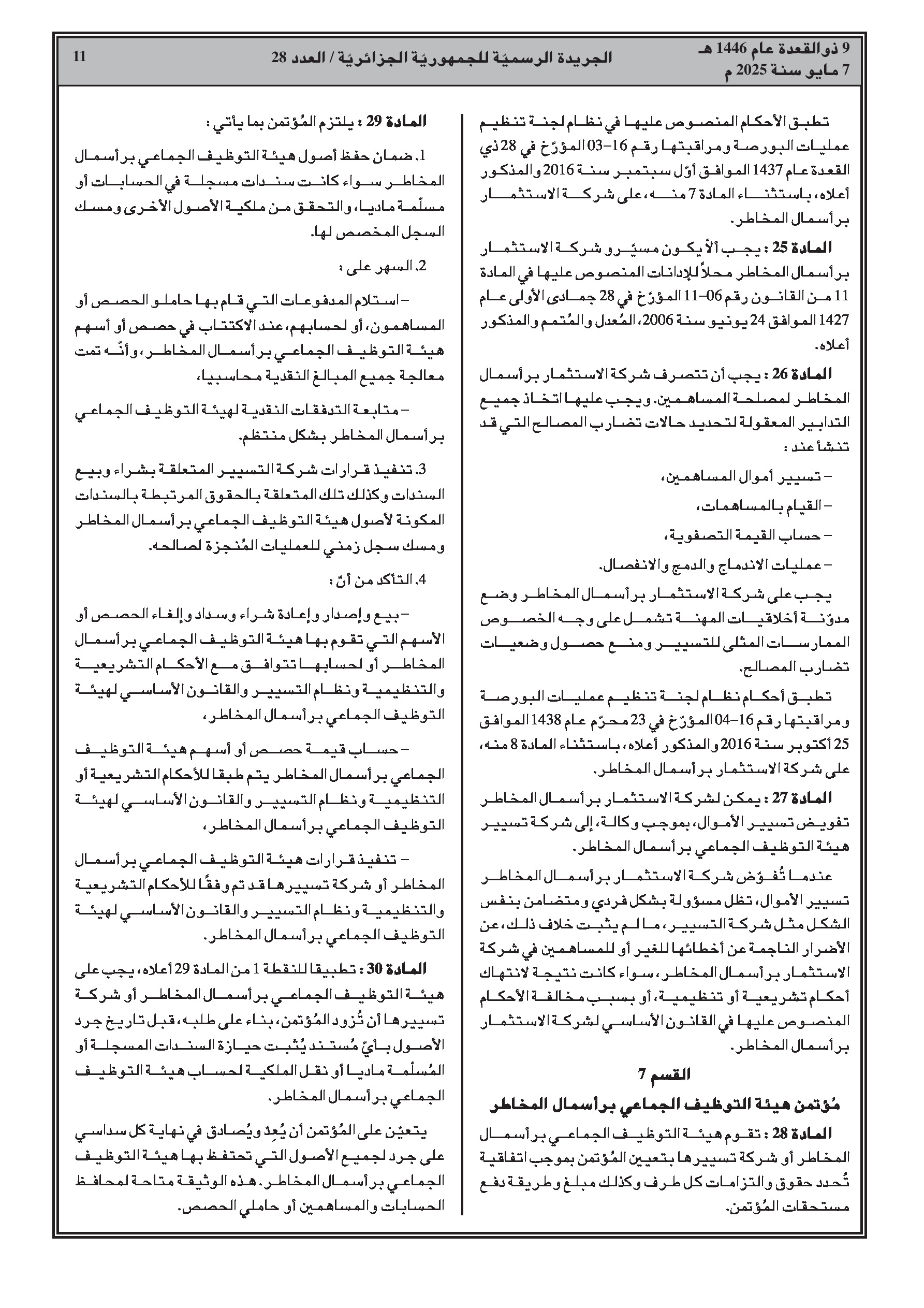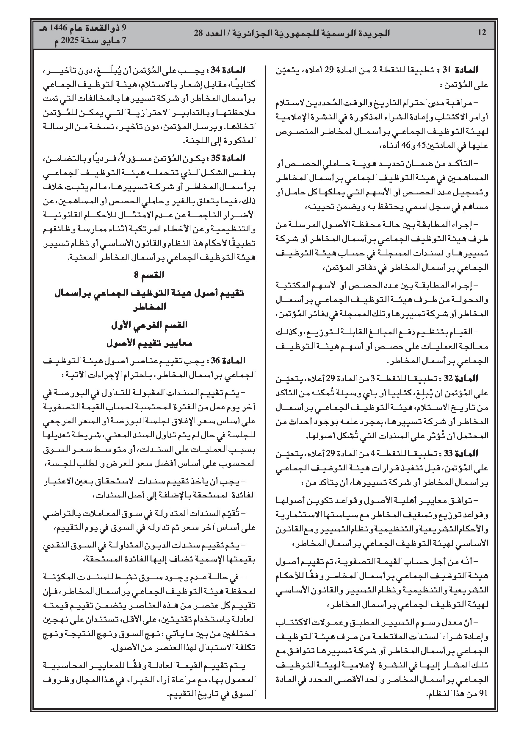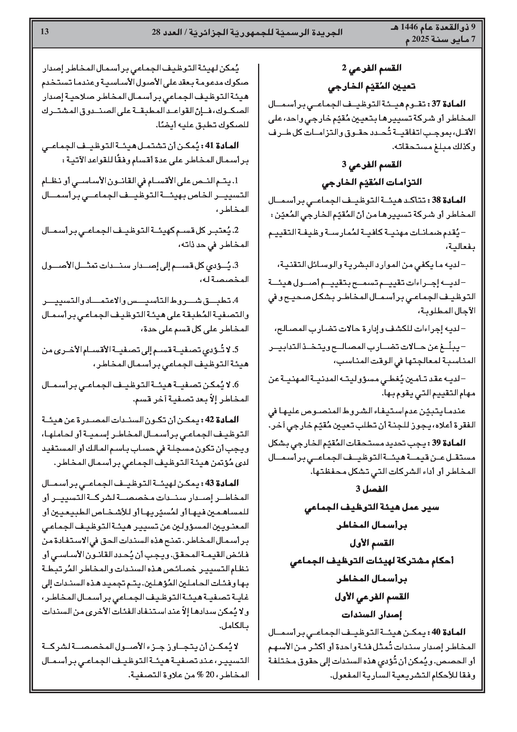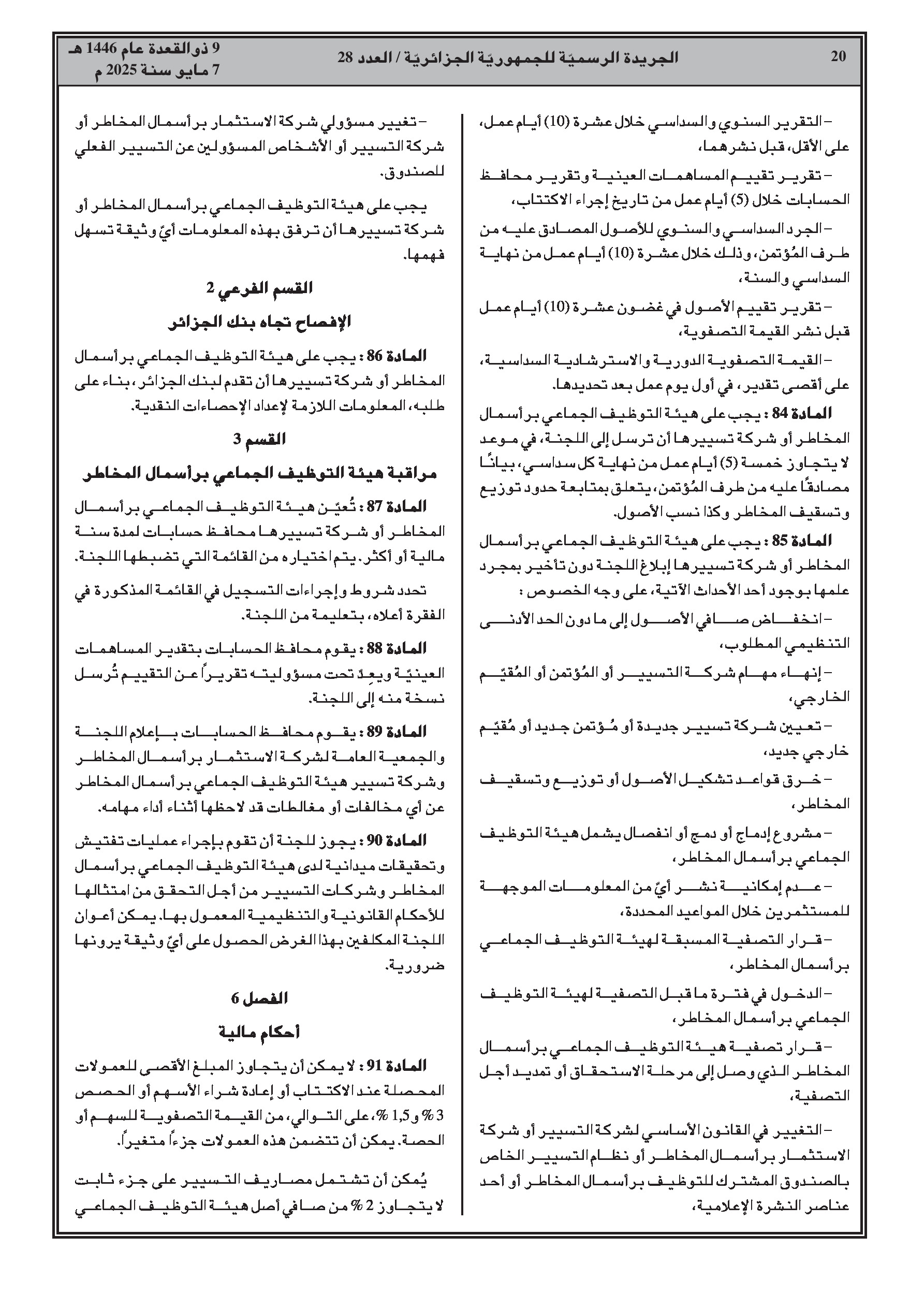 قرار وزاري يصادق على نظام لجنة تنظيم عمليات البورصة ومراقبتها رقم 24-02 المتعلق بهيئات التوظيف الجماعي في رأس المال الاستثماري، محدداً قواعد إنشائها وتشغيلها.