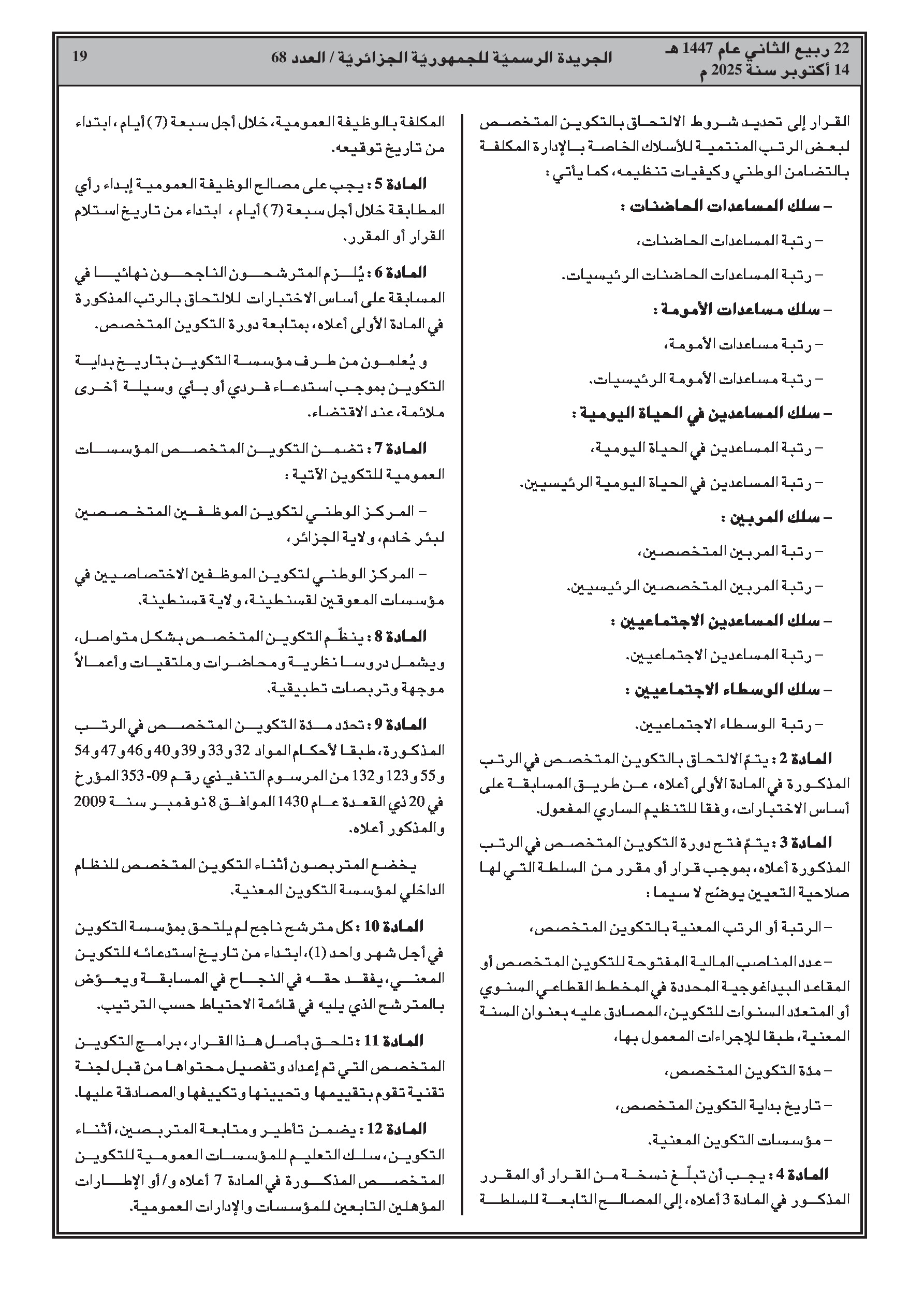 - تحديد شروط وتنظيم التكوين المتخصص للالتحاق ببعض الرتب الخاصة بإدارة التضامن الوطني.